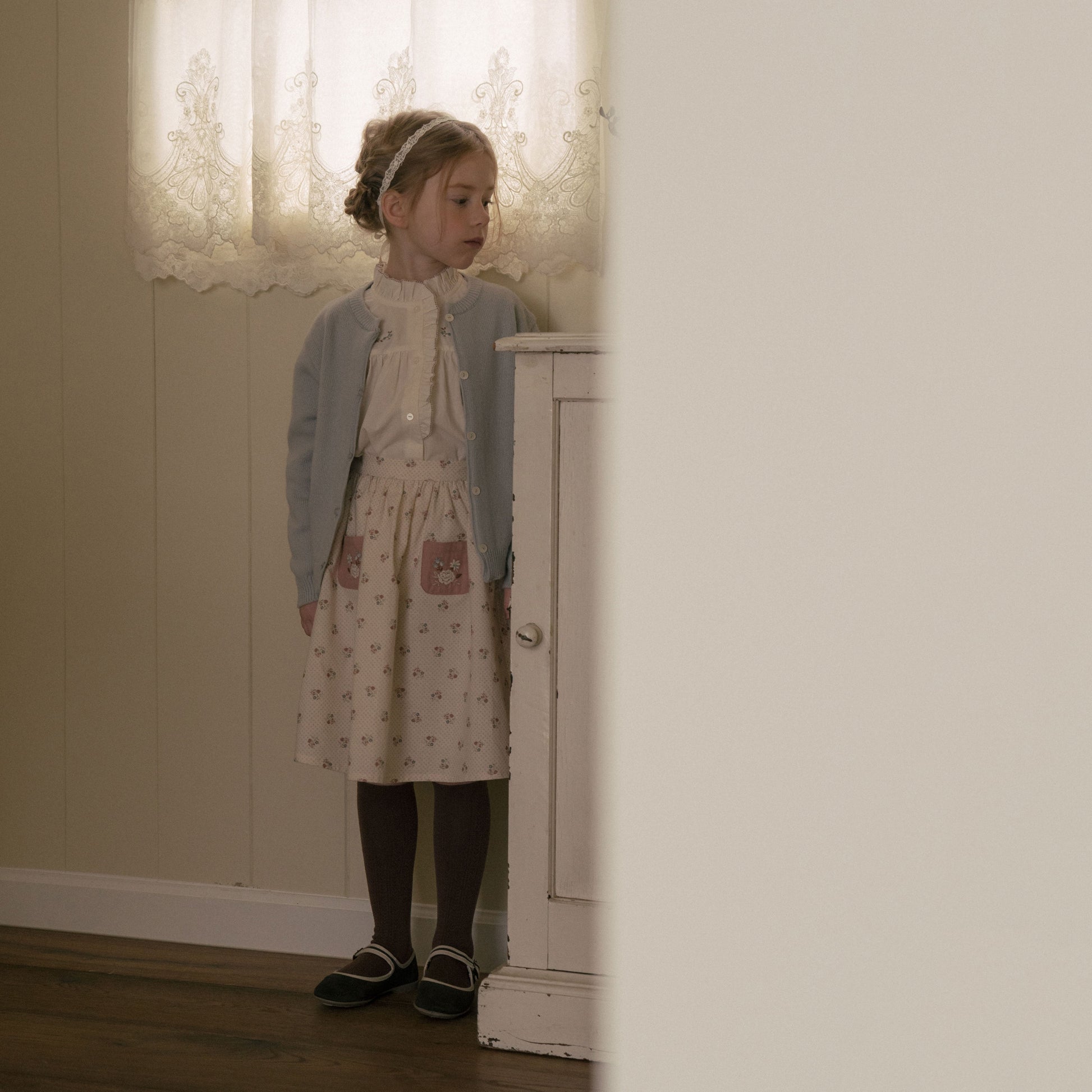 女童白色刺绣棉衬衫