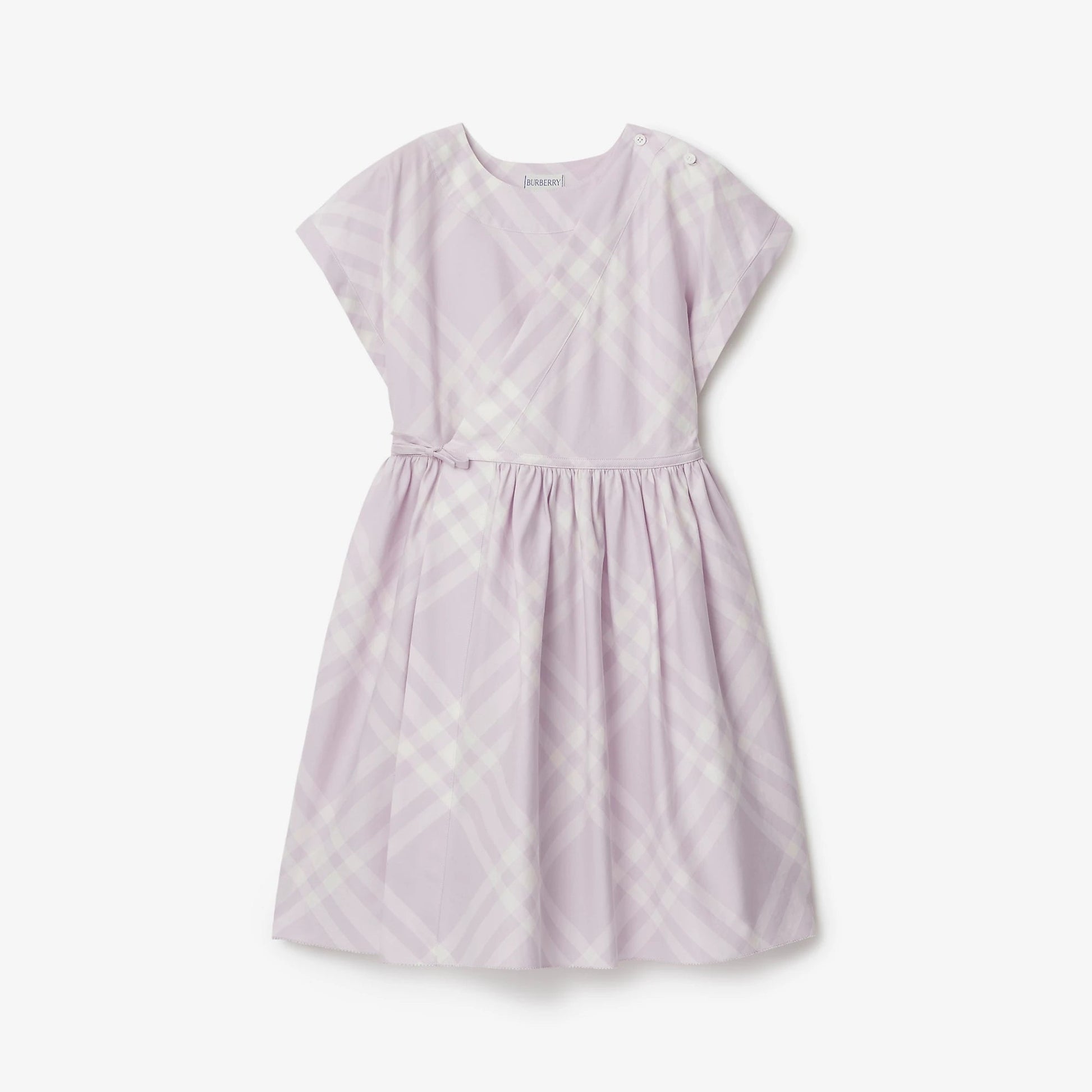 女童浅紫色格子棉连衣裙