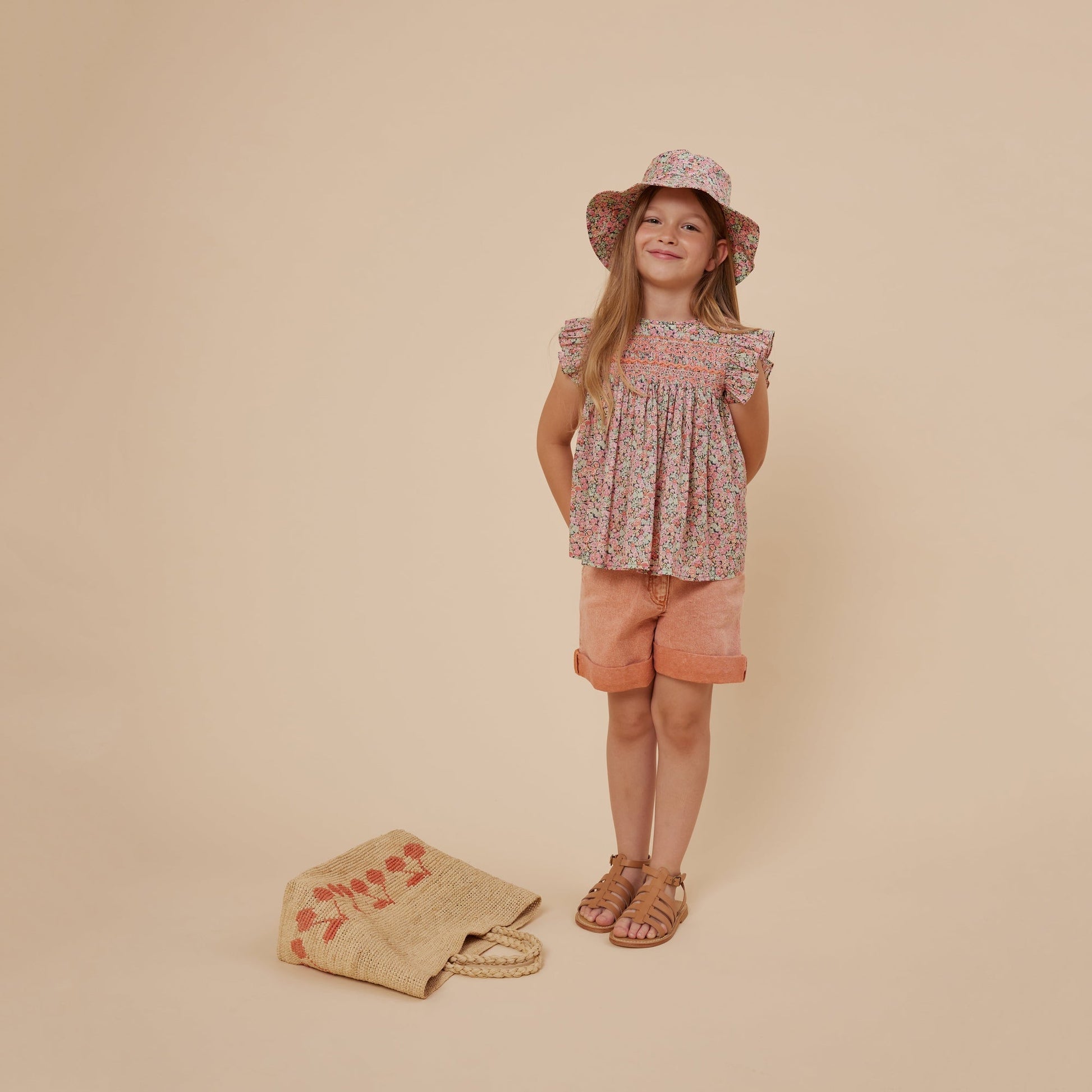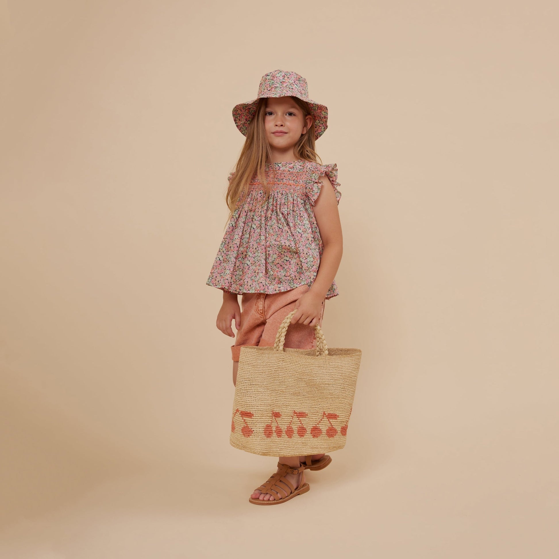 女童粉色碎花棉上衣
