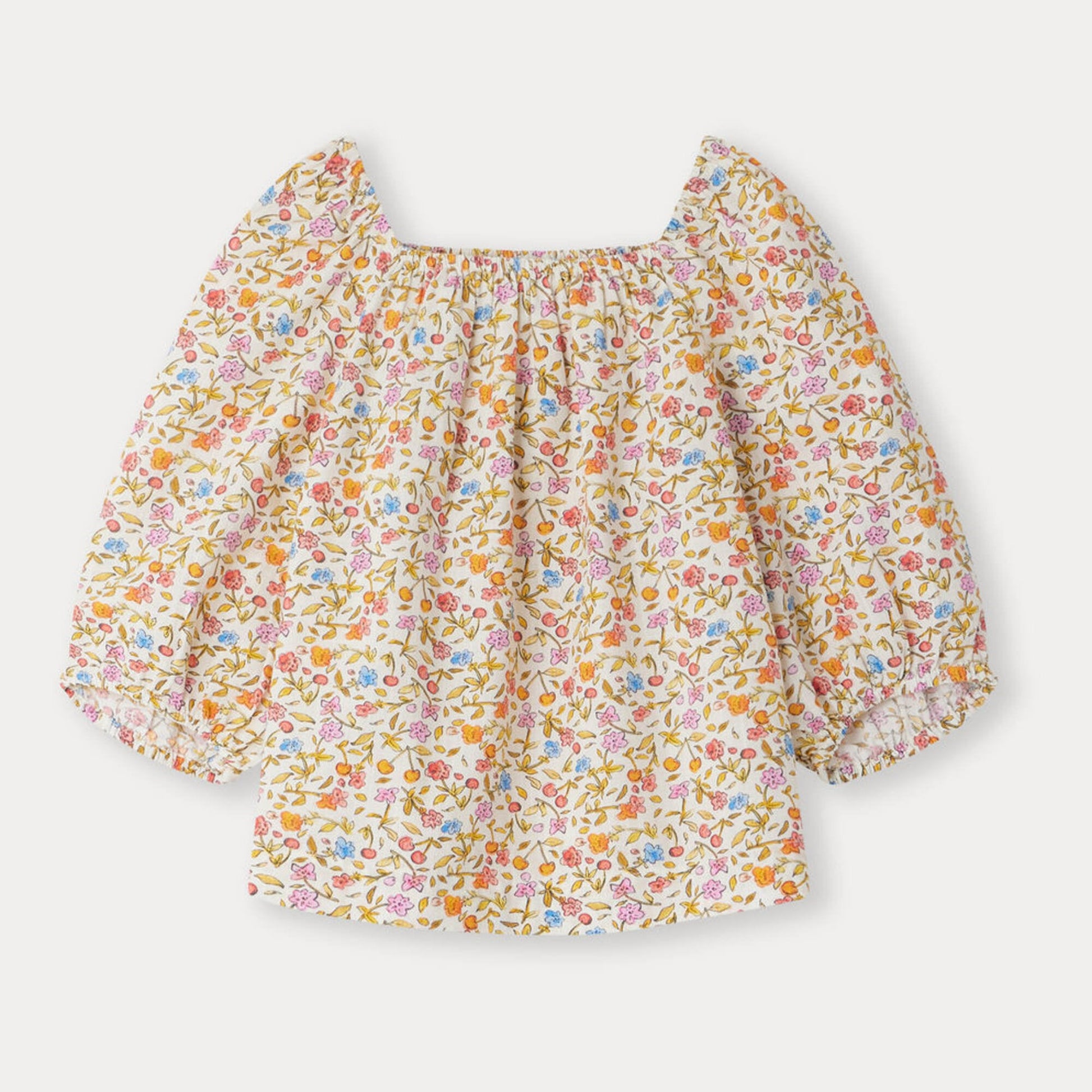 女童橙色碎花棉上衣