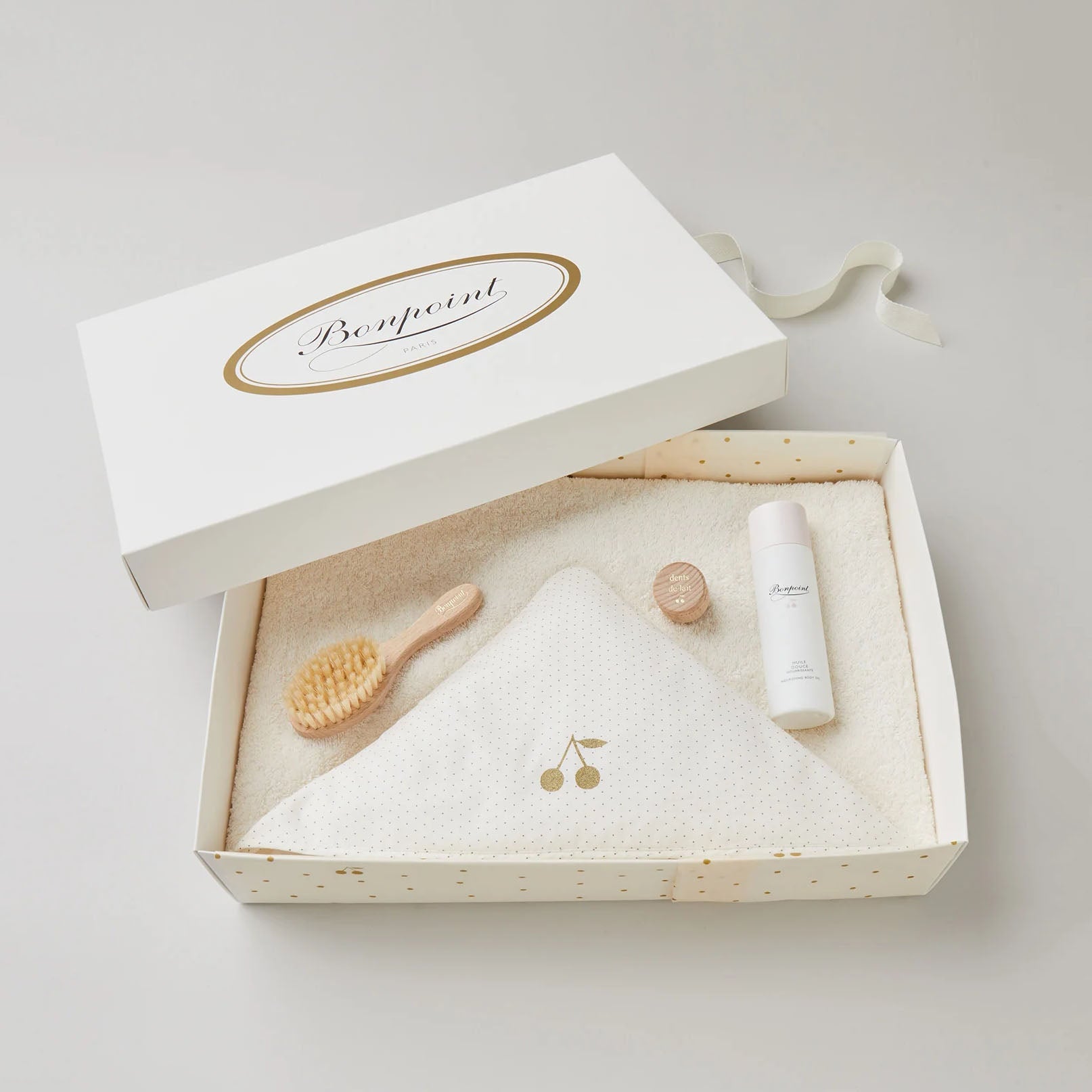 婴儿白色礼盒(浴巾,牙盒,胎毛刷,沐浴油)