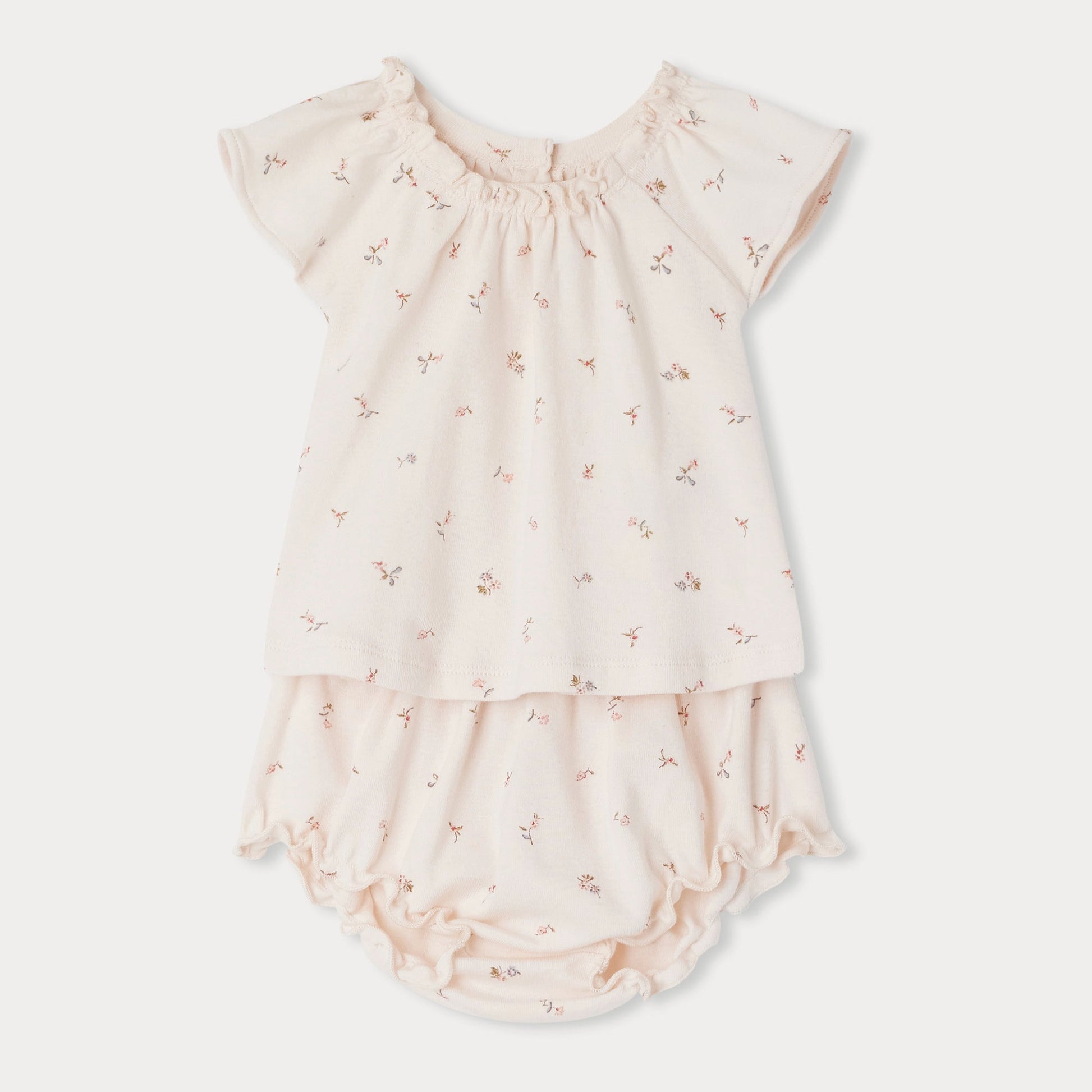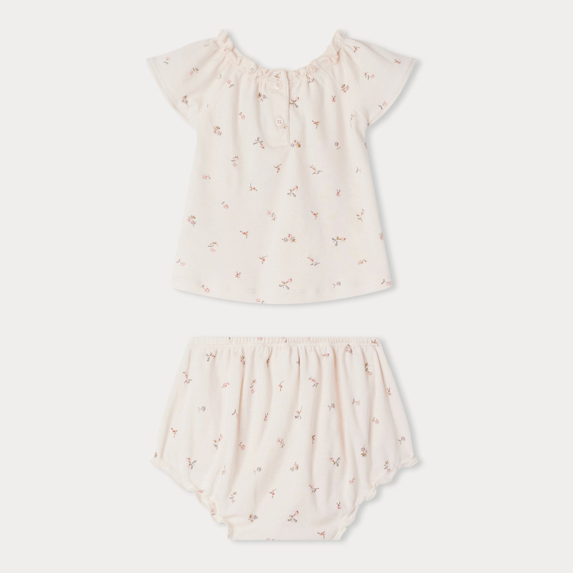 女婴浅粉色碎花棉套装