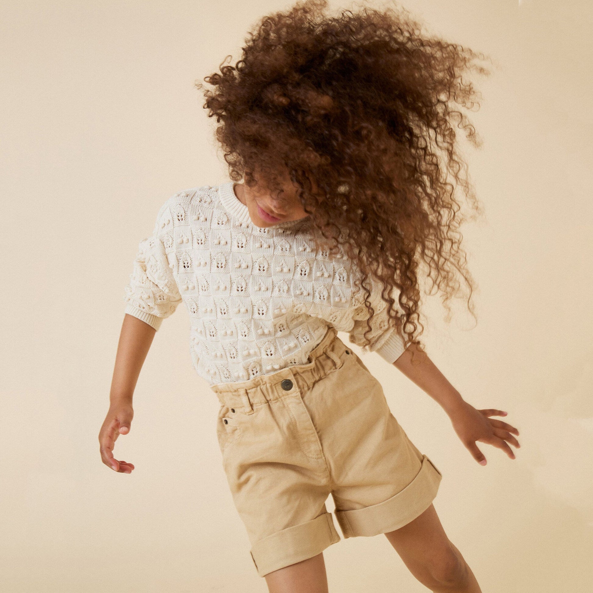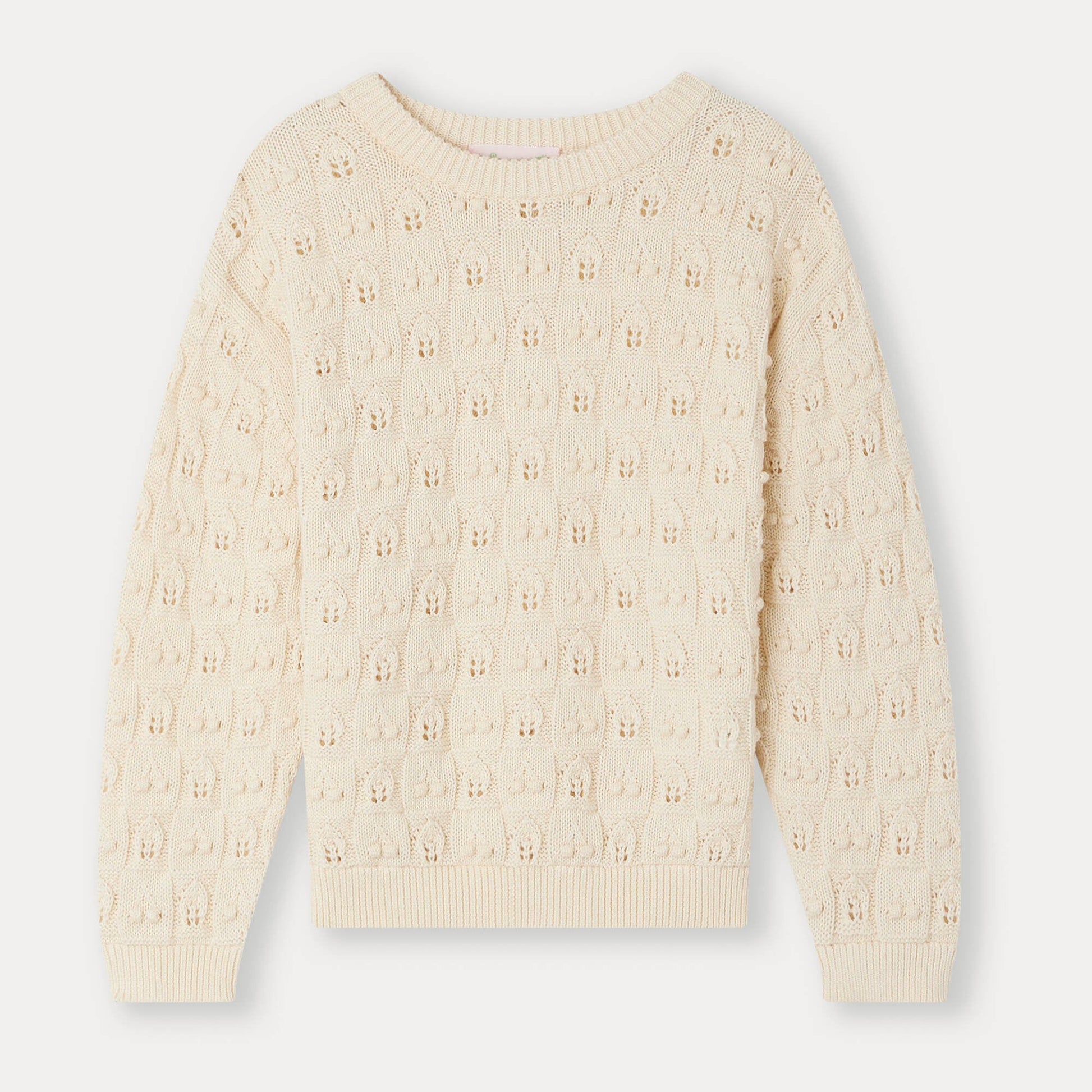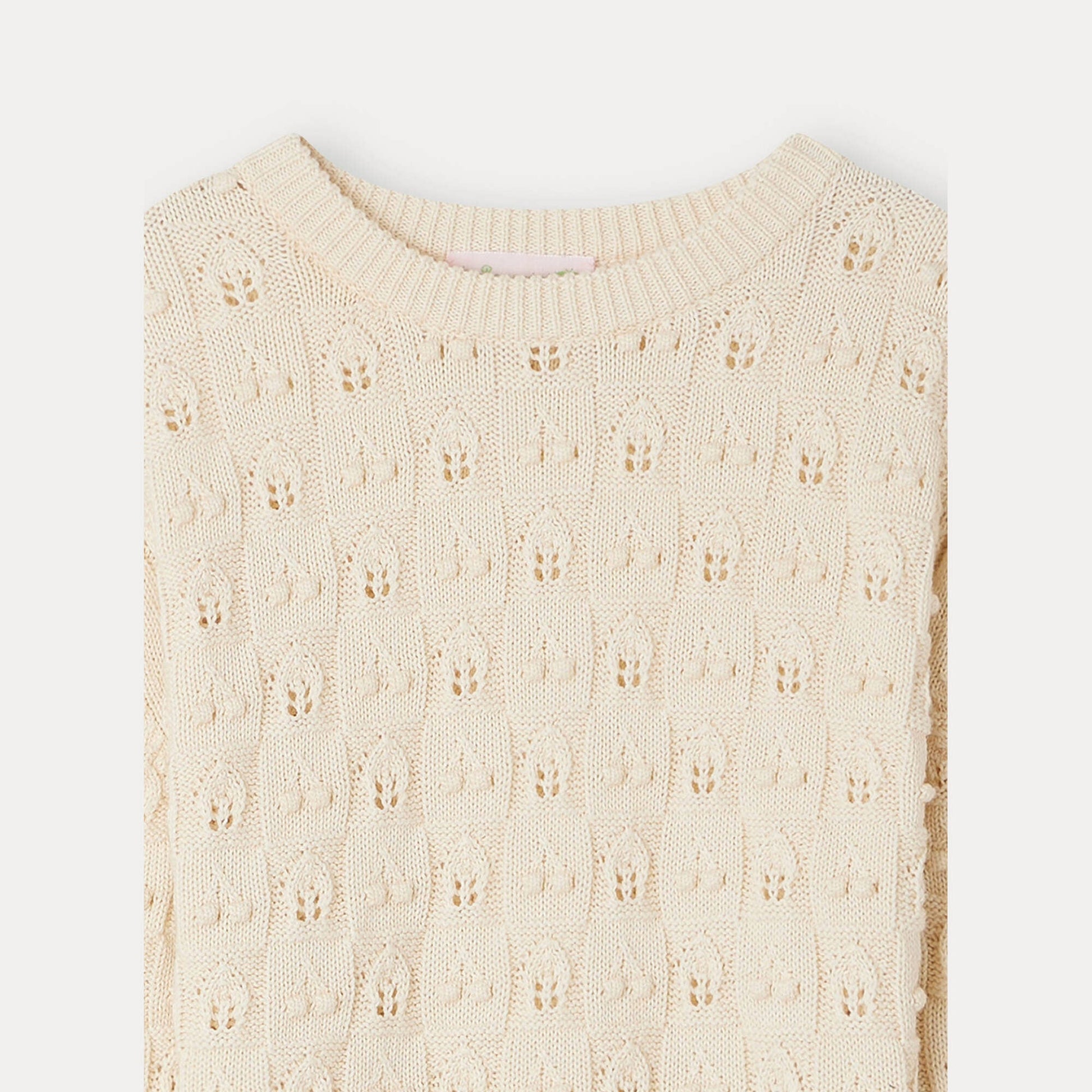 女童米白色镂空棉毛衣