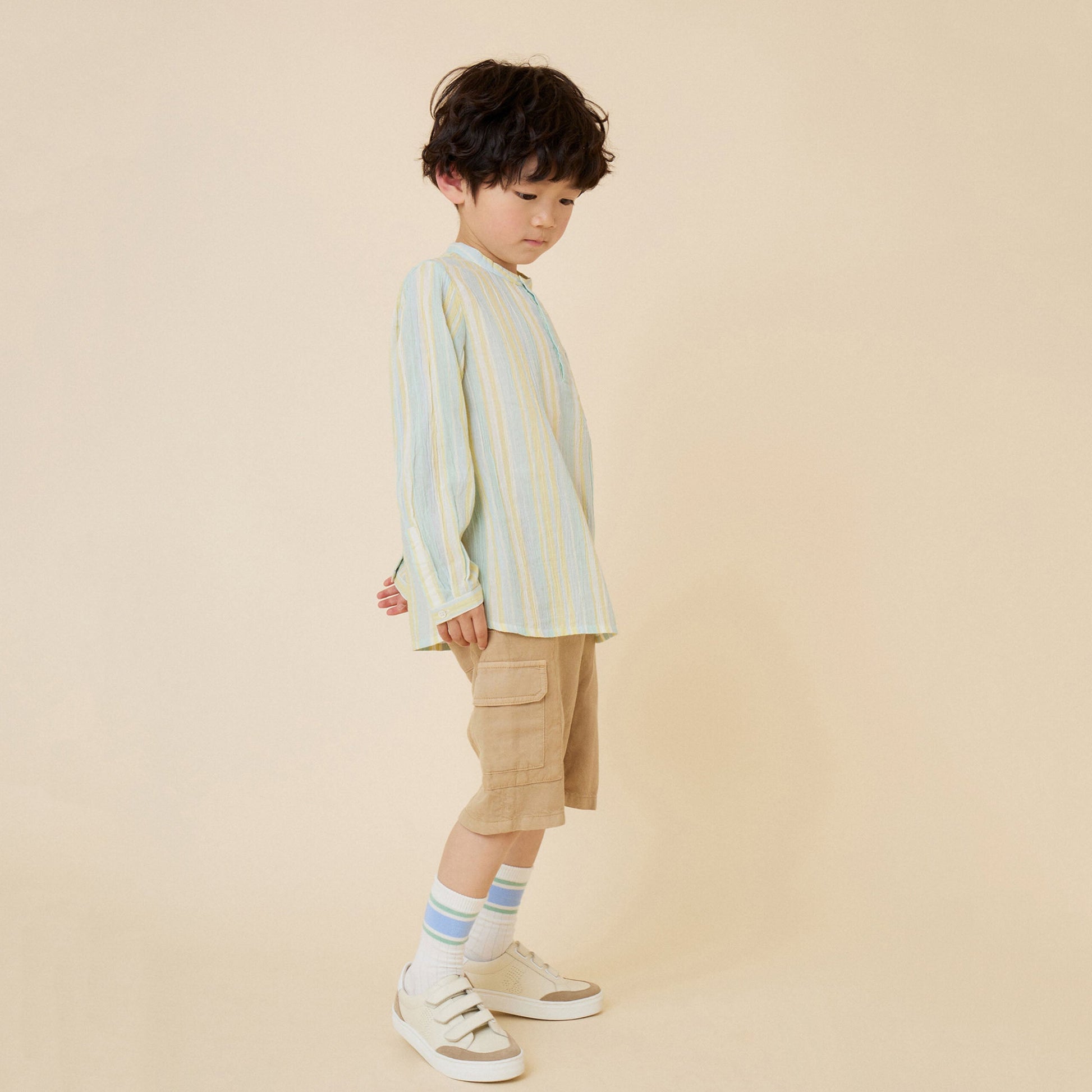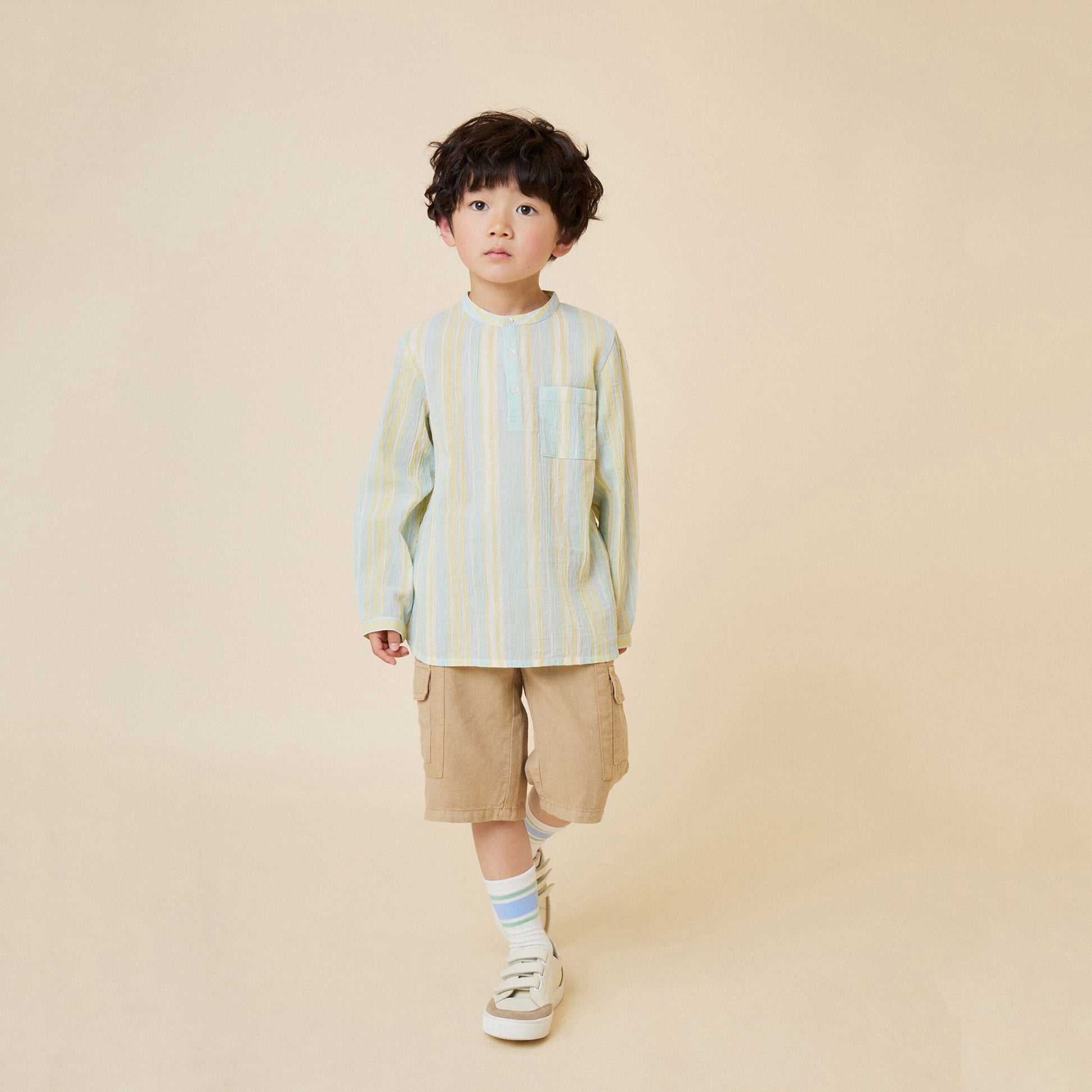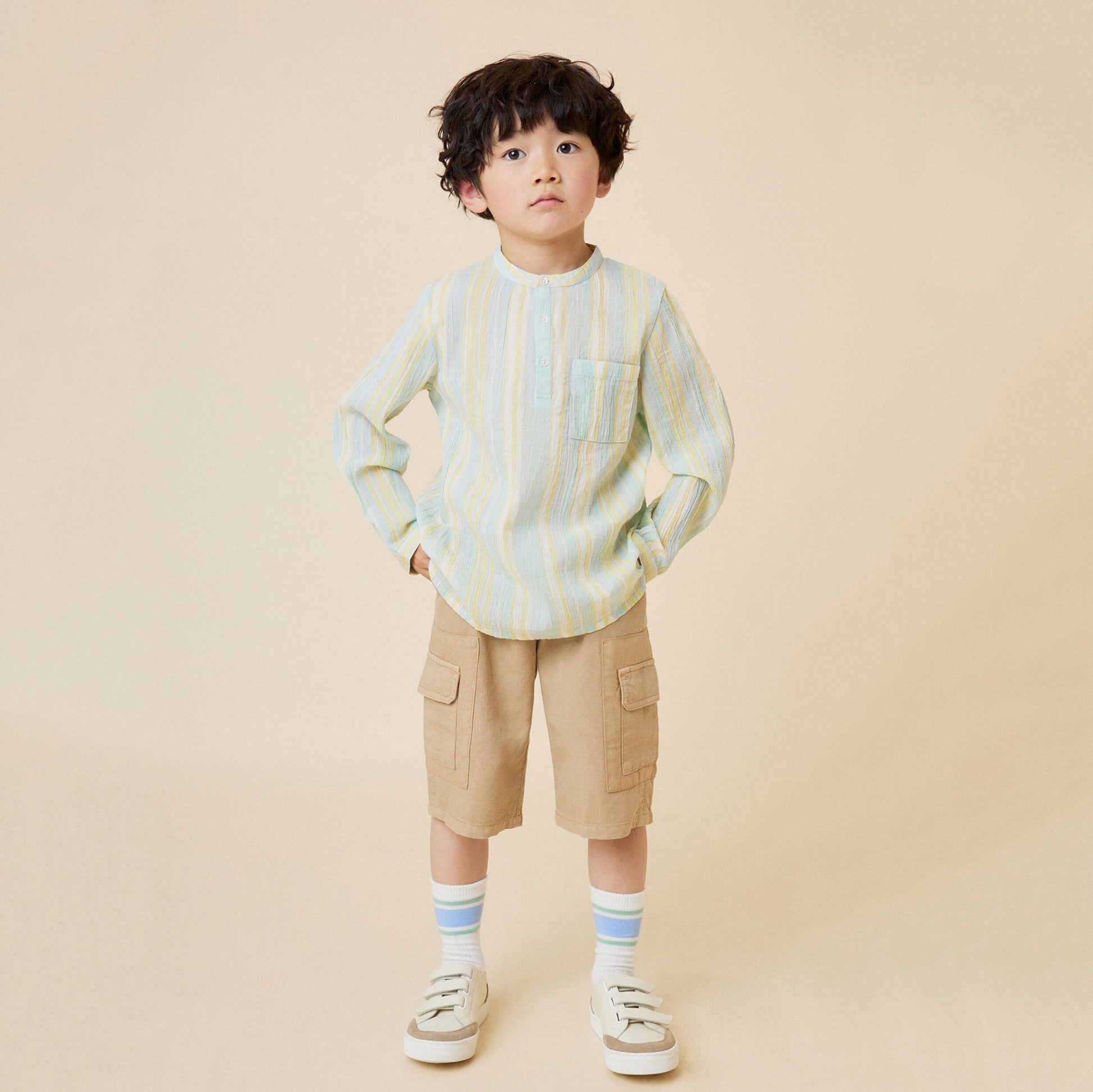 男童薄荷绿条纹棉衬衫