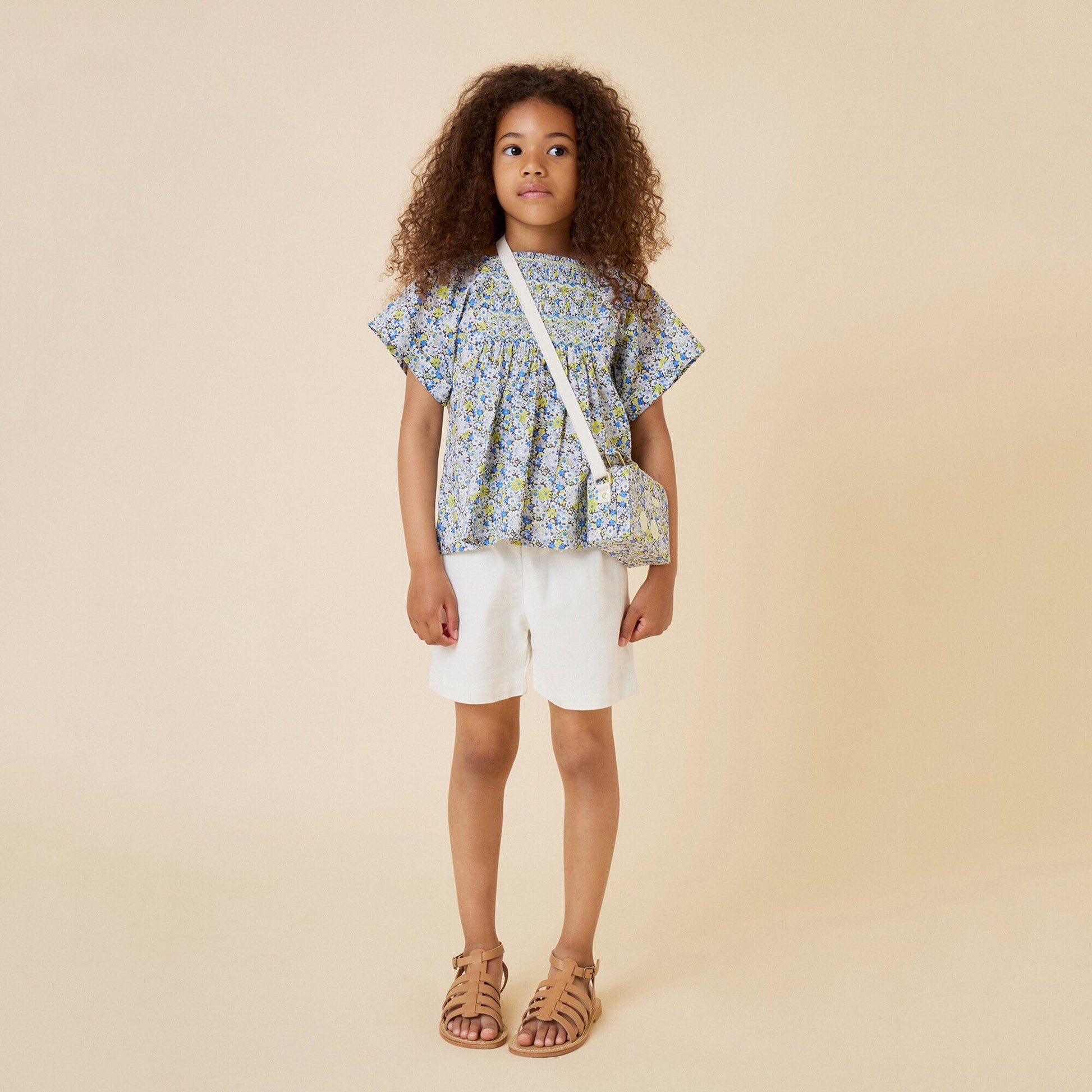女童蓝色碎花棉上衣
