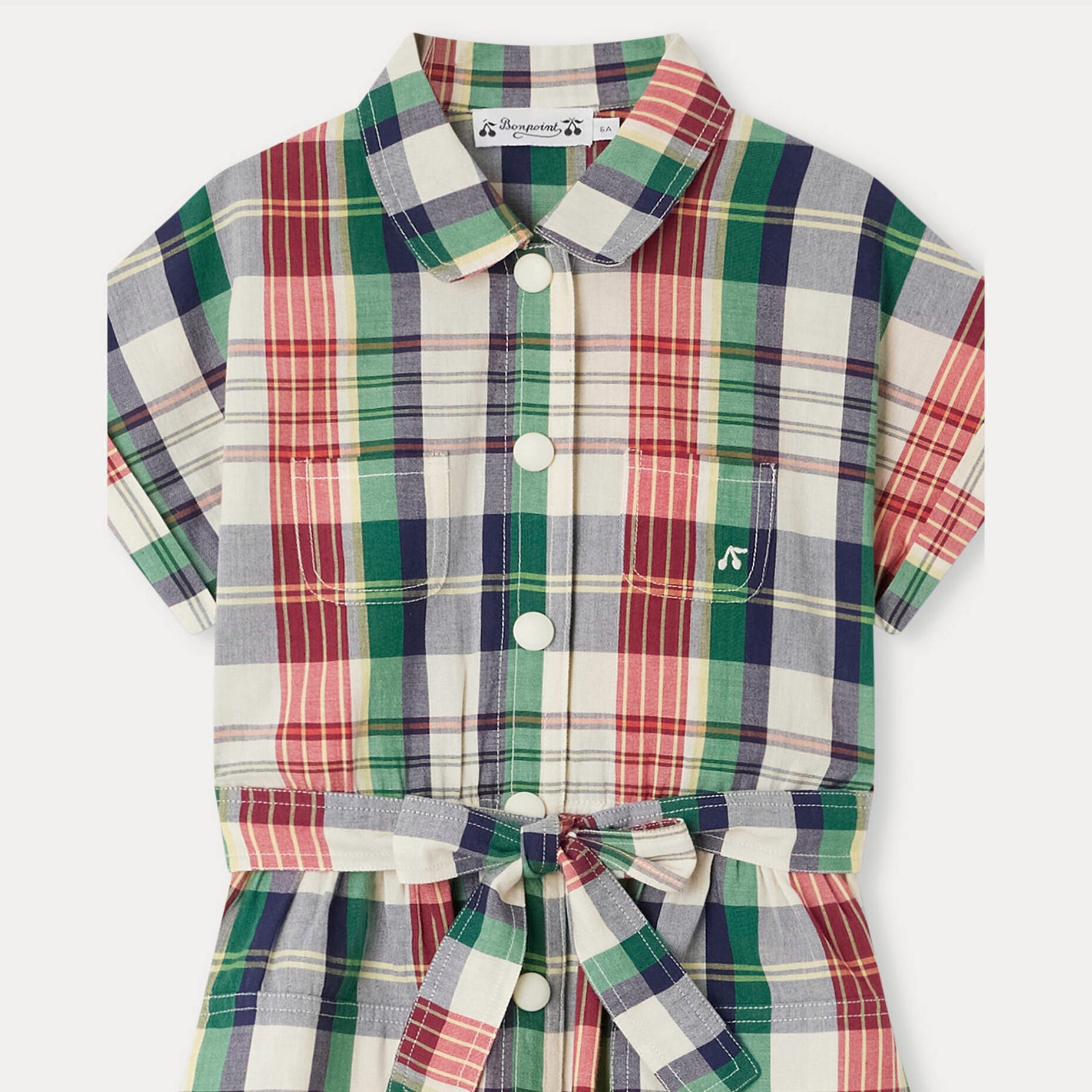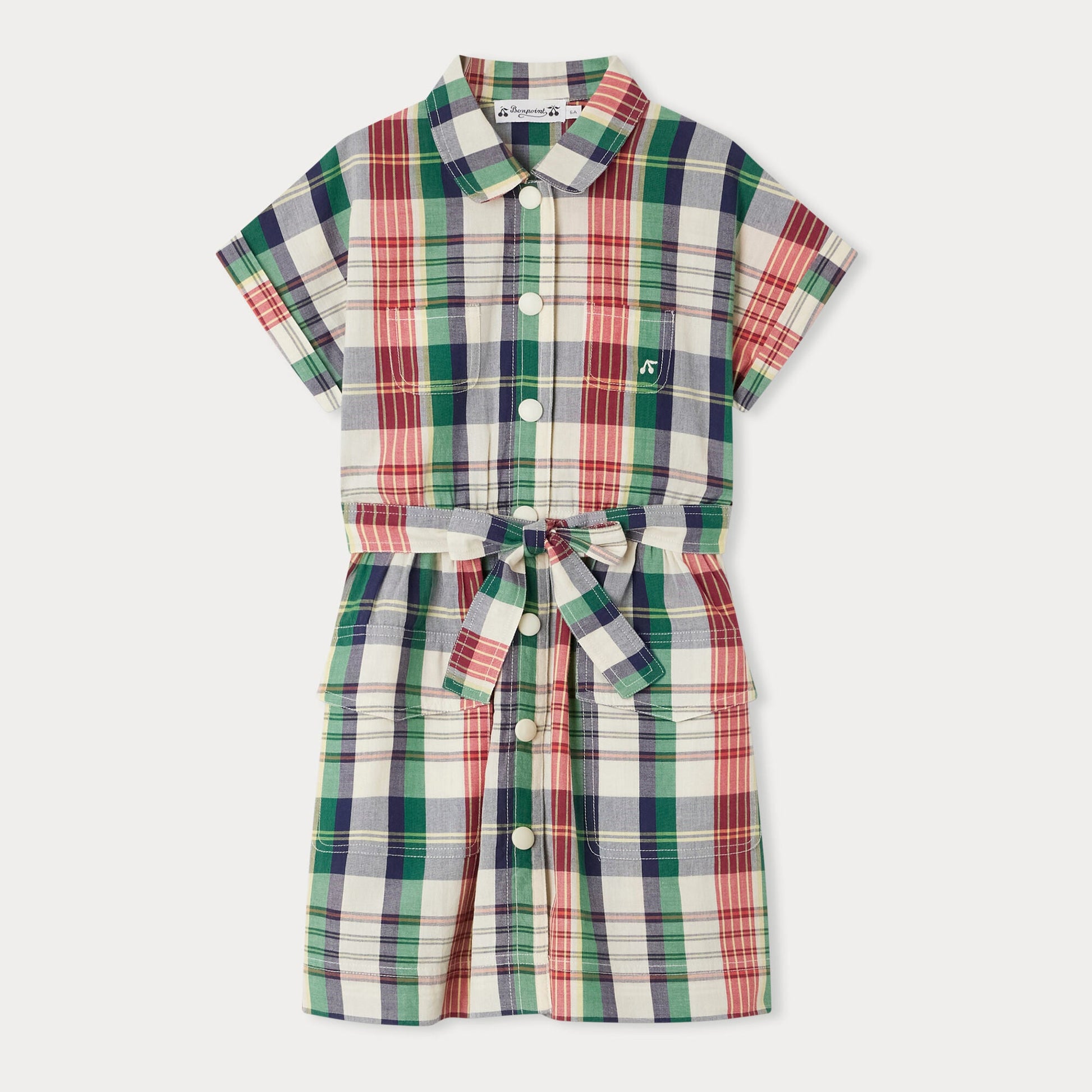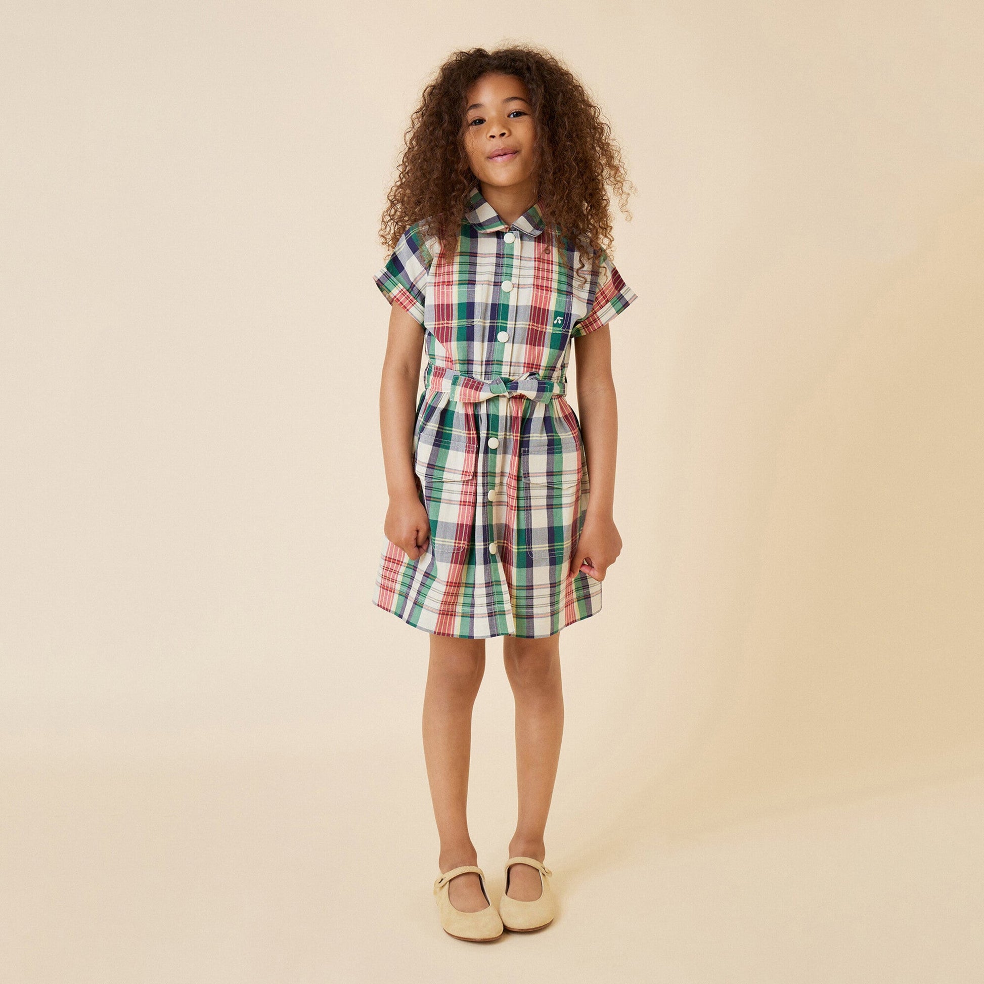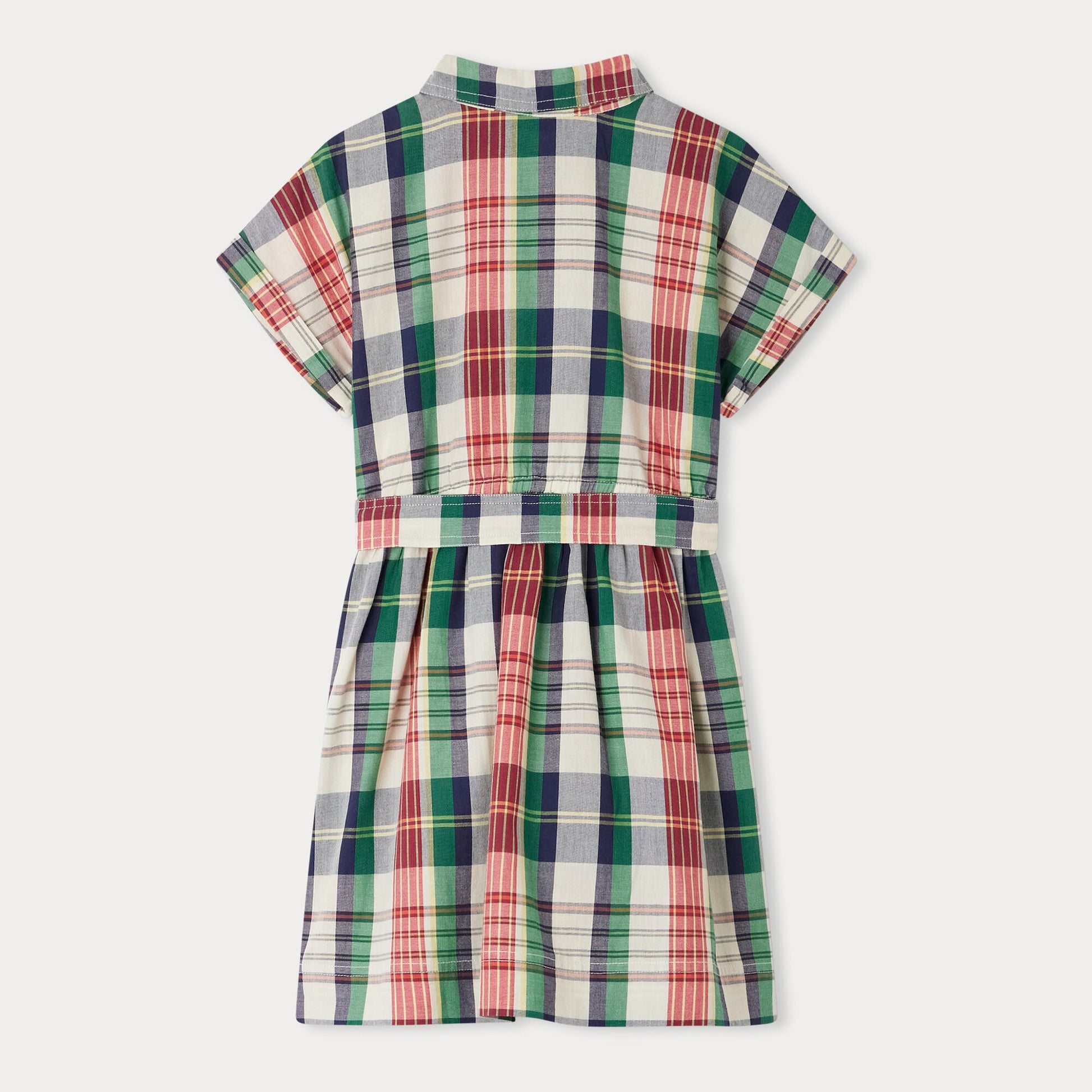 女童绿色格子棉连衣裙