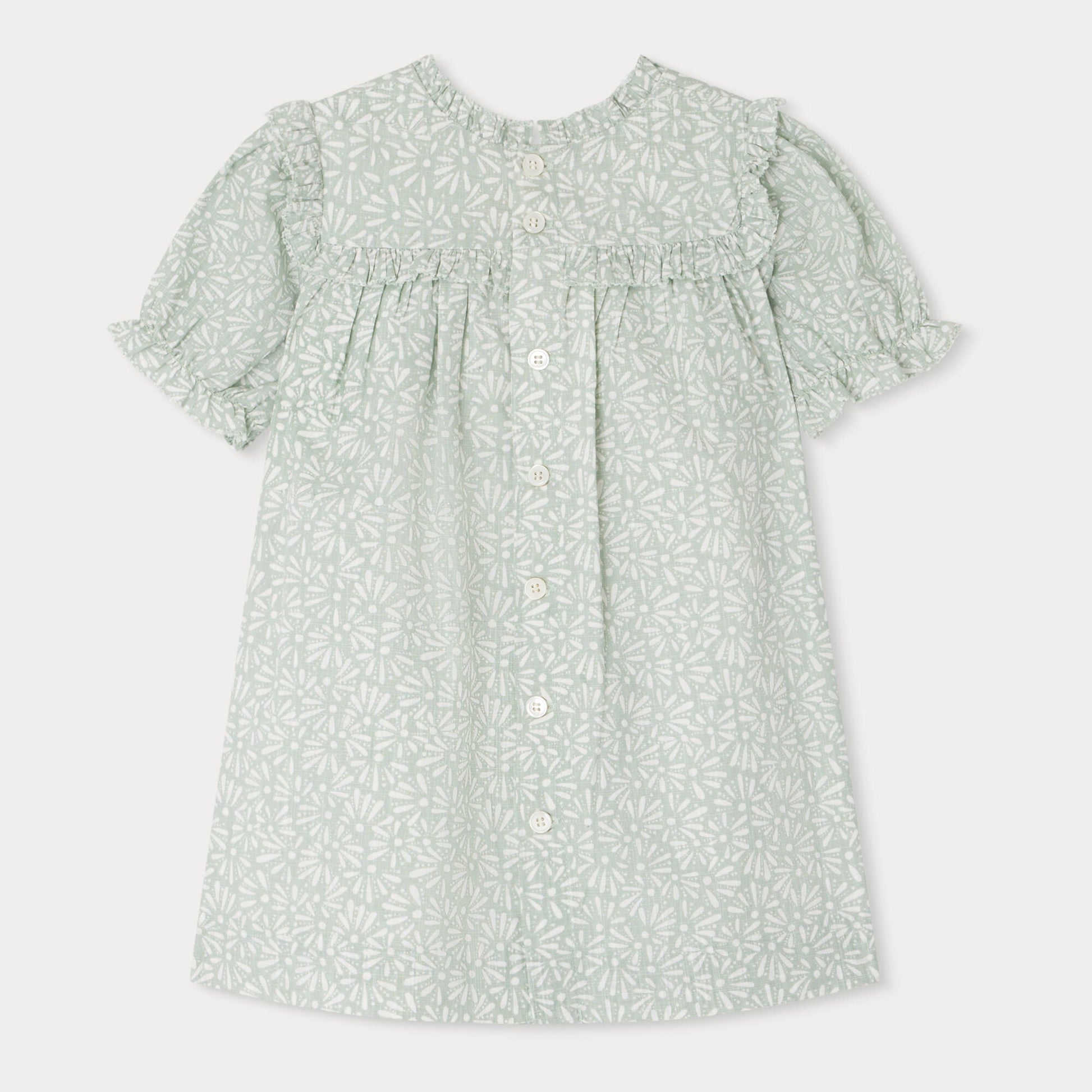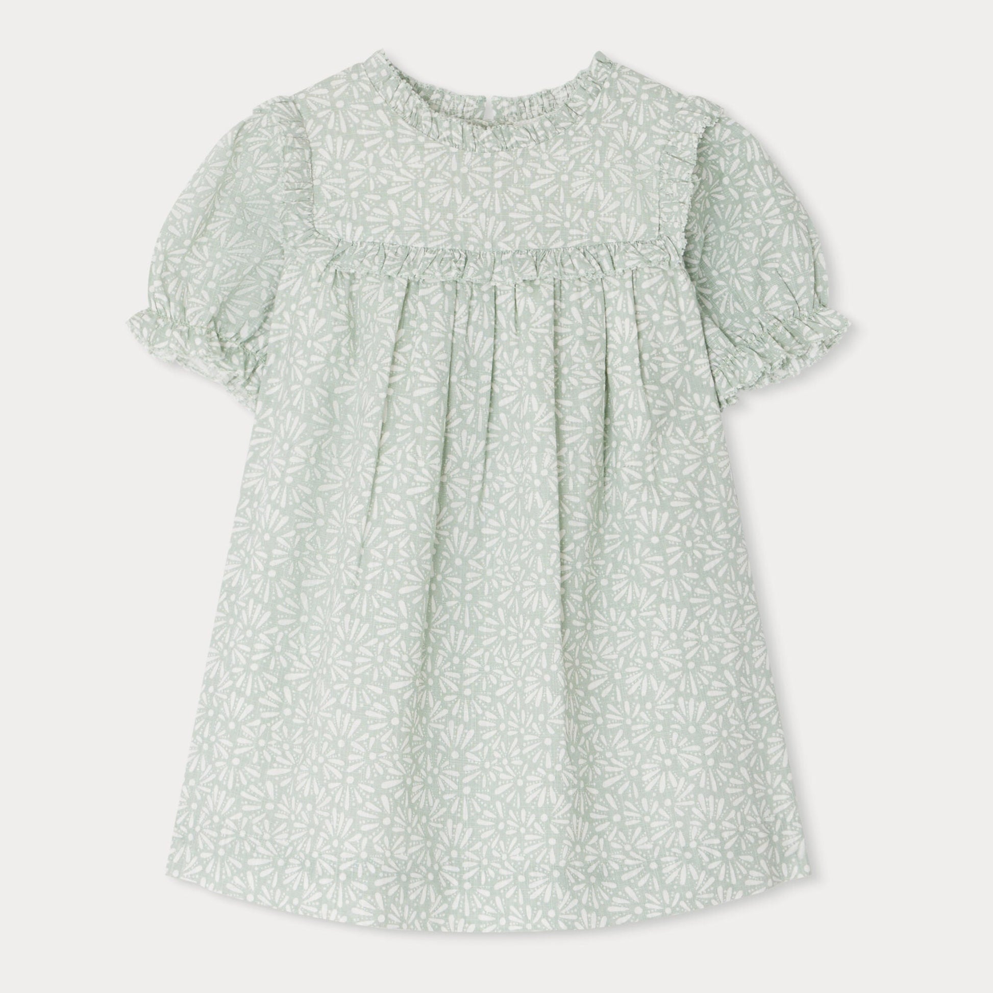 女婴薄荷绿碎花棉连衣裙