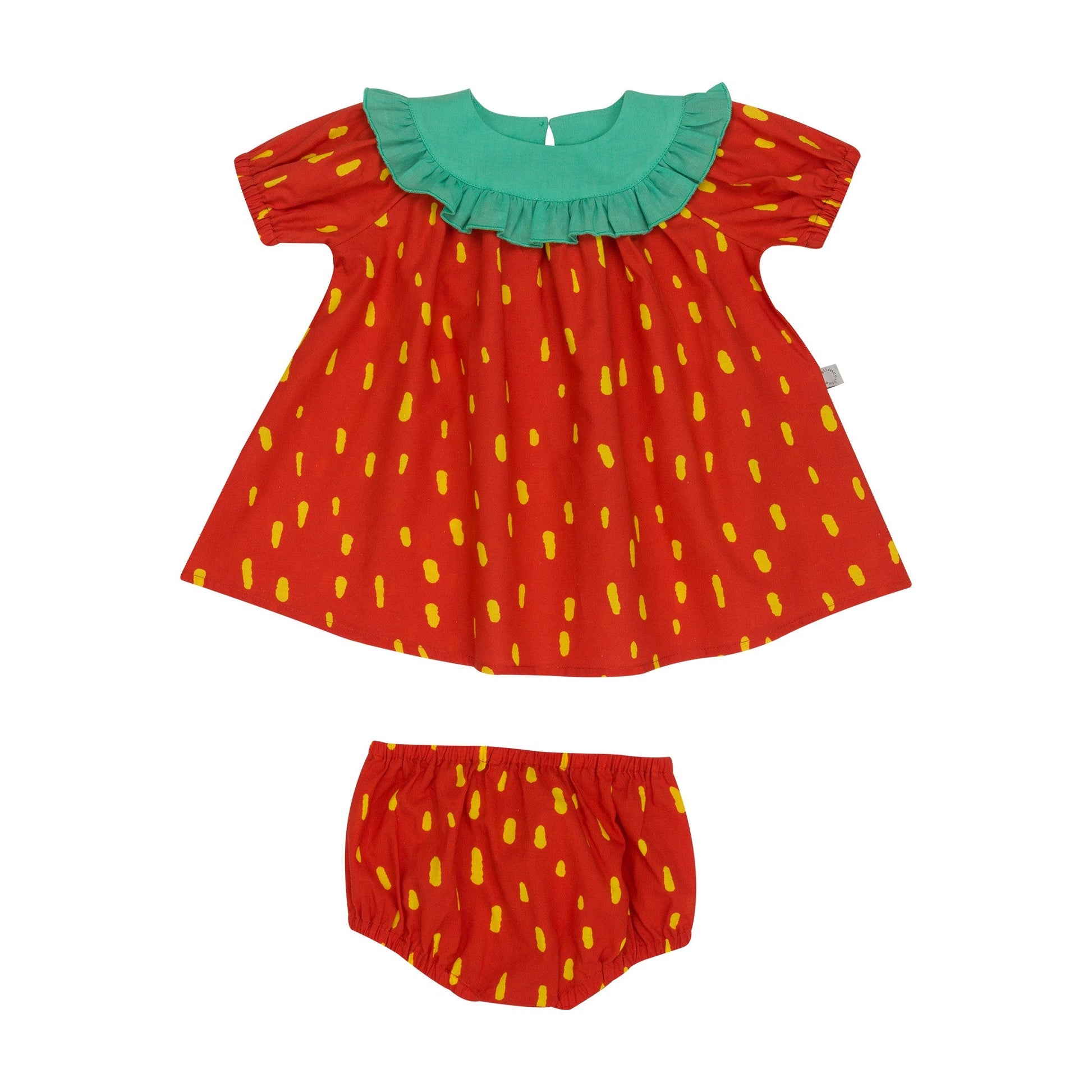 女婴红色棉连衣裙套装