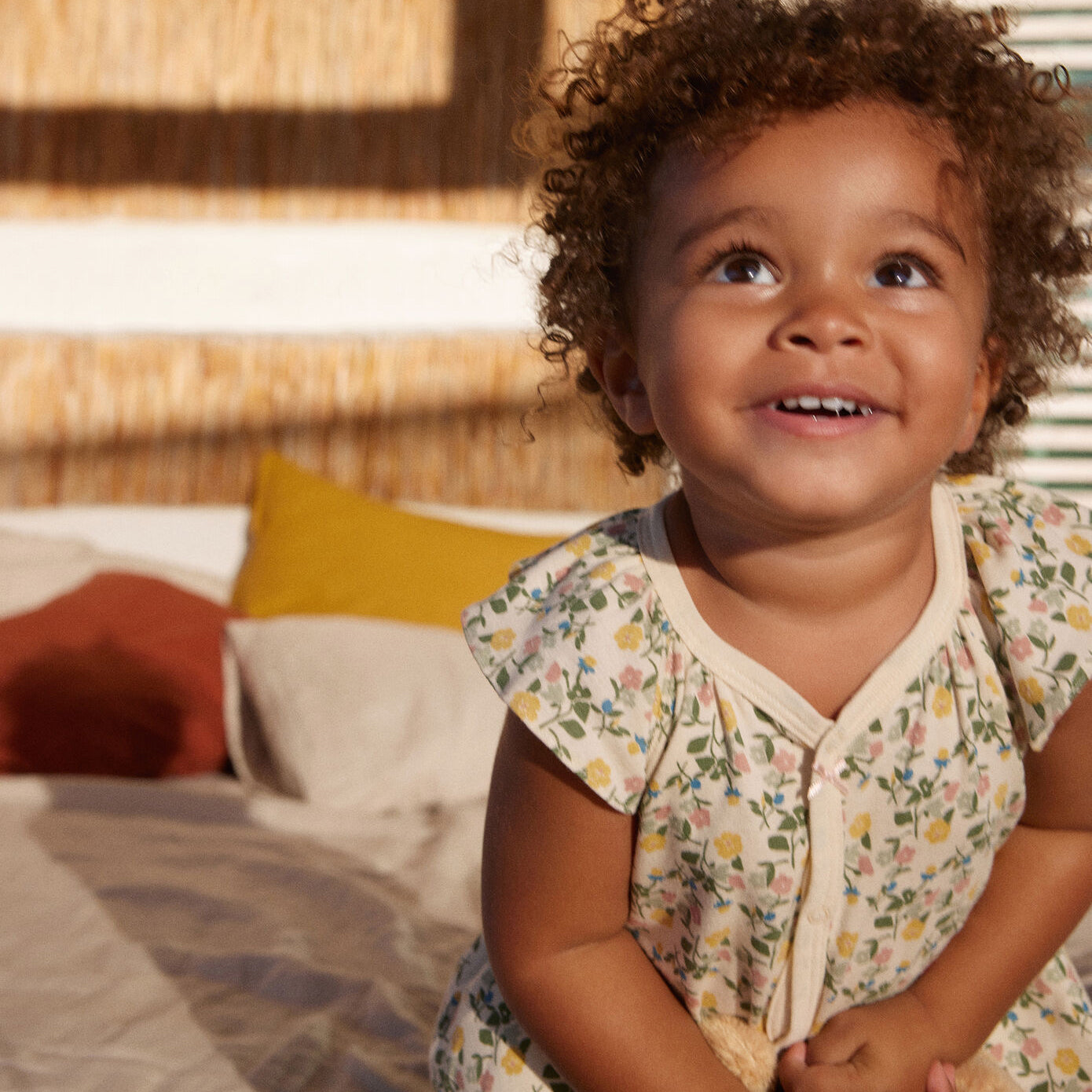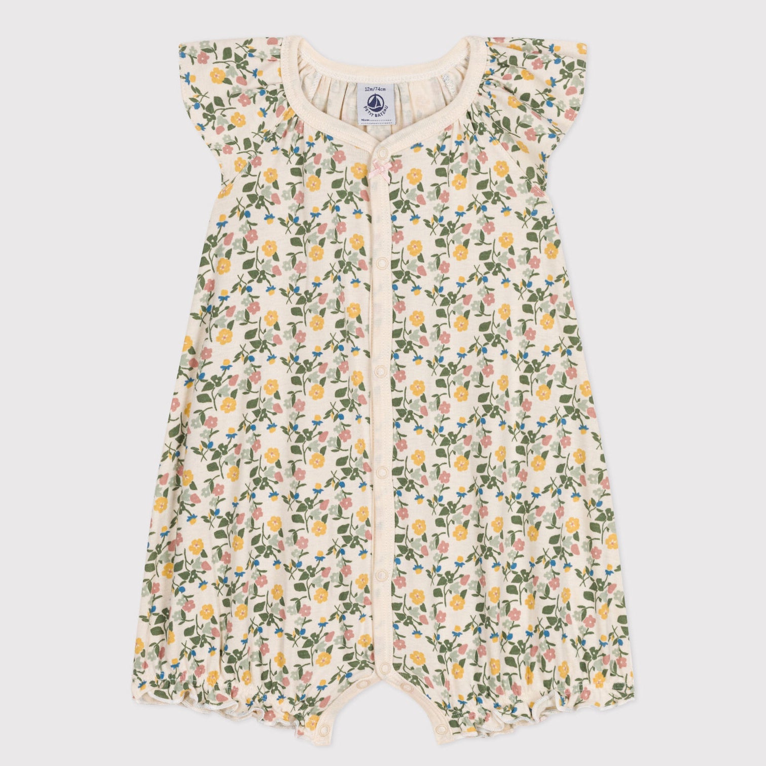女婴绿色碎花棉连体衣