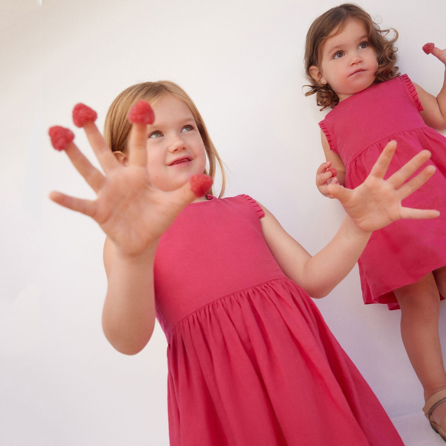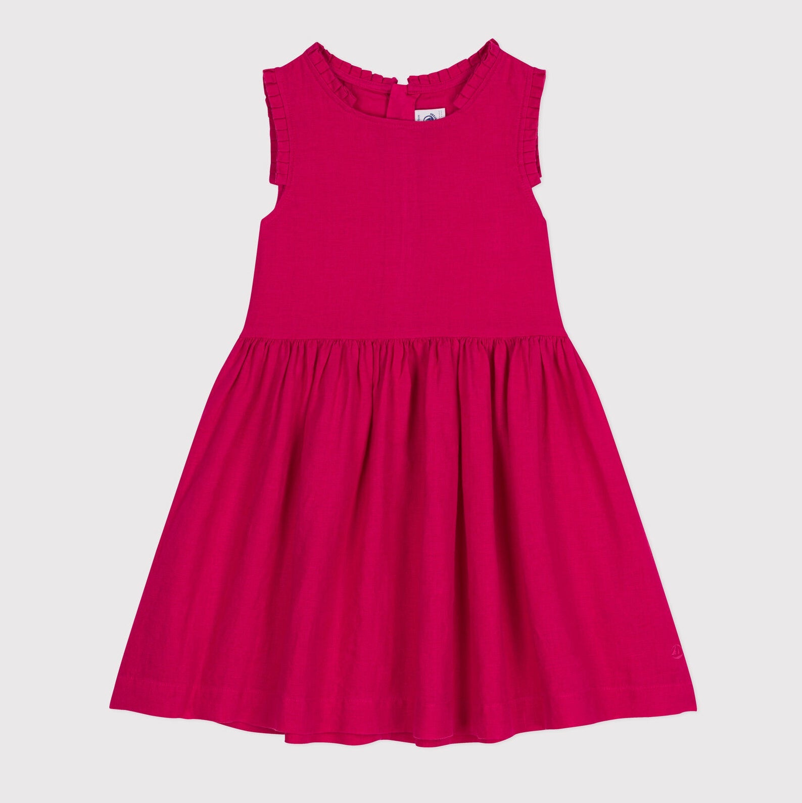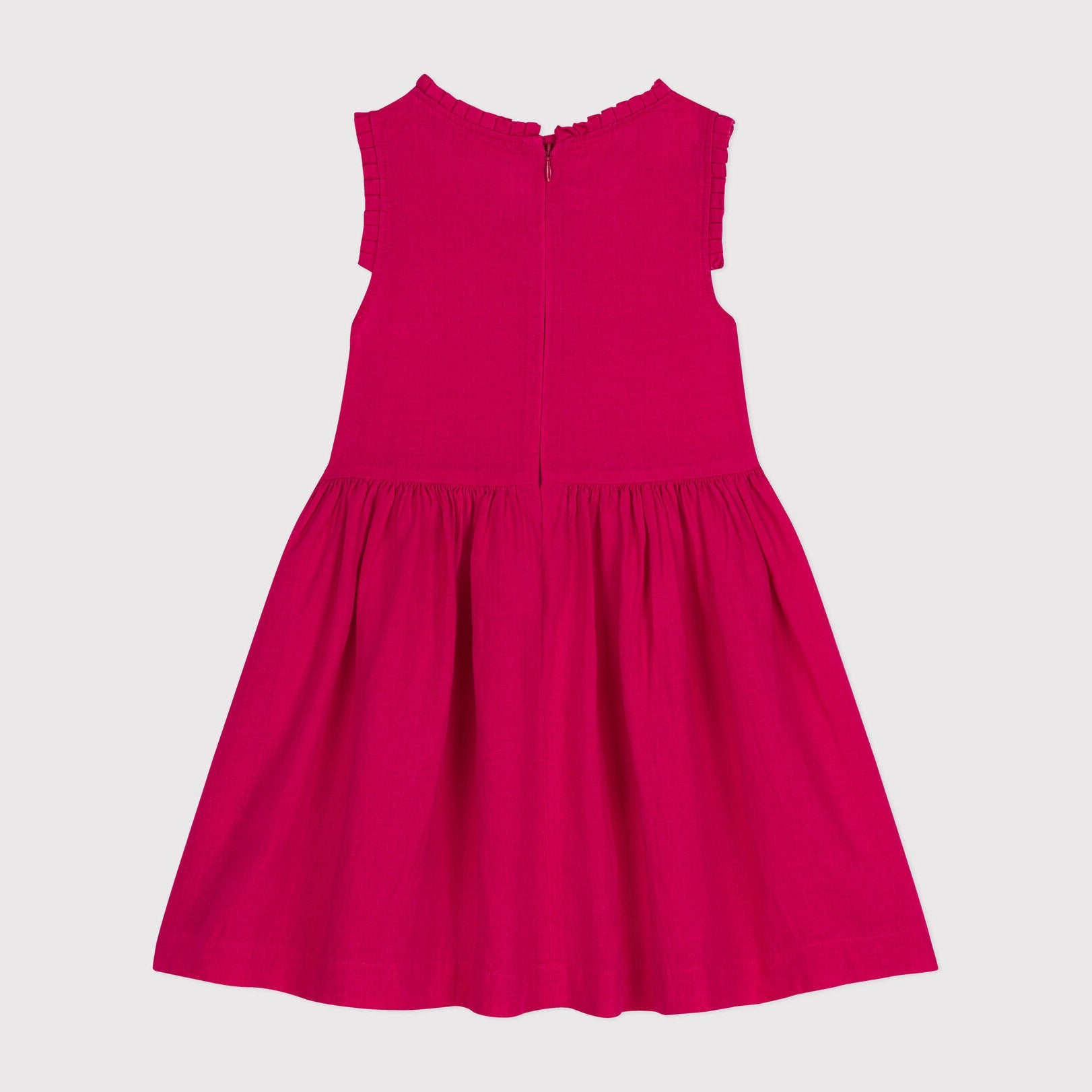 女童玫红色亚麻连衣裙