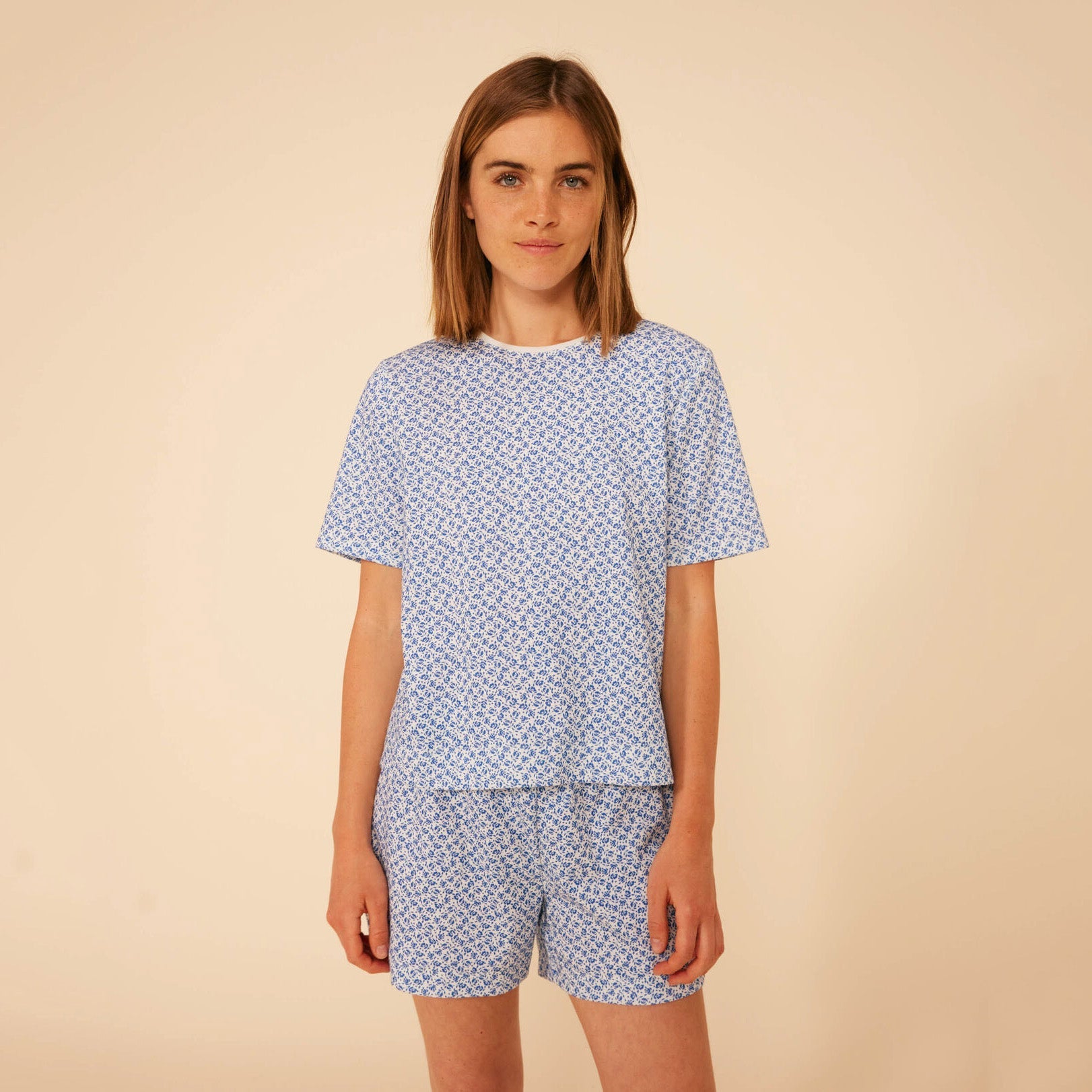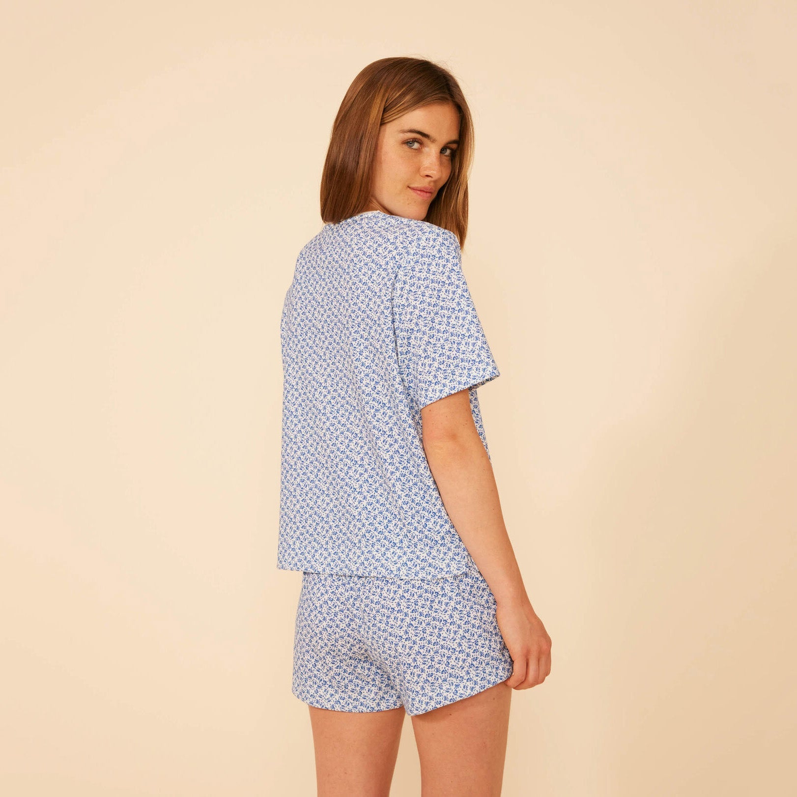 女士蓝色碎花棉睡衣套装