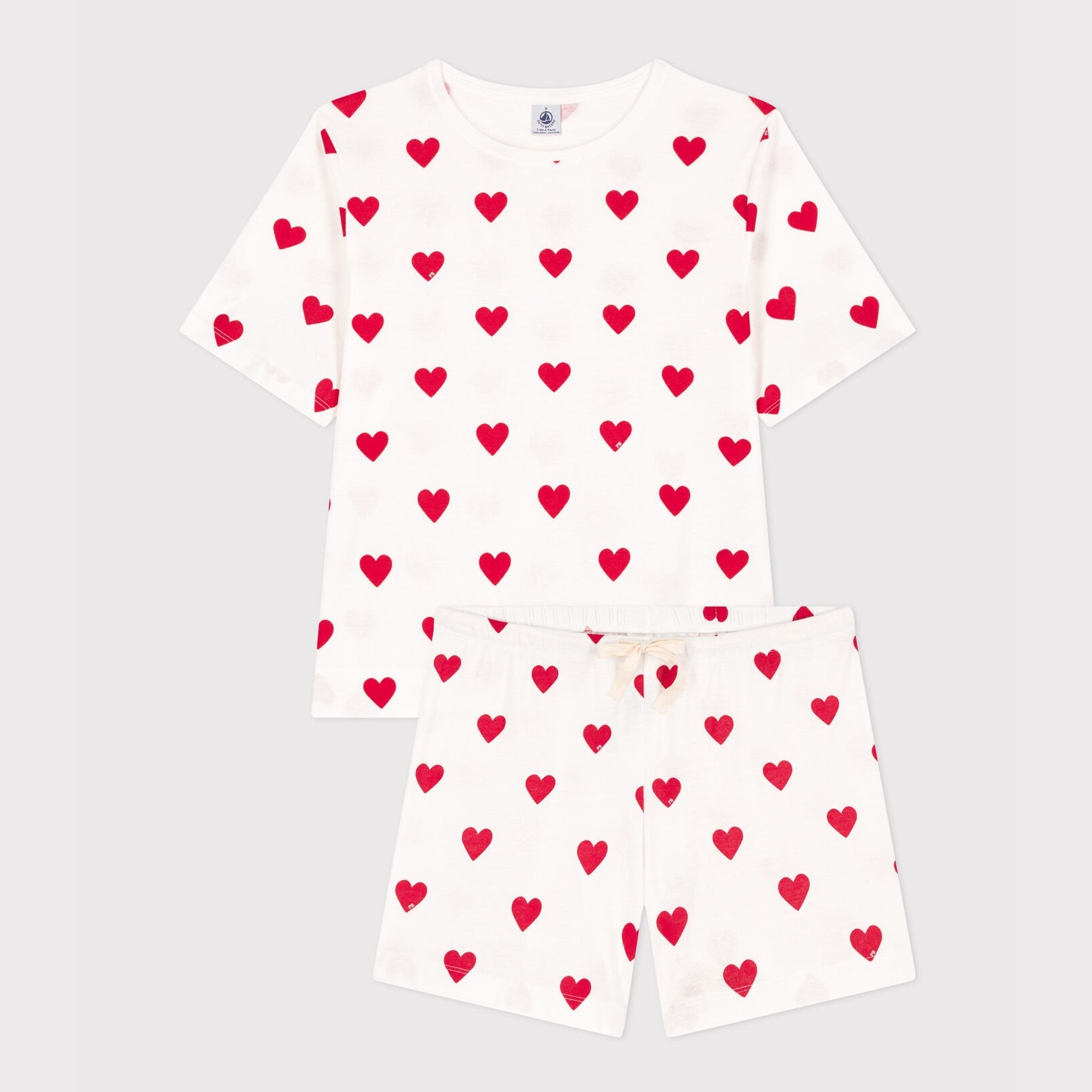 女士白色心形棉睡衣套装