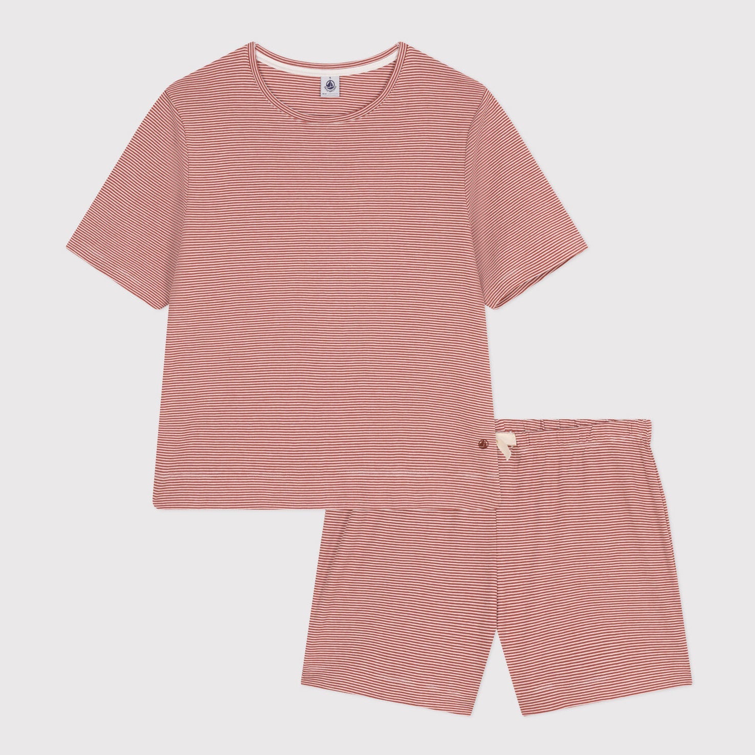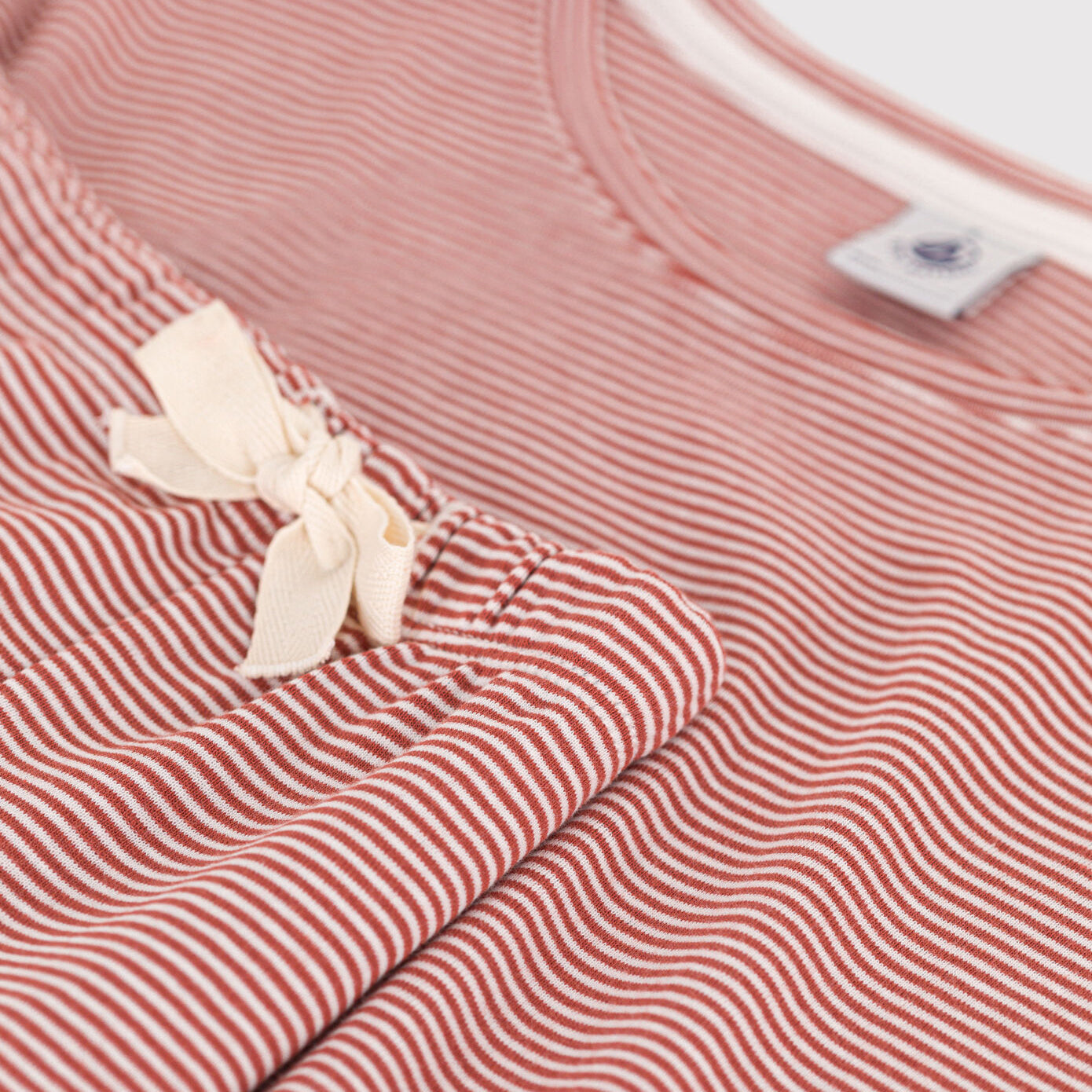 女士红色条纹棉睡衣套装