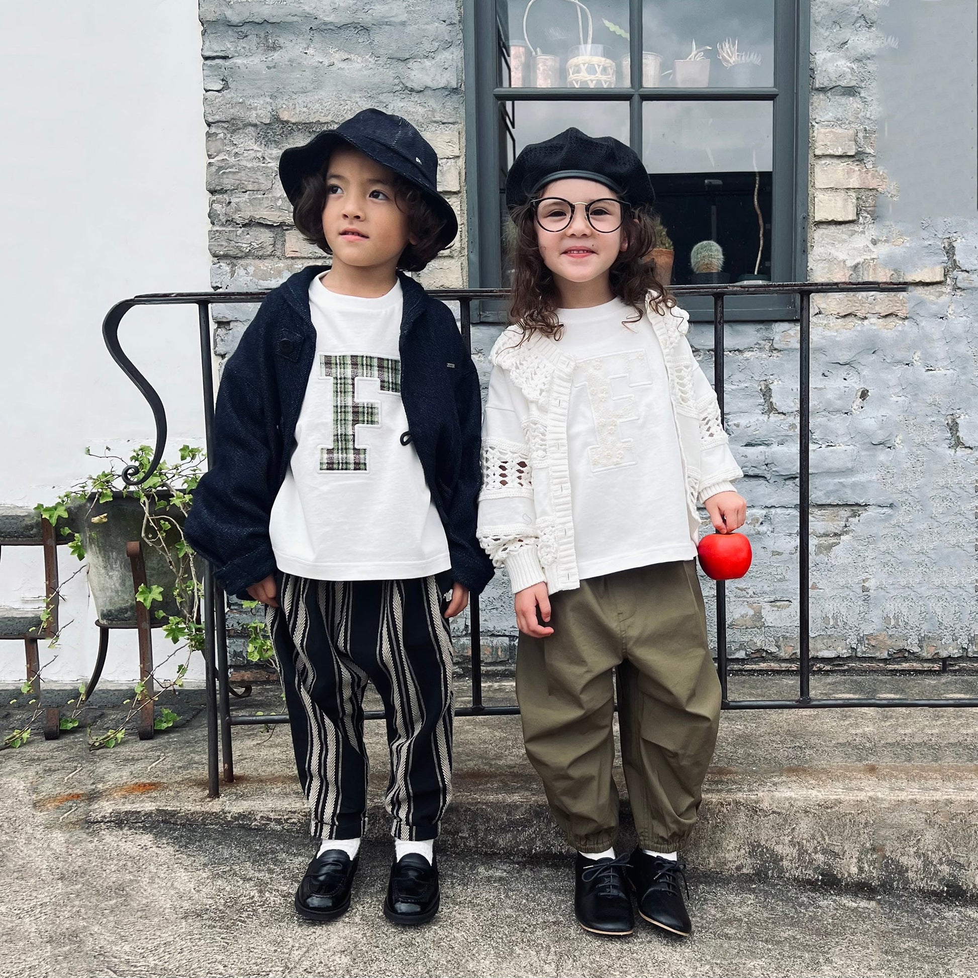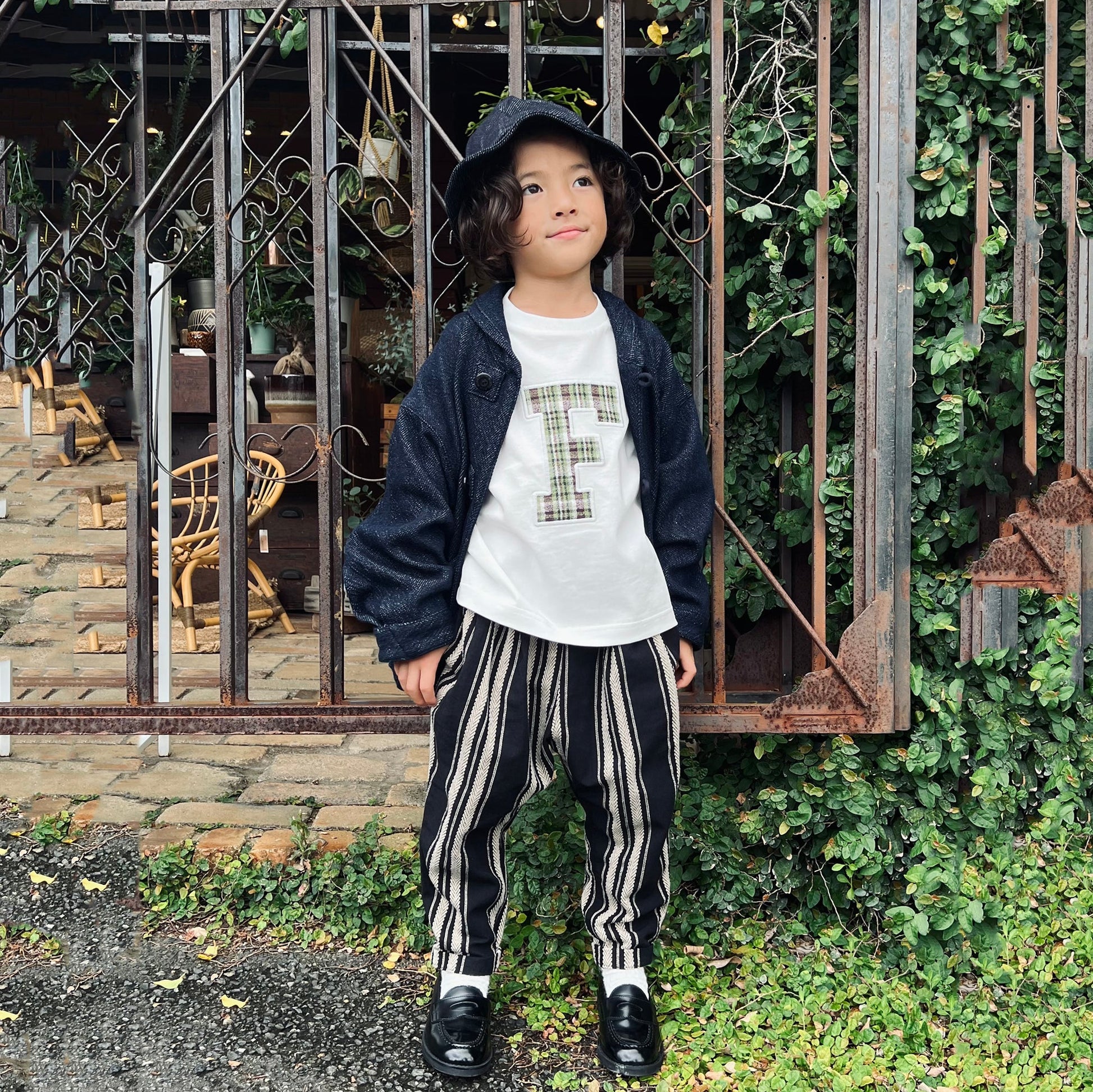 儿童黑色条纹棉长裤