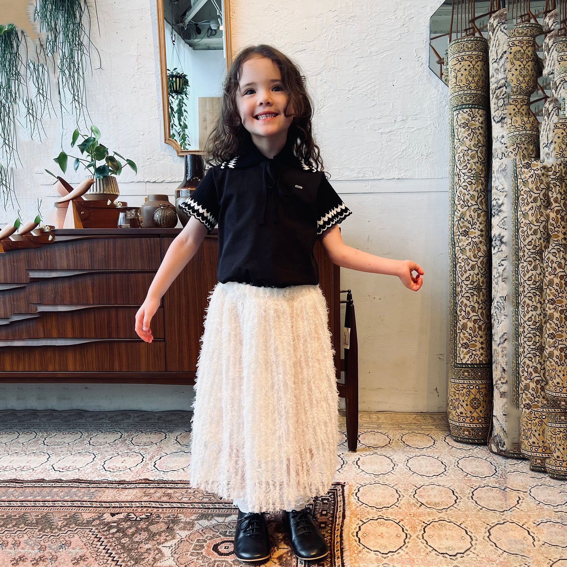 女童白色羽毛薄纱短裙
