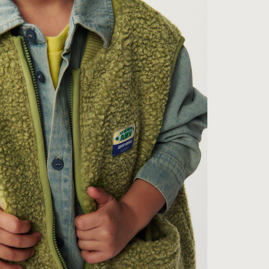 儿童绿色羊羔绒马甲