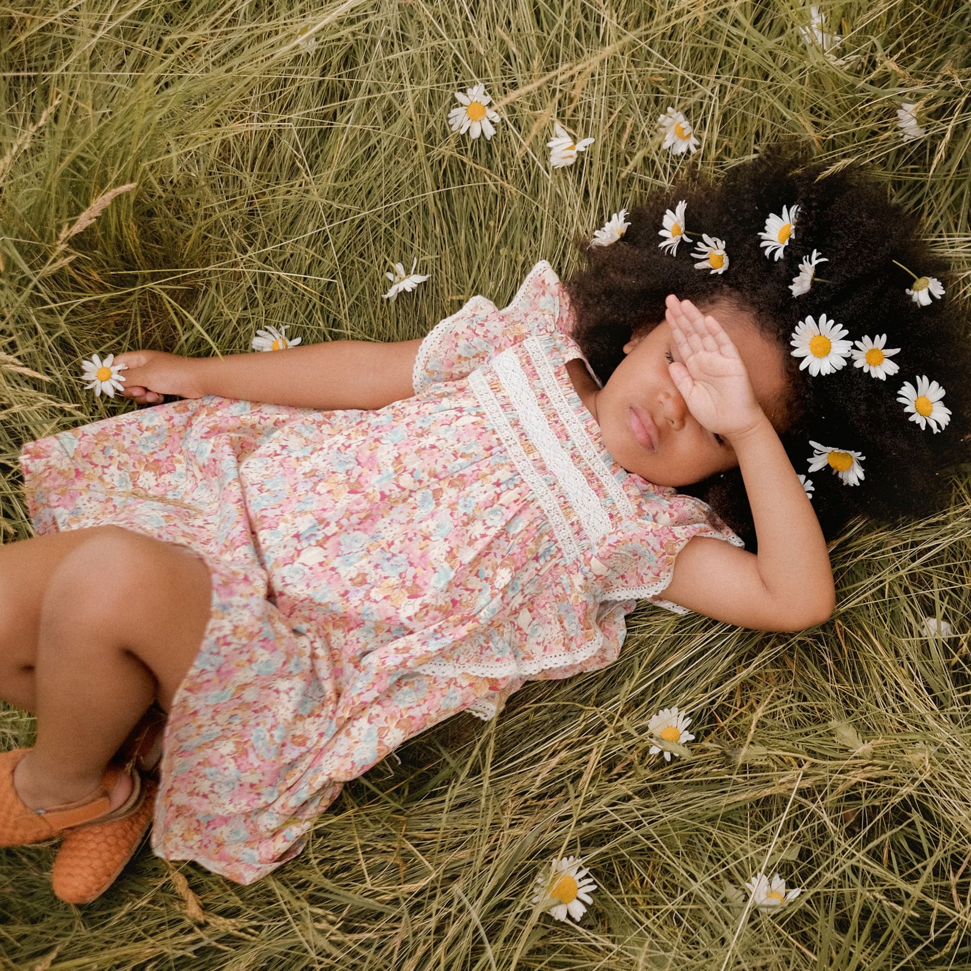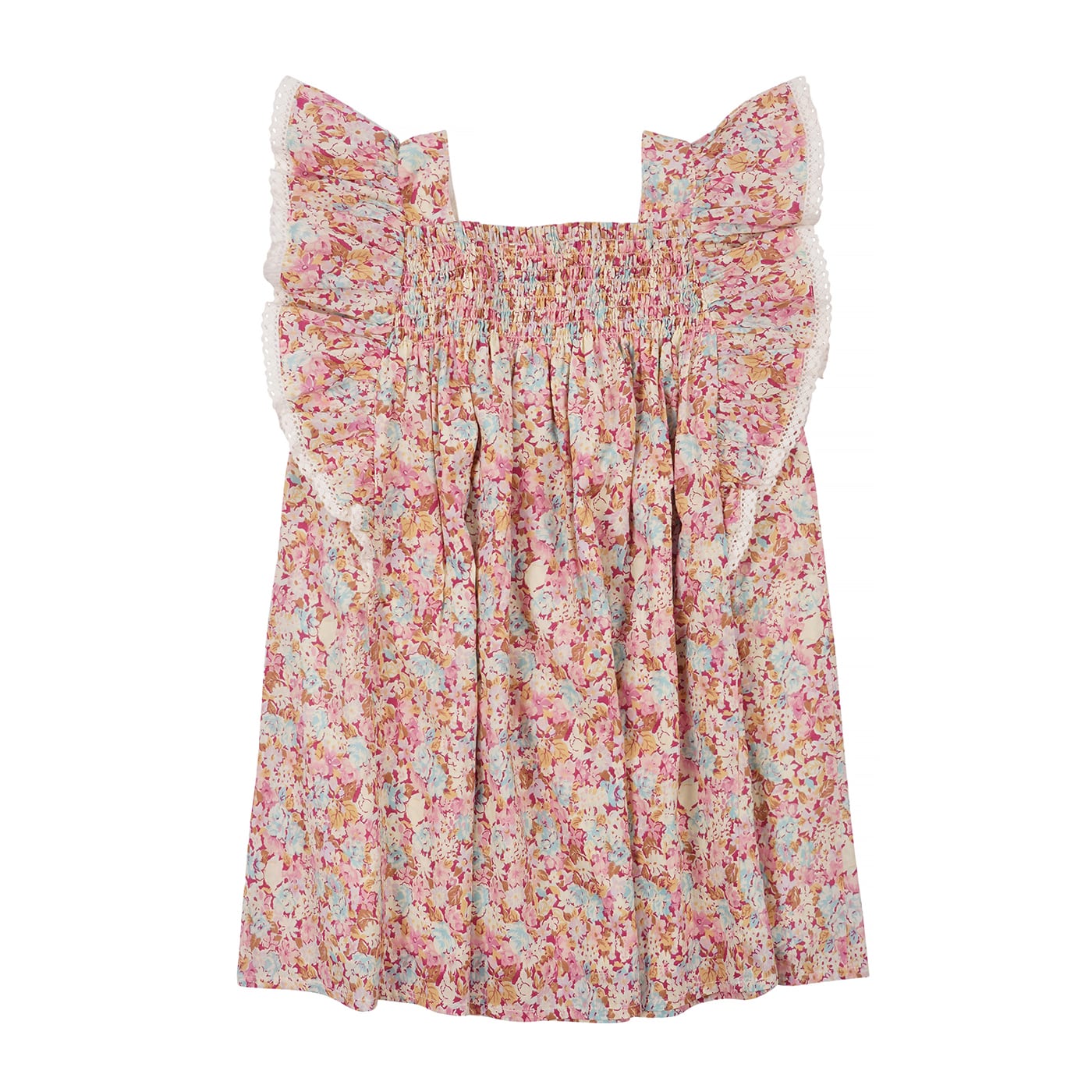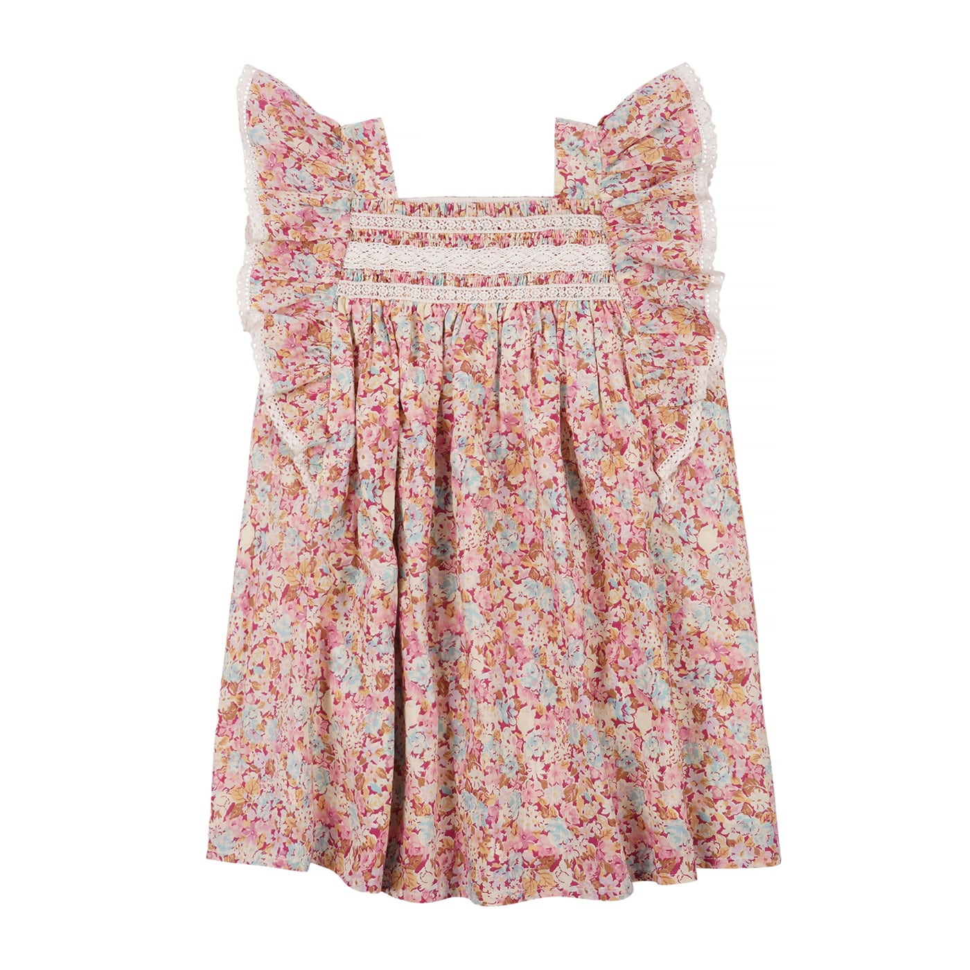 女童粉色碎花棉连衣裙