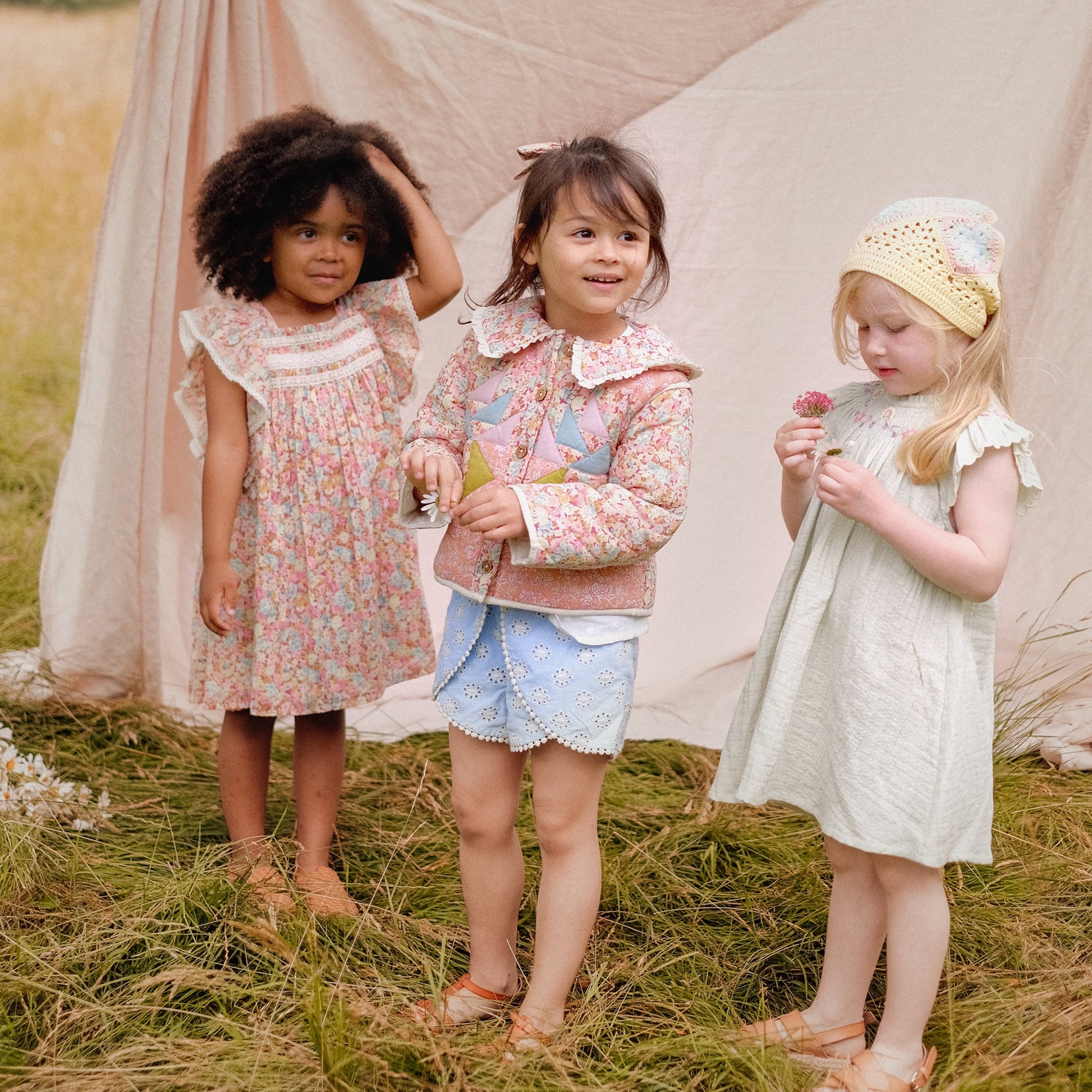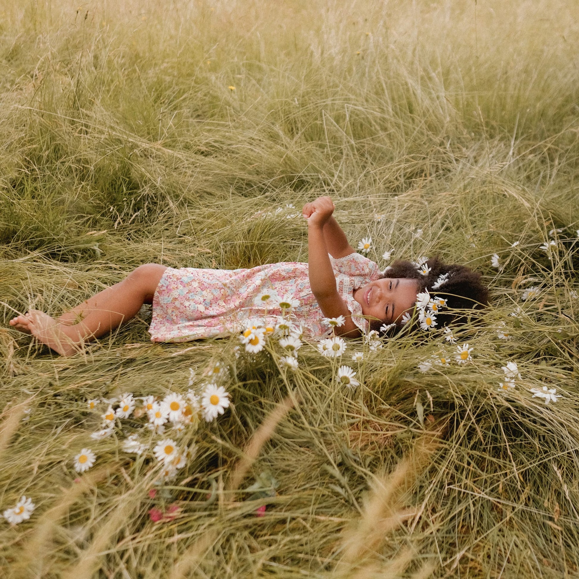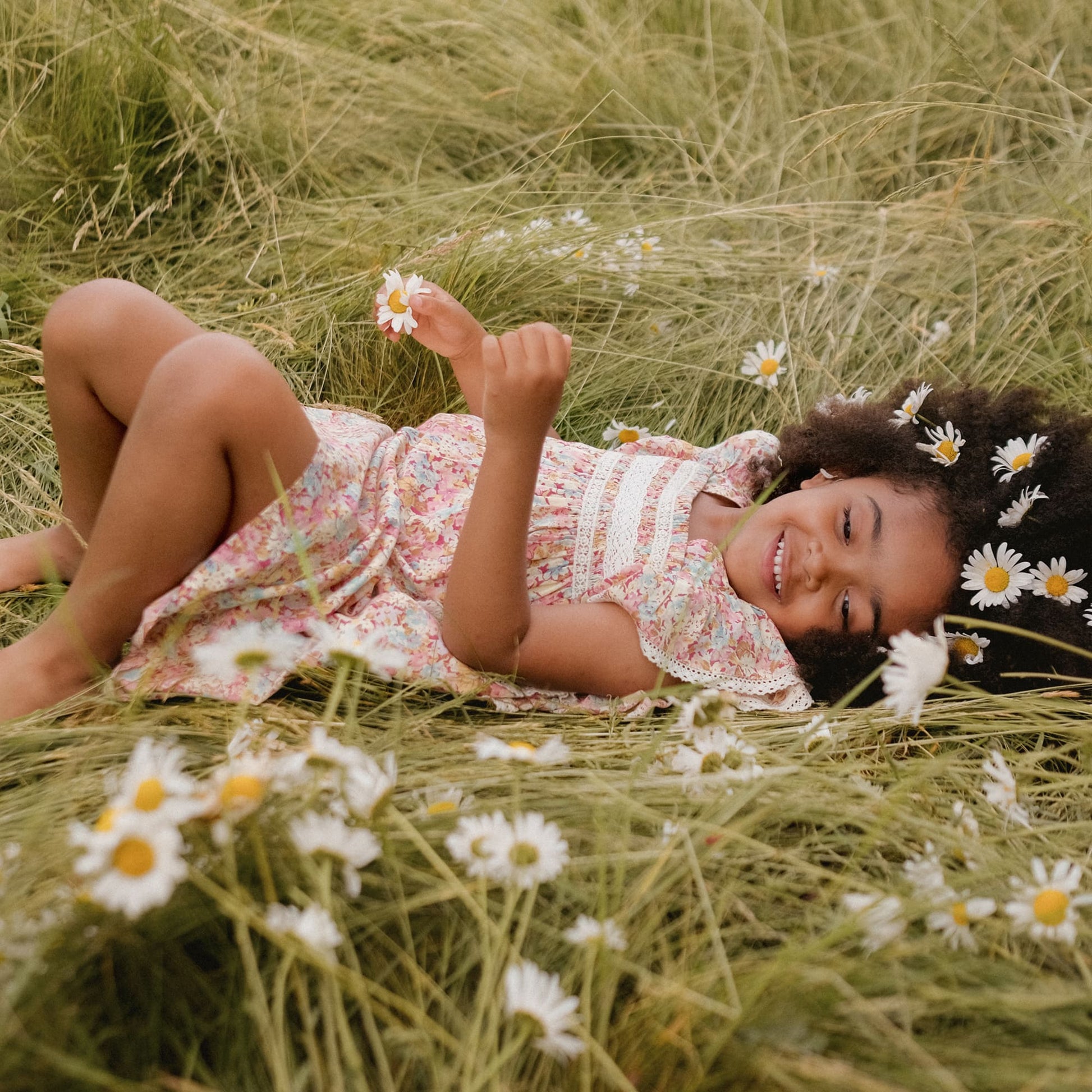 女童粉色碎花棉连衣裙