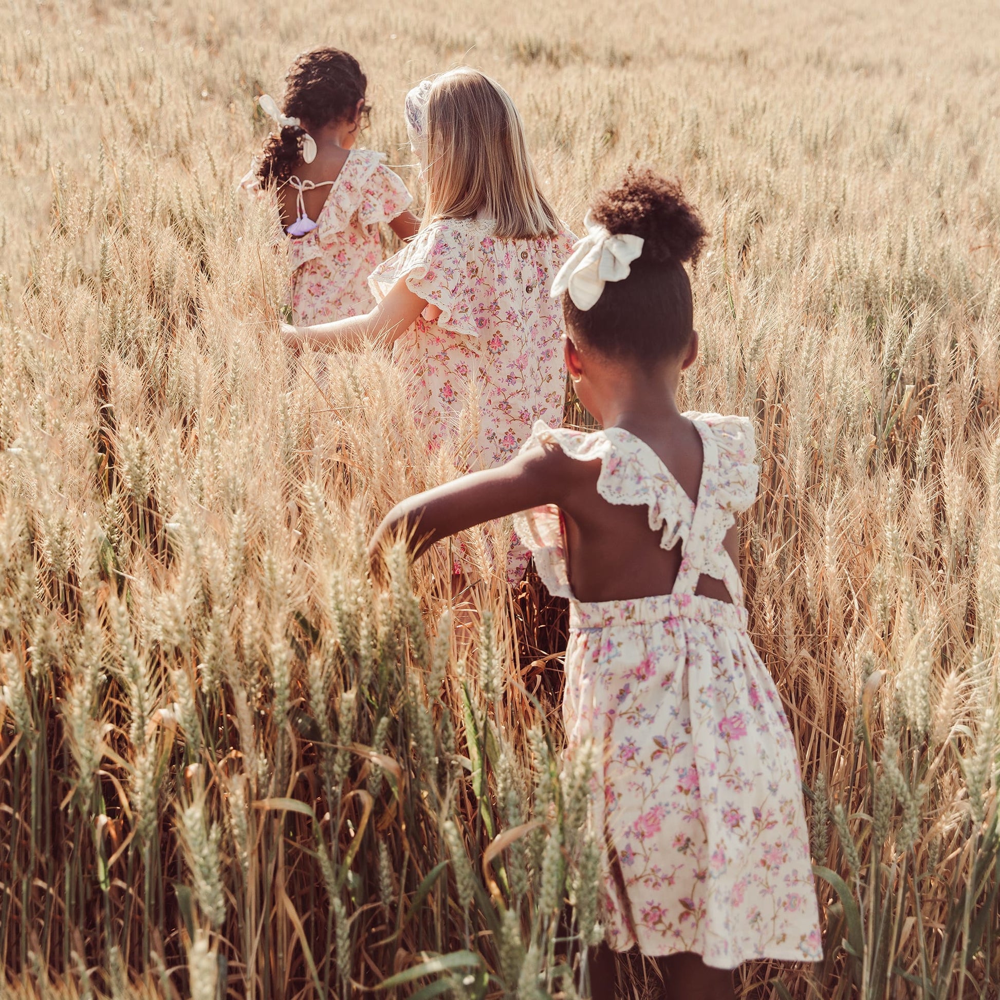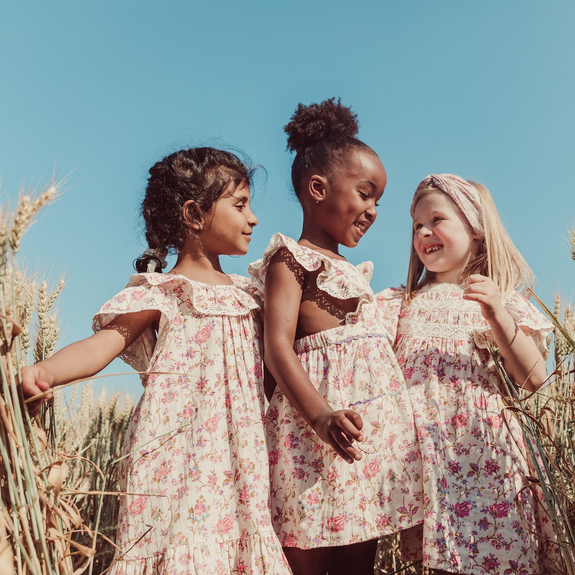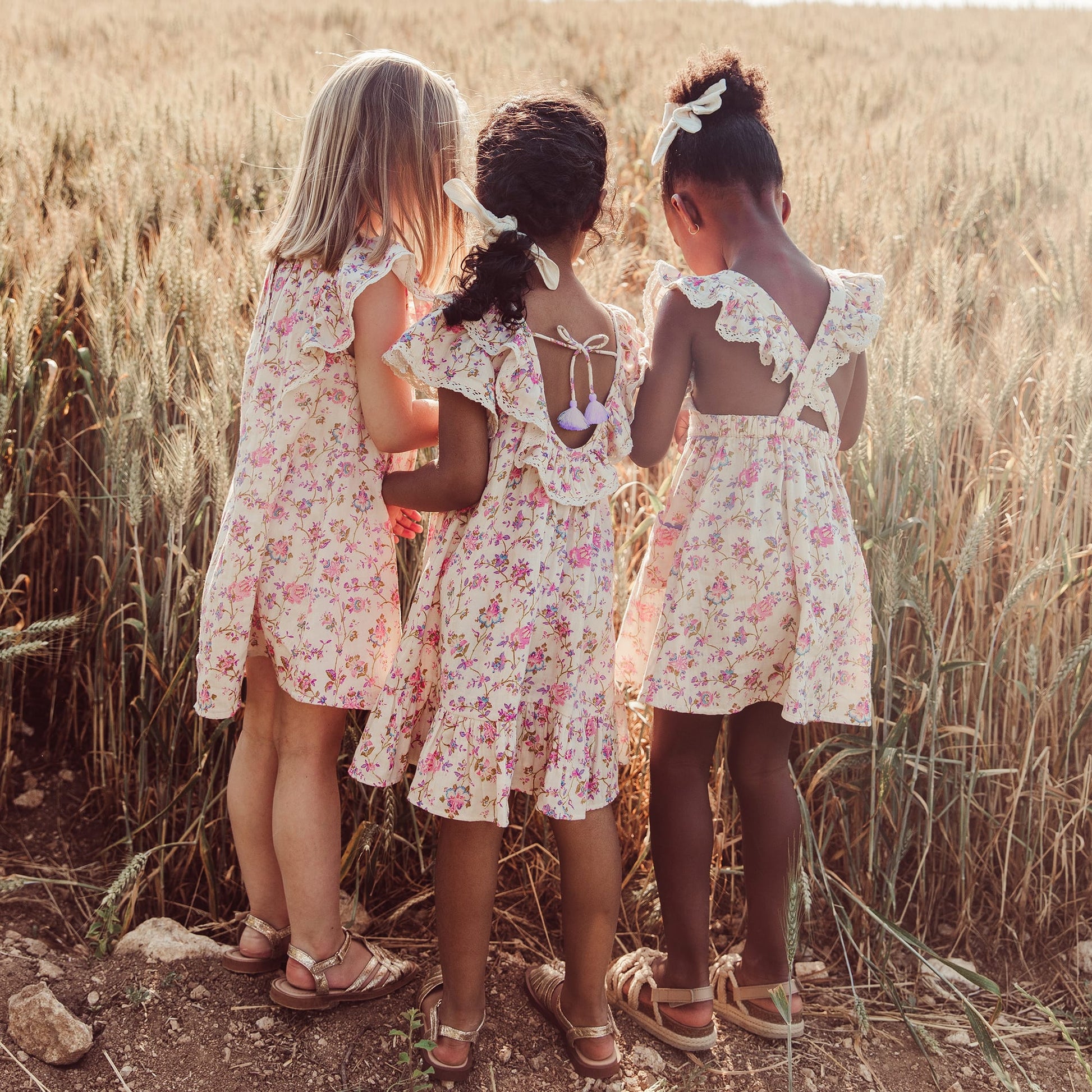 女童粉色碎花荷叶领棉连衣裙