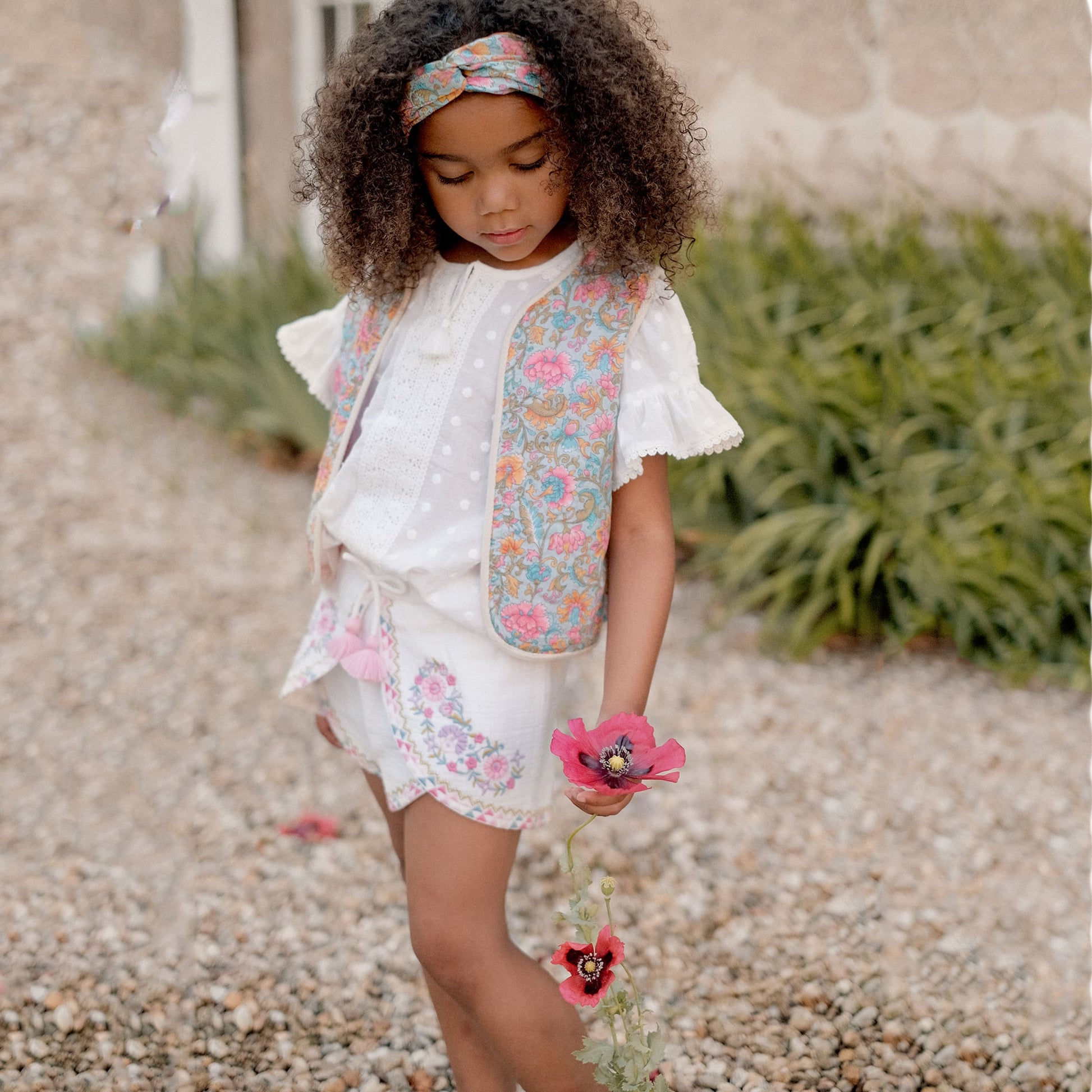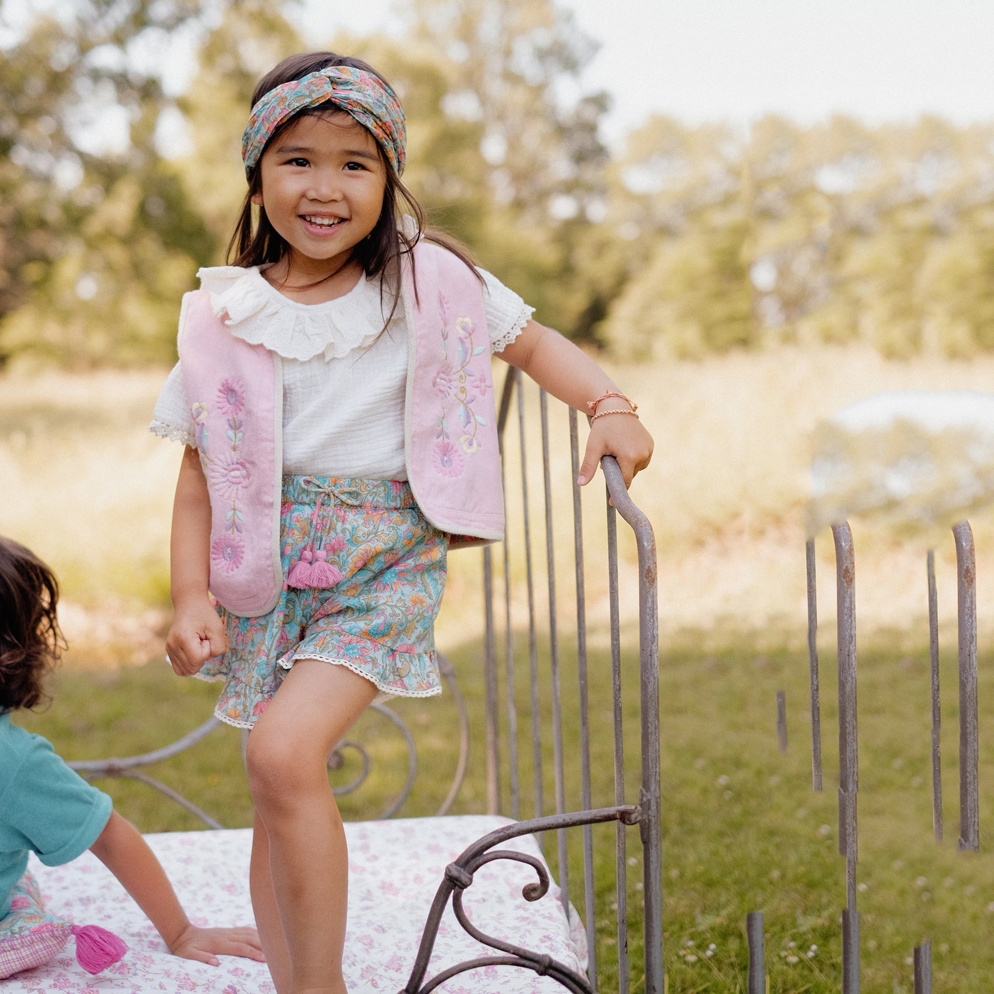 女童粉色刺绣双面马甲