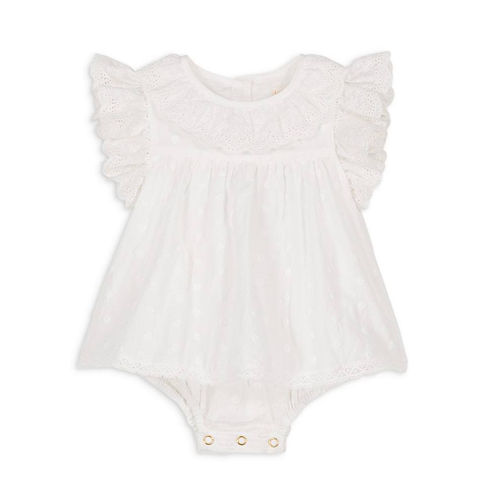 女婴白色刺绣棉连体衣