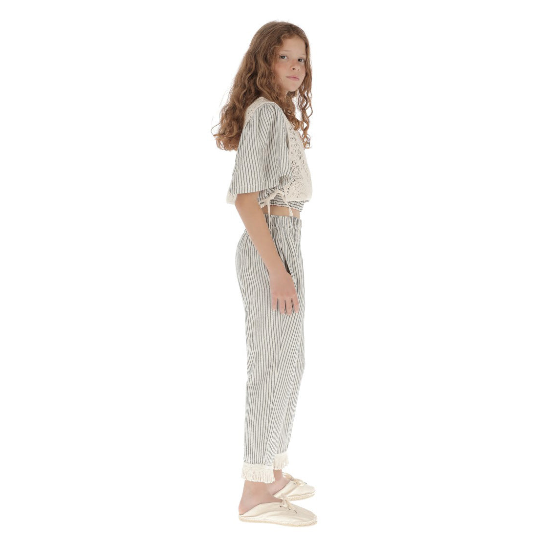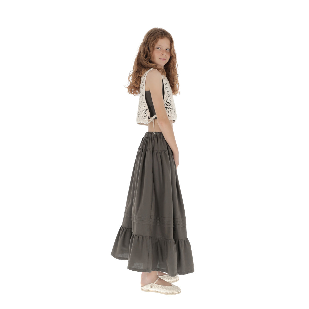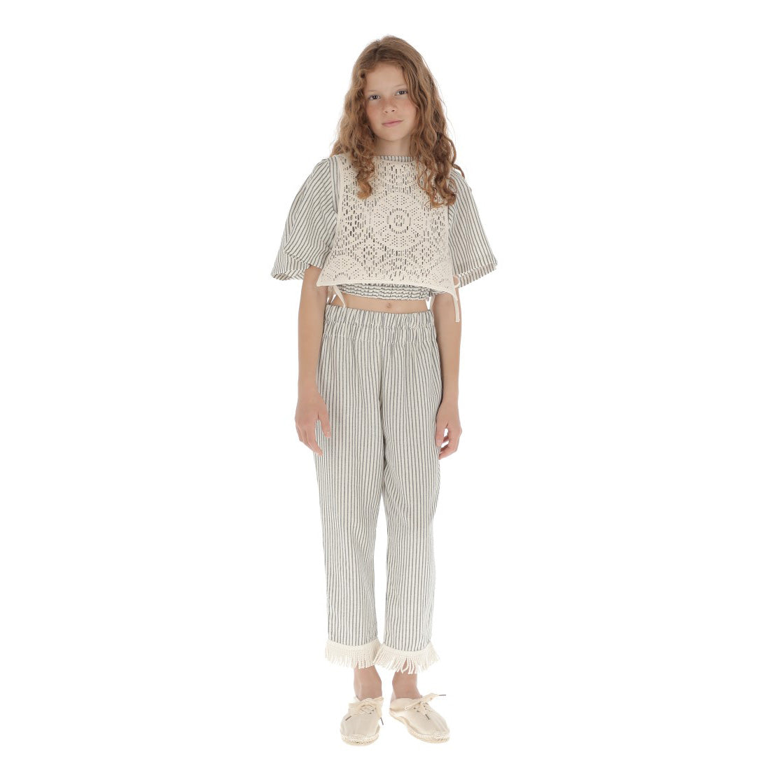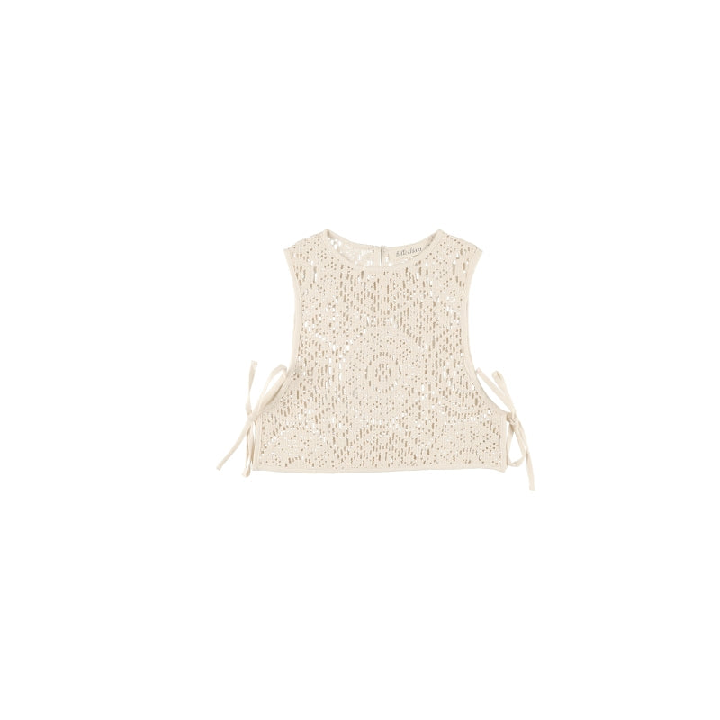 女童白色镂空钩织背心