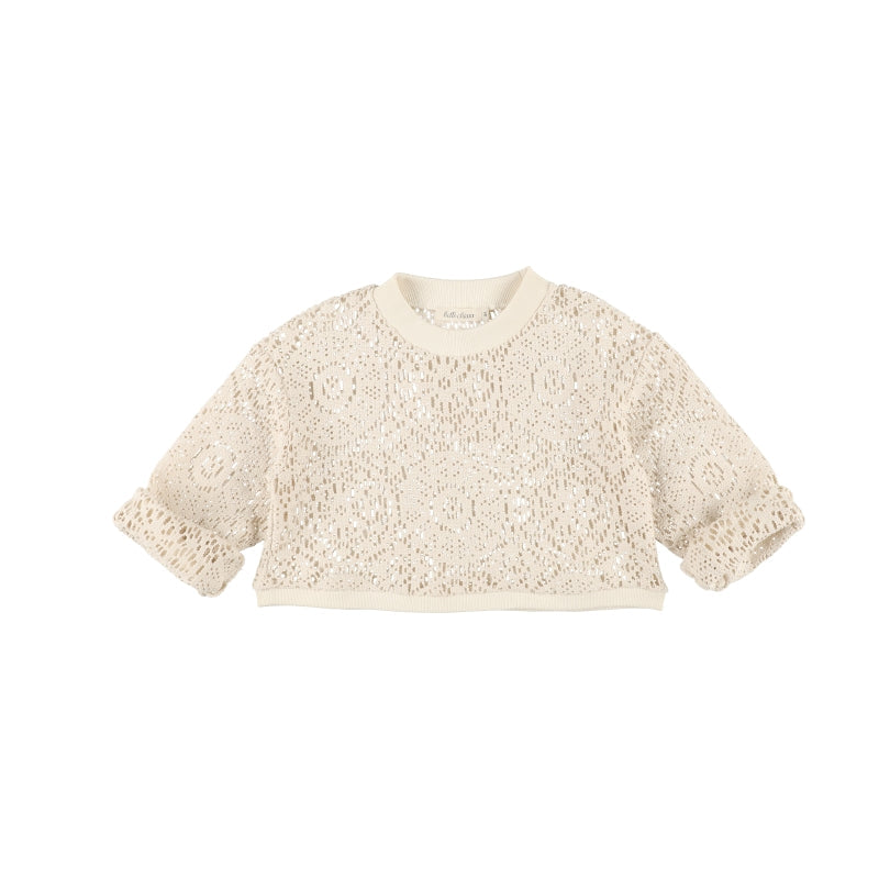 女童白色镂空钩织上衣