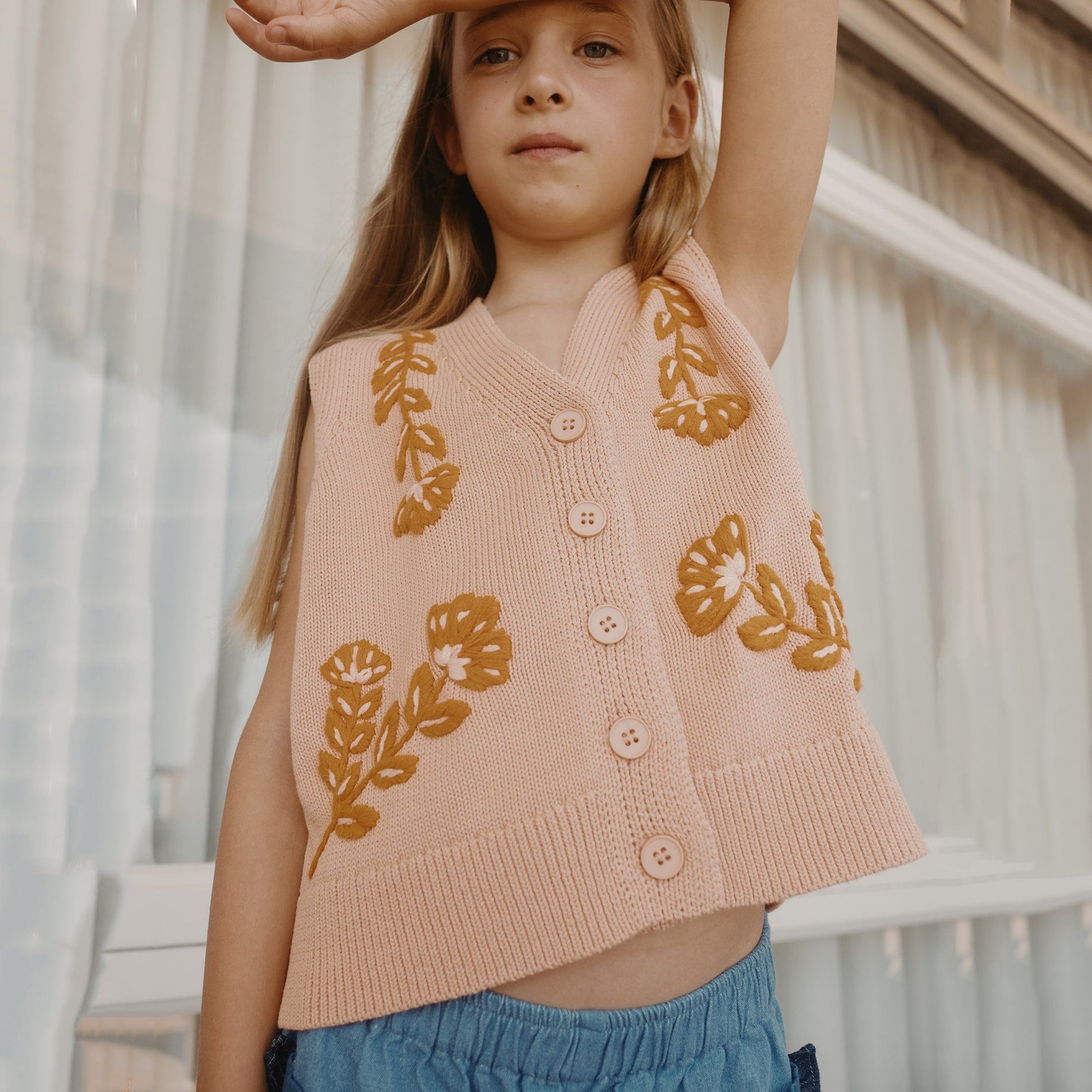 女童杏黄色刺绣棉马甲