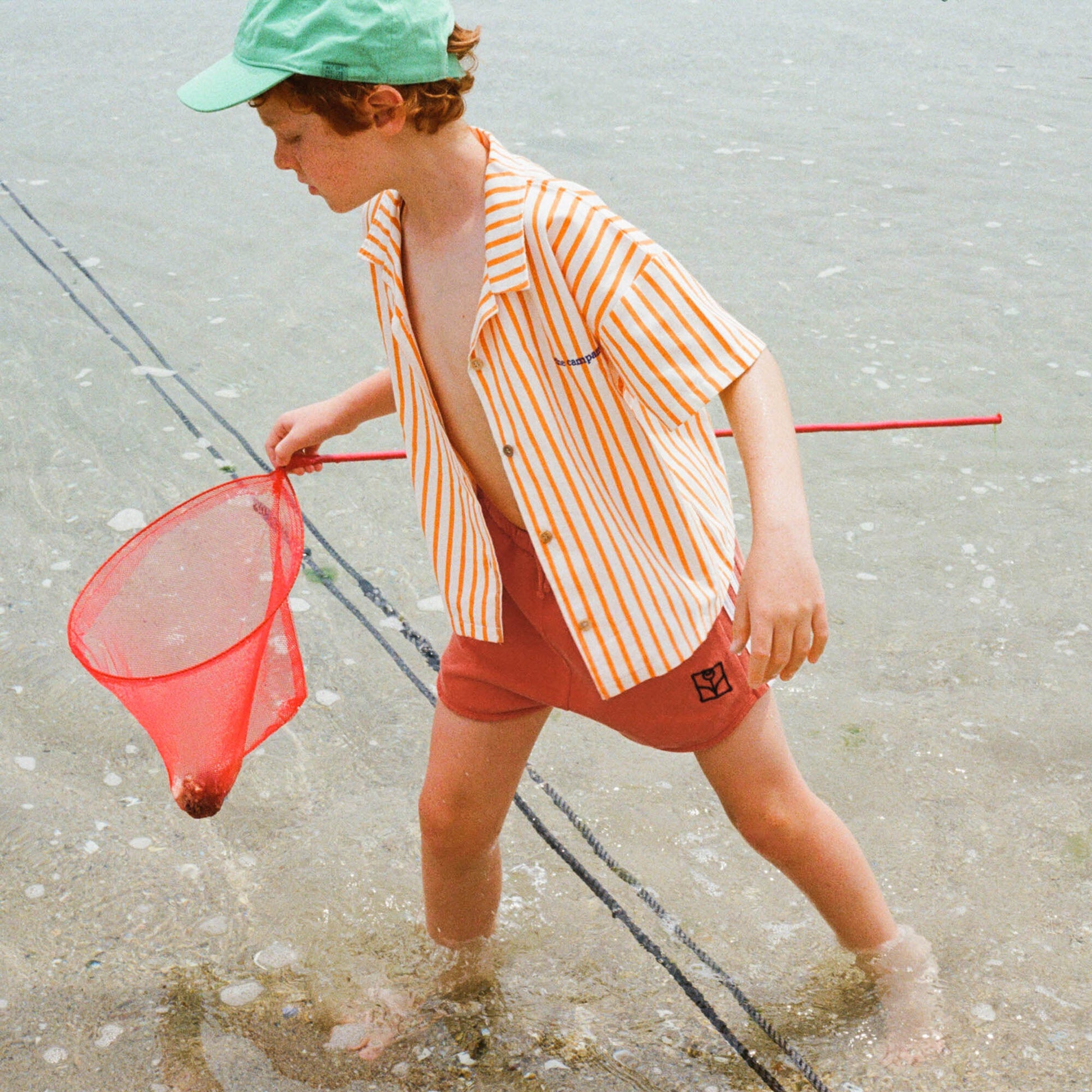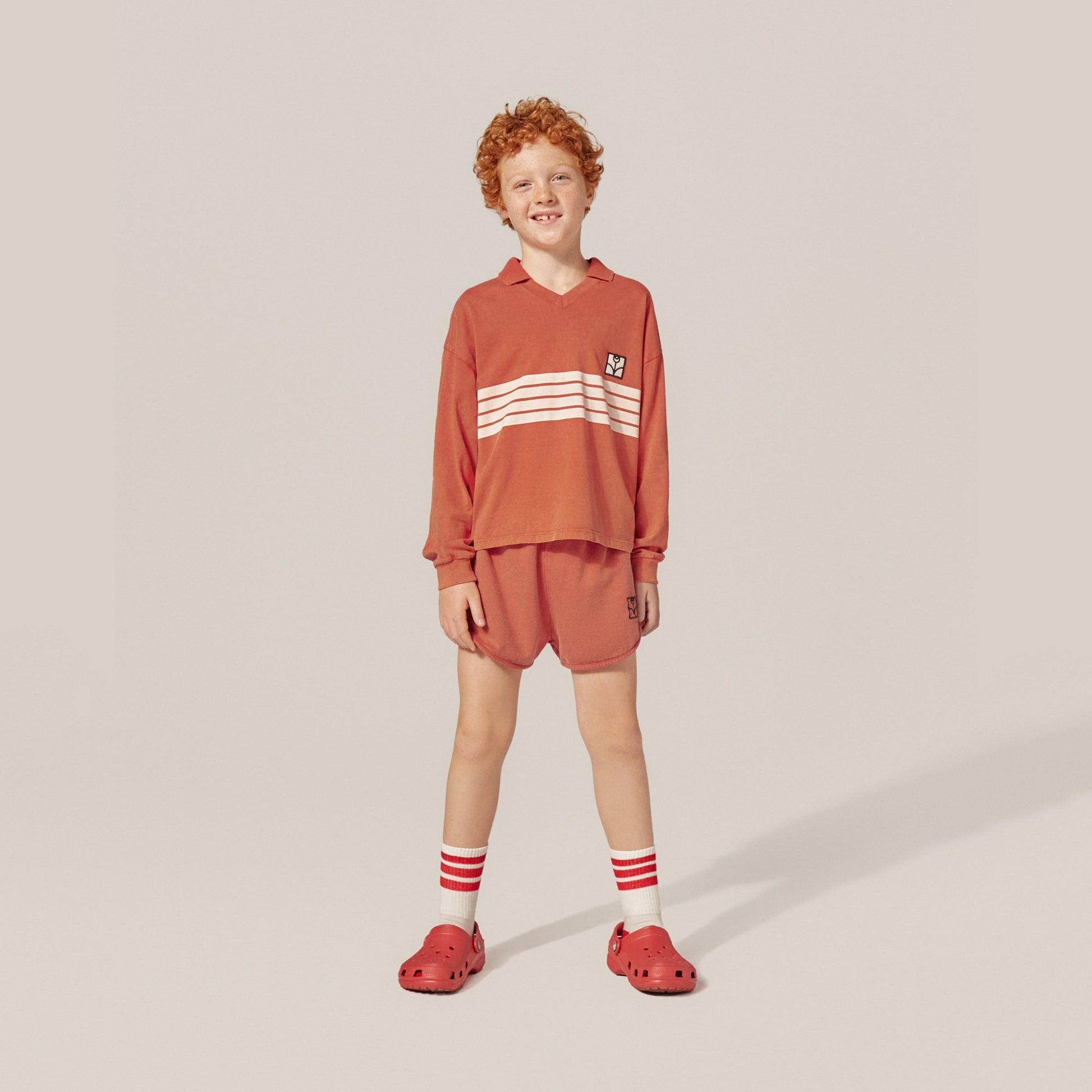 儿童橘红色棉短裤