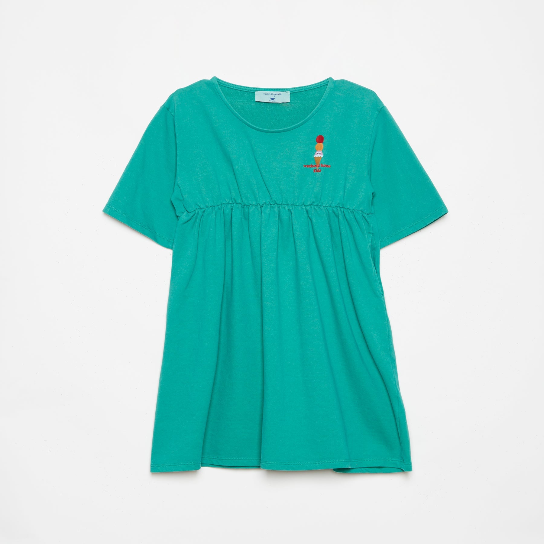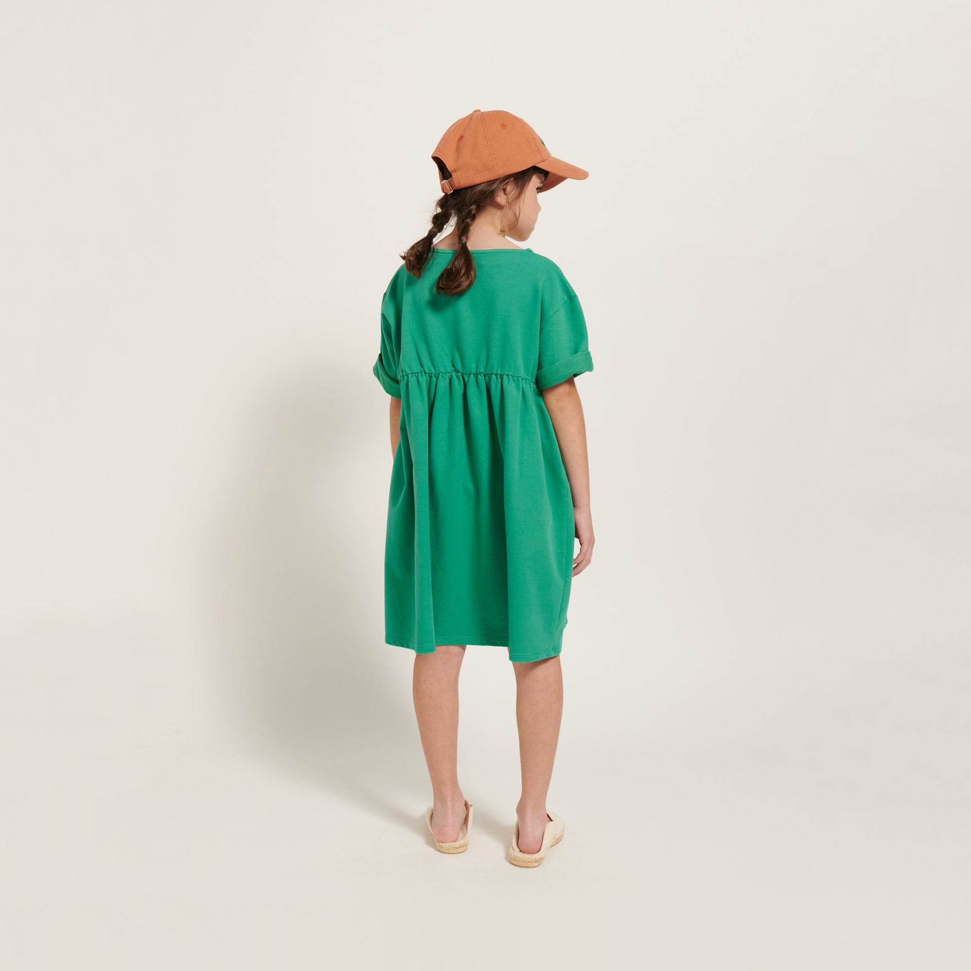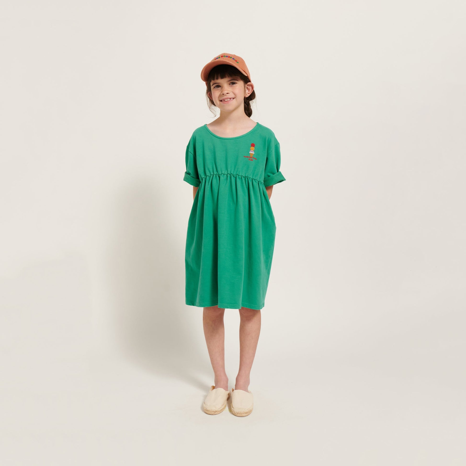 女童绿色刺绣棉连衣裙