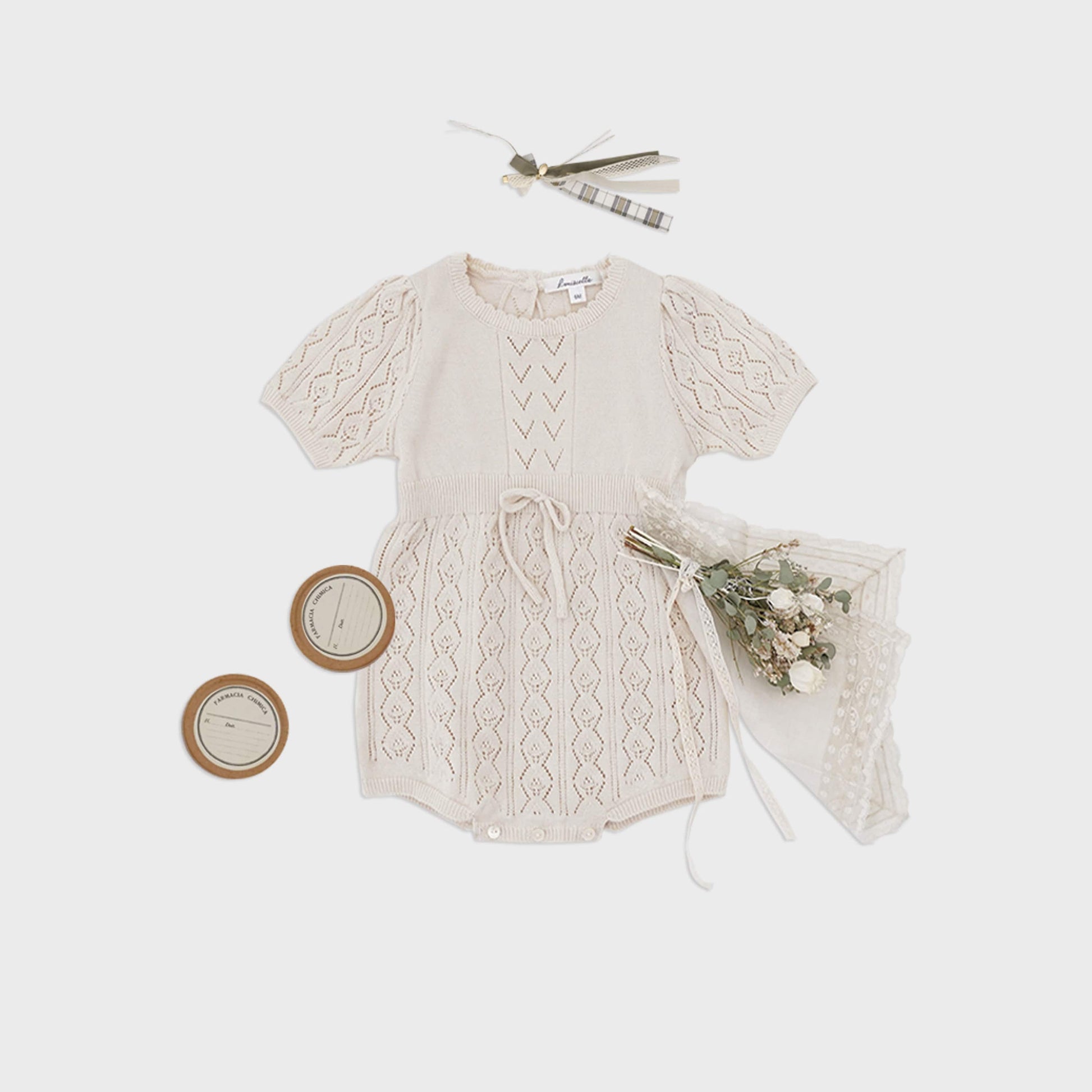 女婴米白色棉针织连体衣