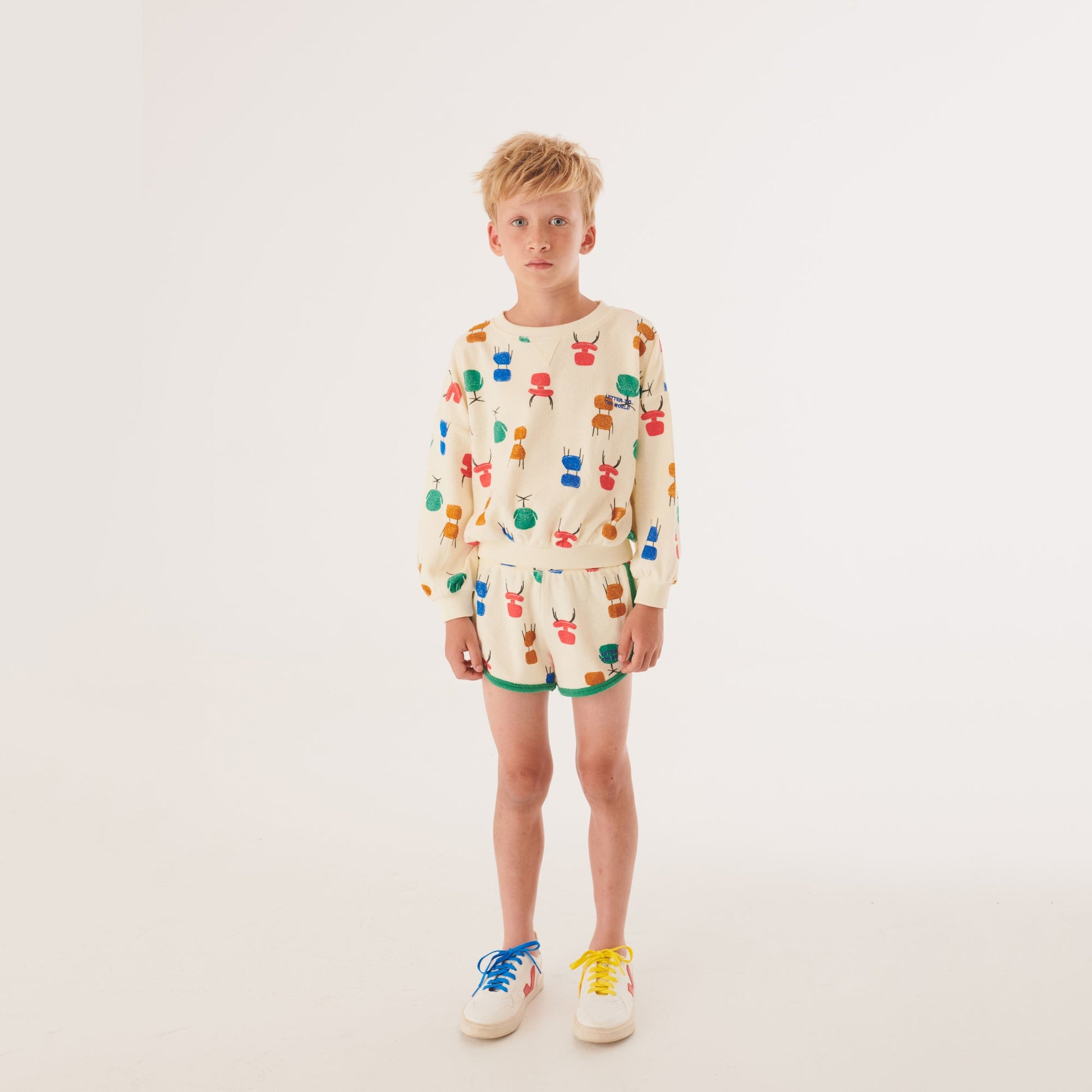 儿童白色印花棉短裤