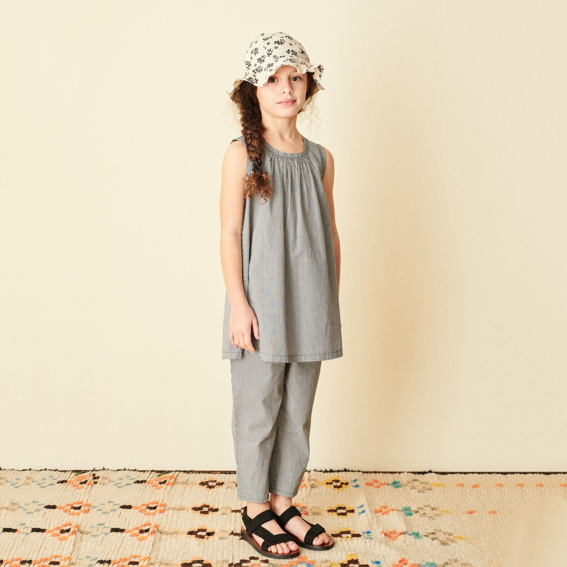 儿童黑色格子棉长裤