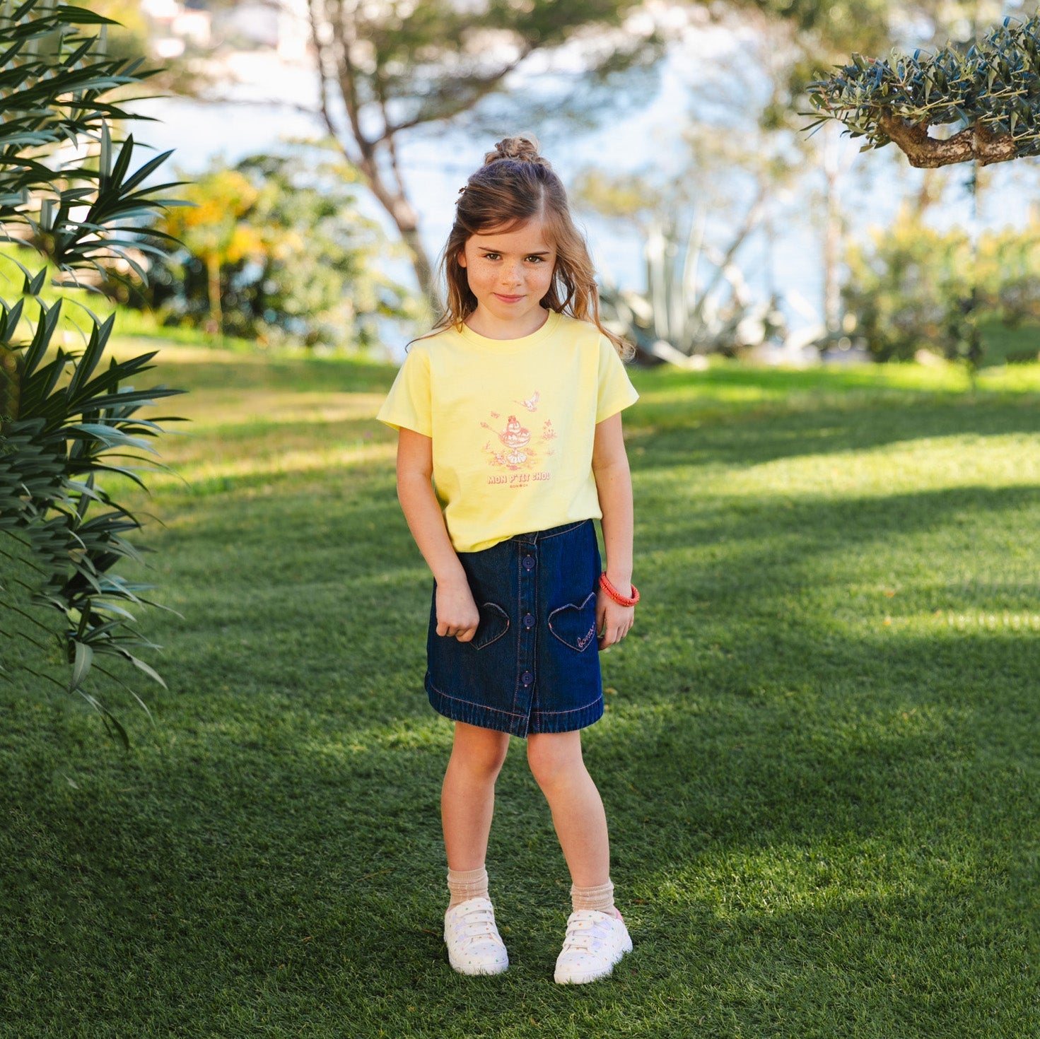 女童黄色印花棉T恤