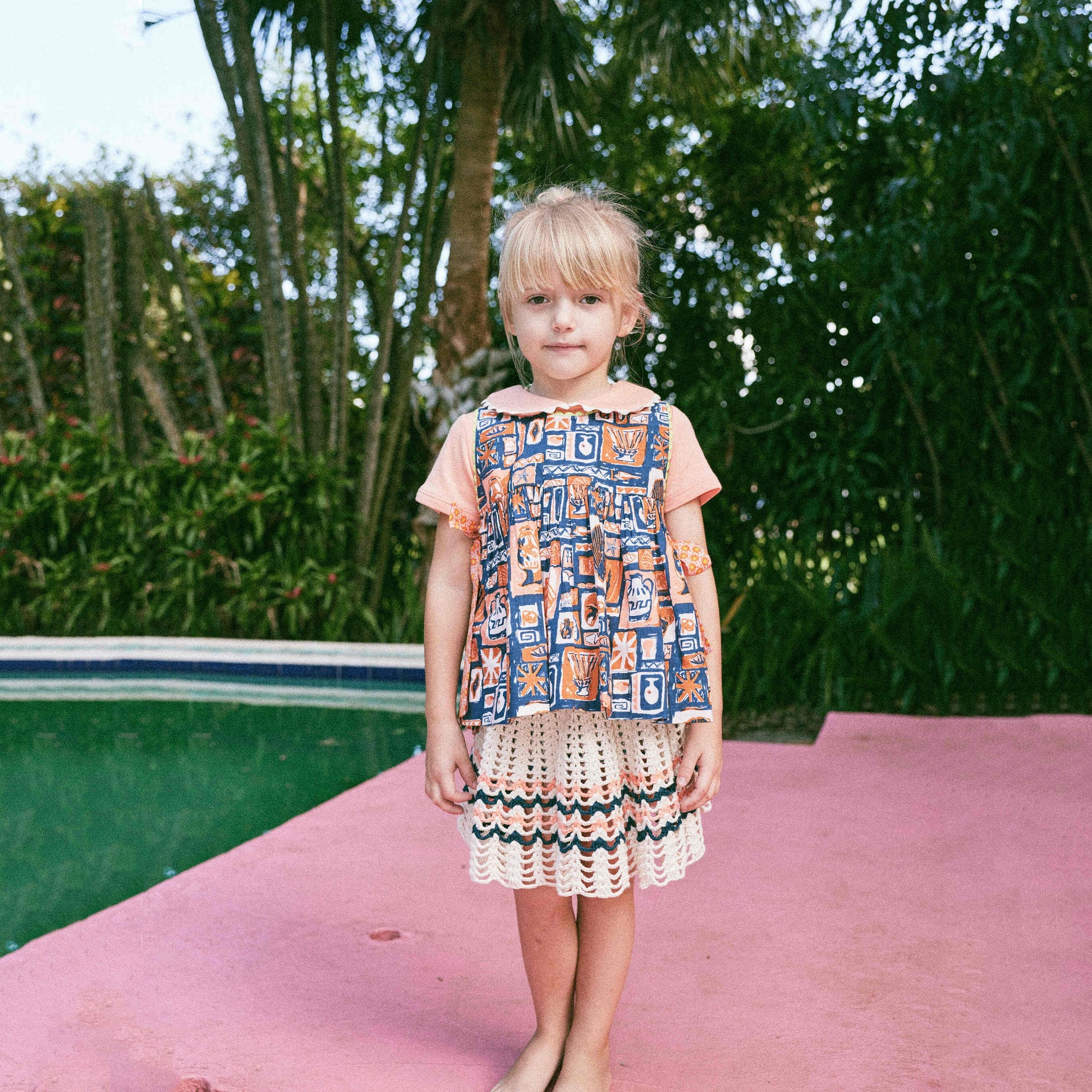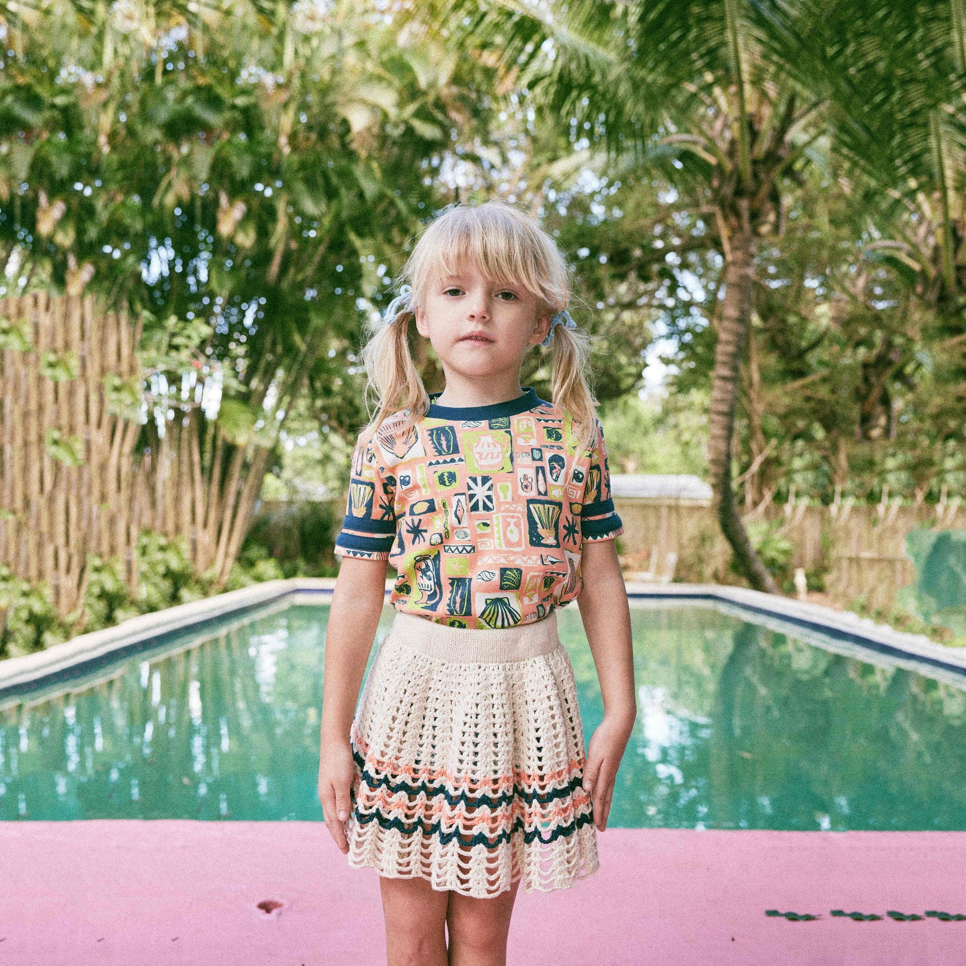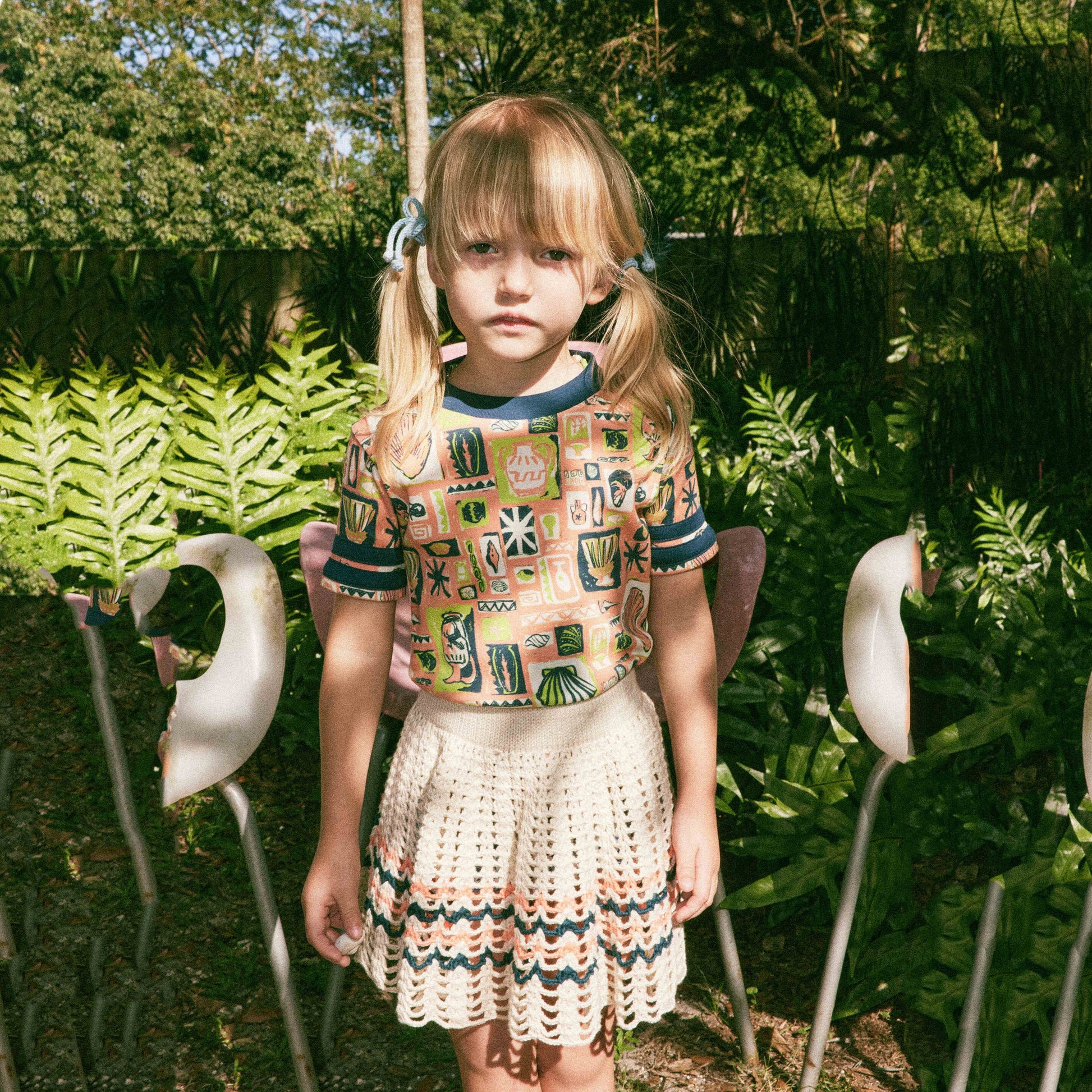 女童白色钩织棉短裙