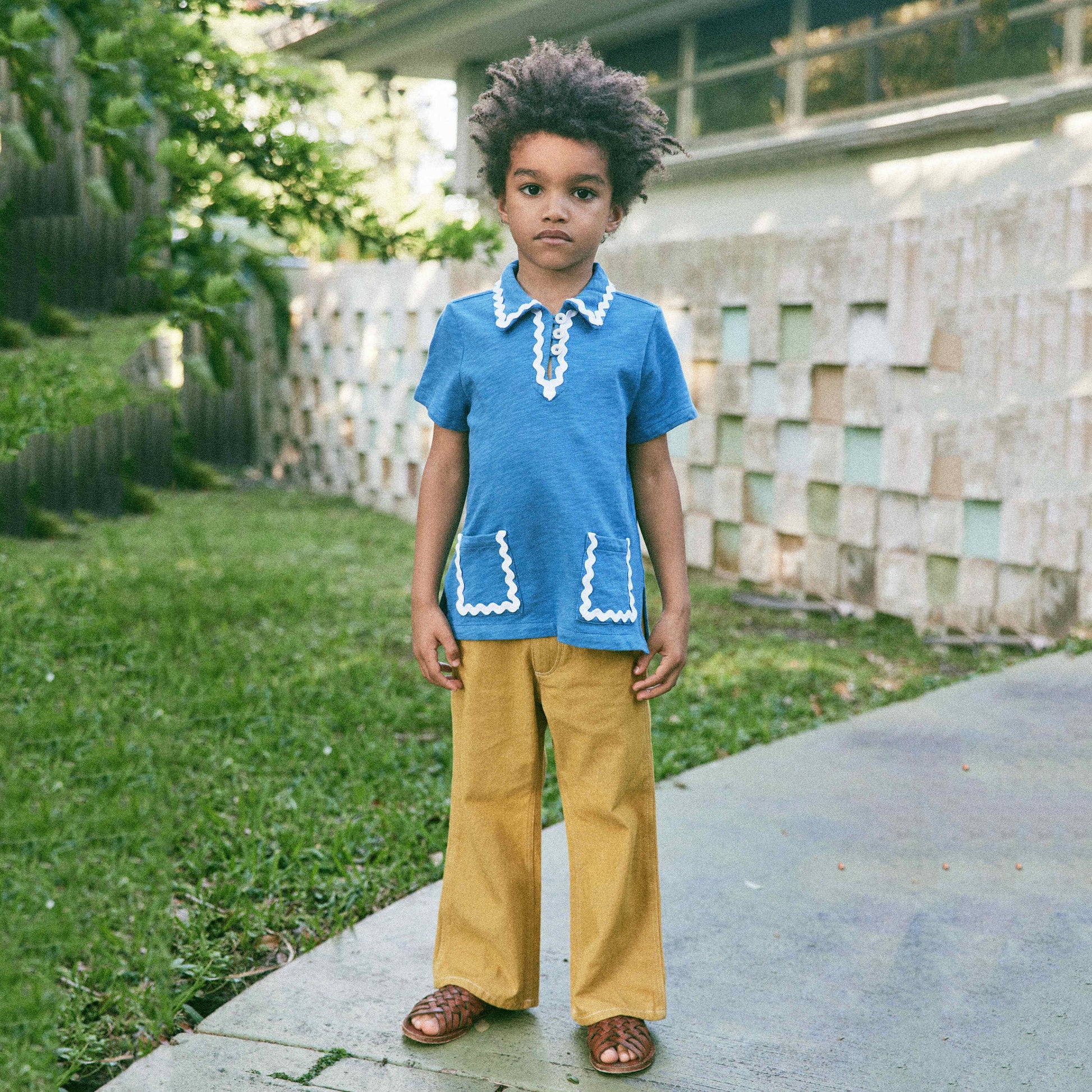 儿童蓝色棉Polo衫