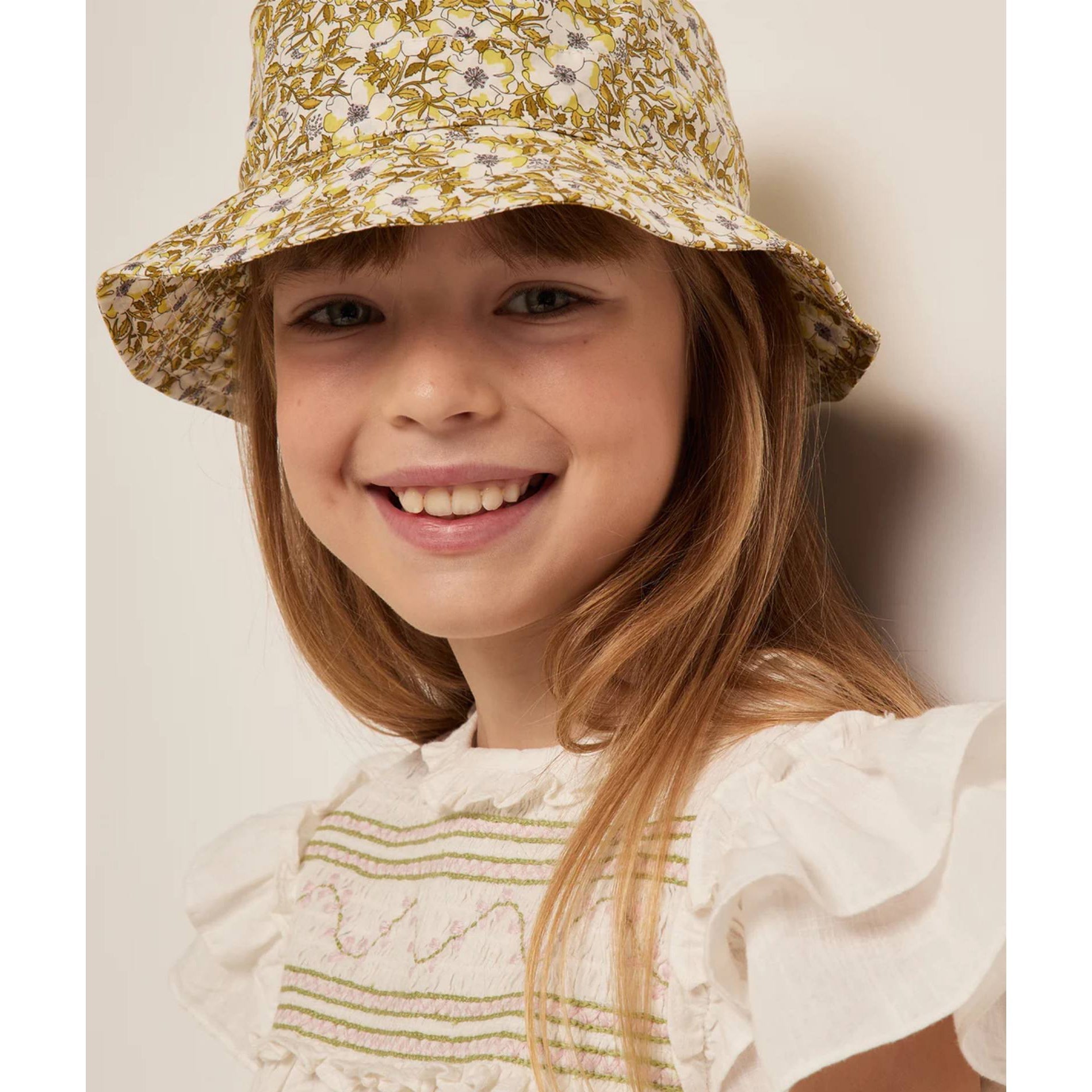 女童黄色碎花渔夫帽