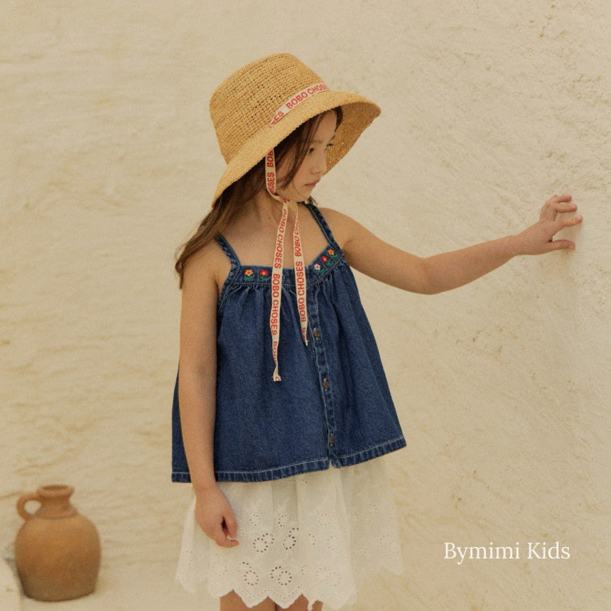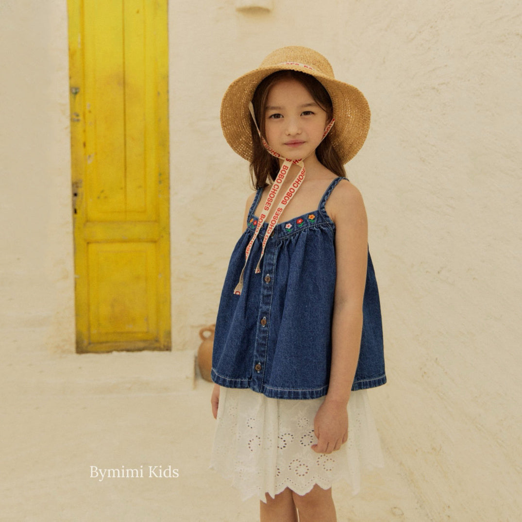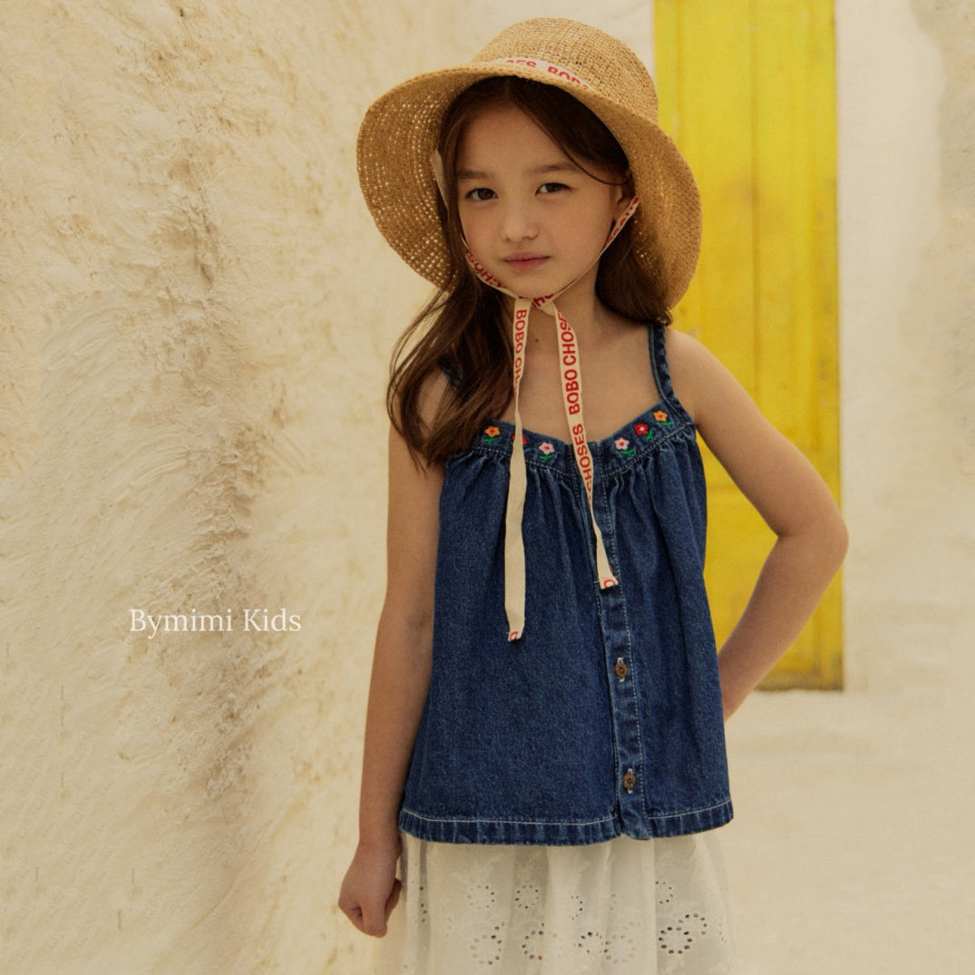 女童蓝色牛仔吊带上衣