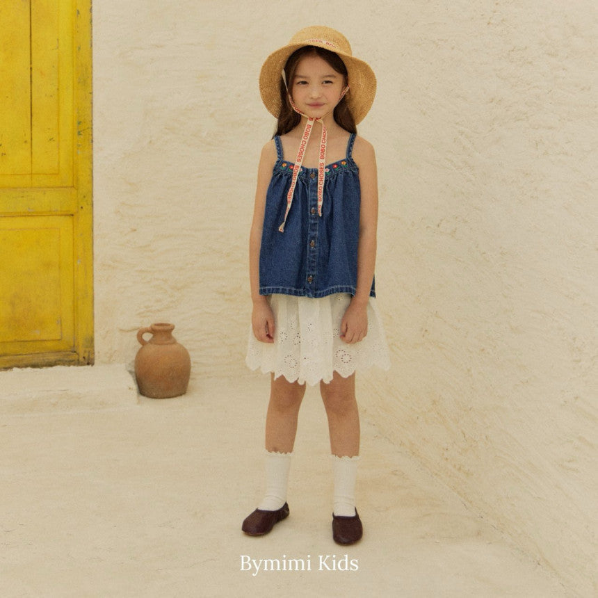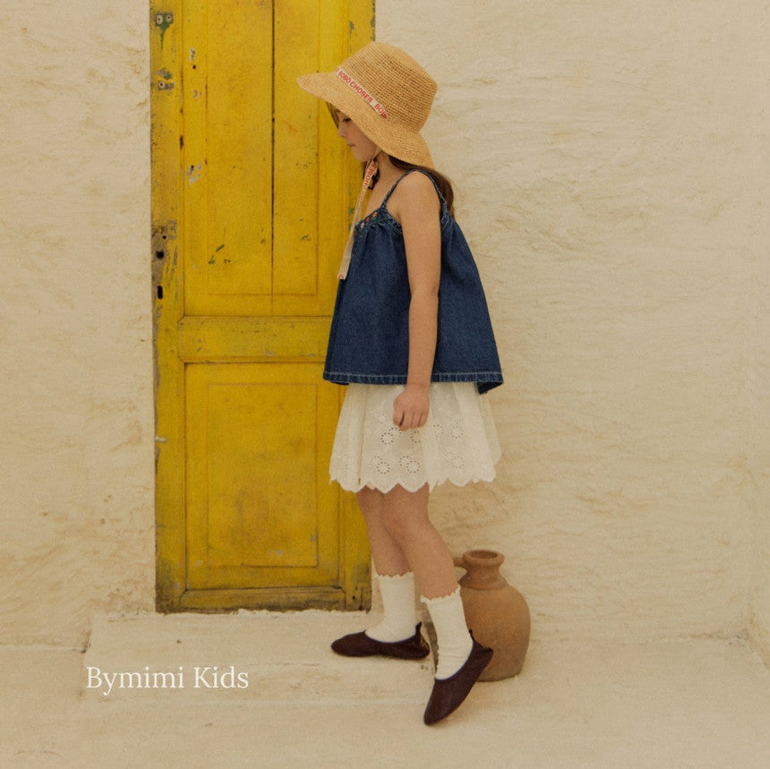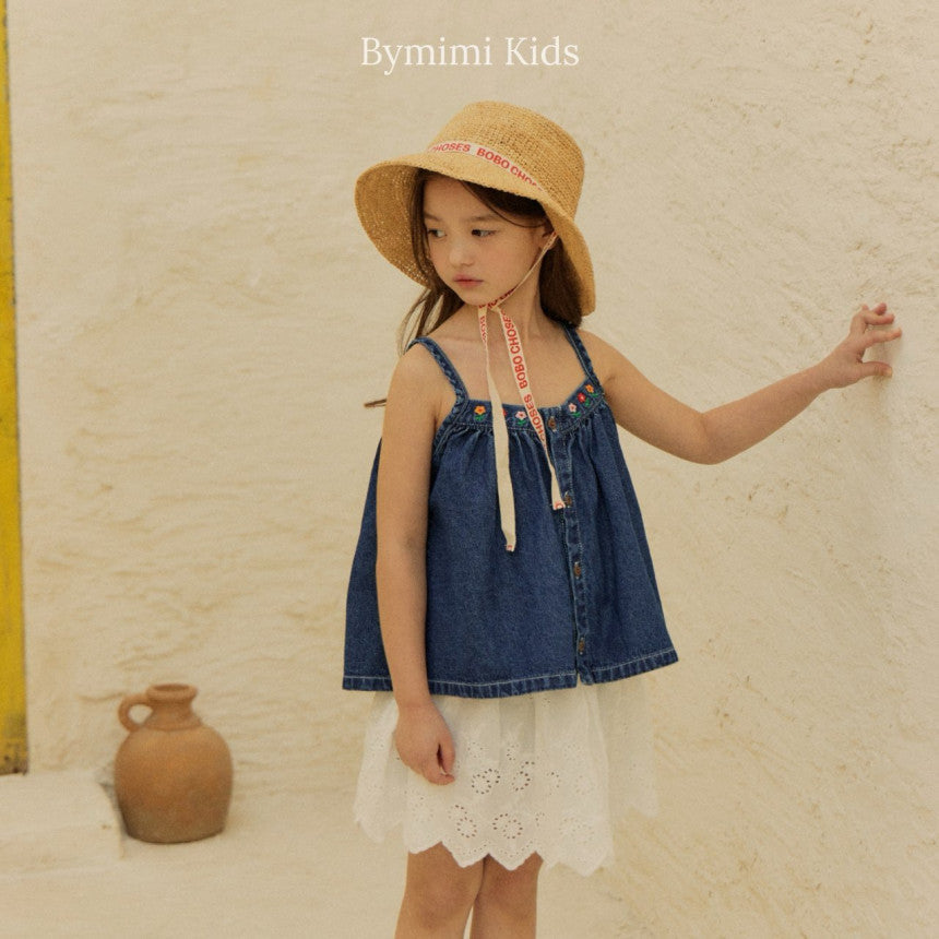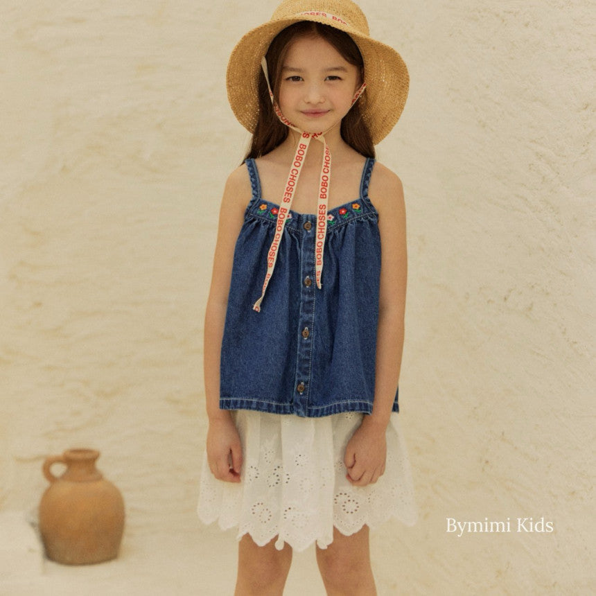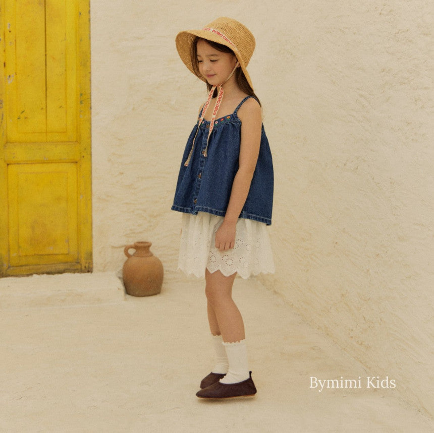 女童蓝色牛仔吊带上衣