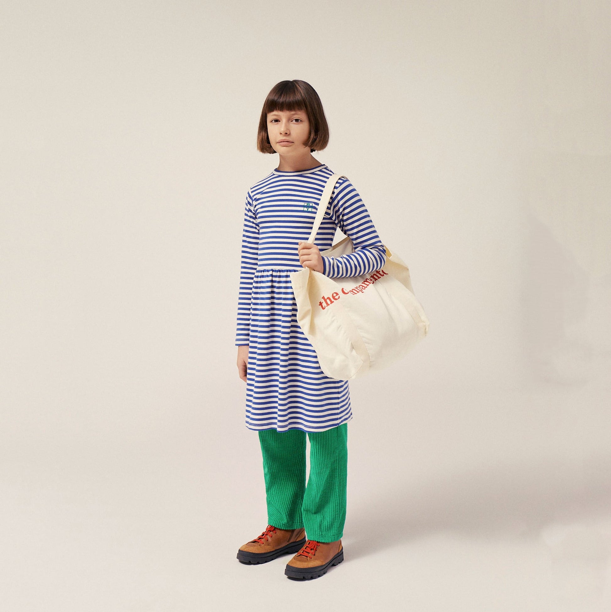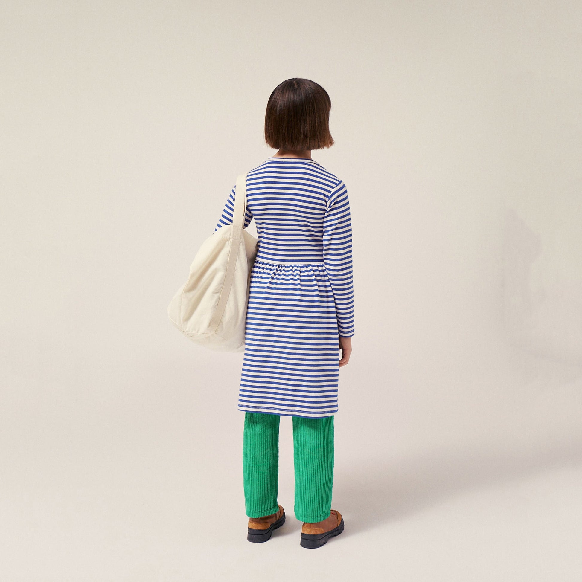 女童蓝色条纹棉连衣裙