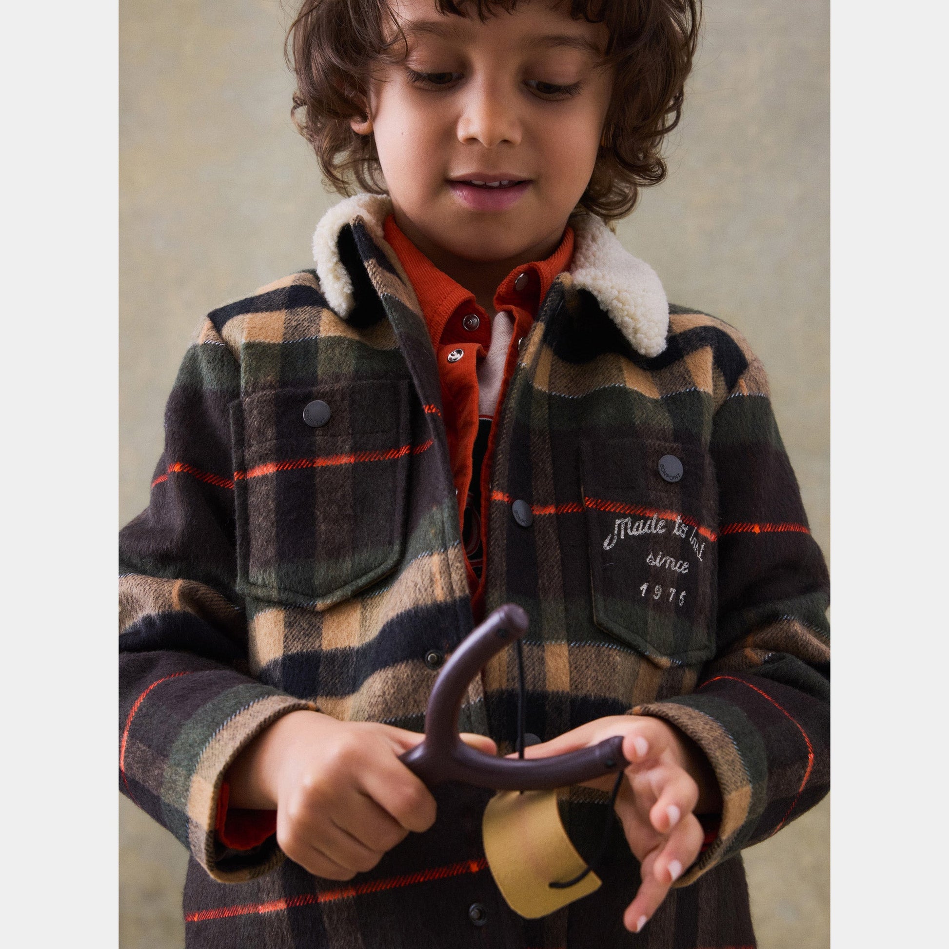 男童卡其色格子夹克