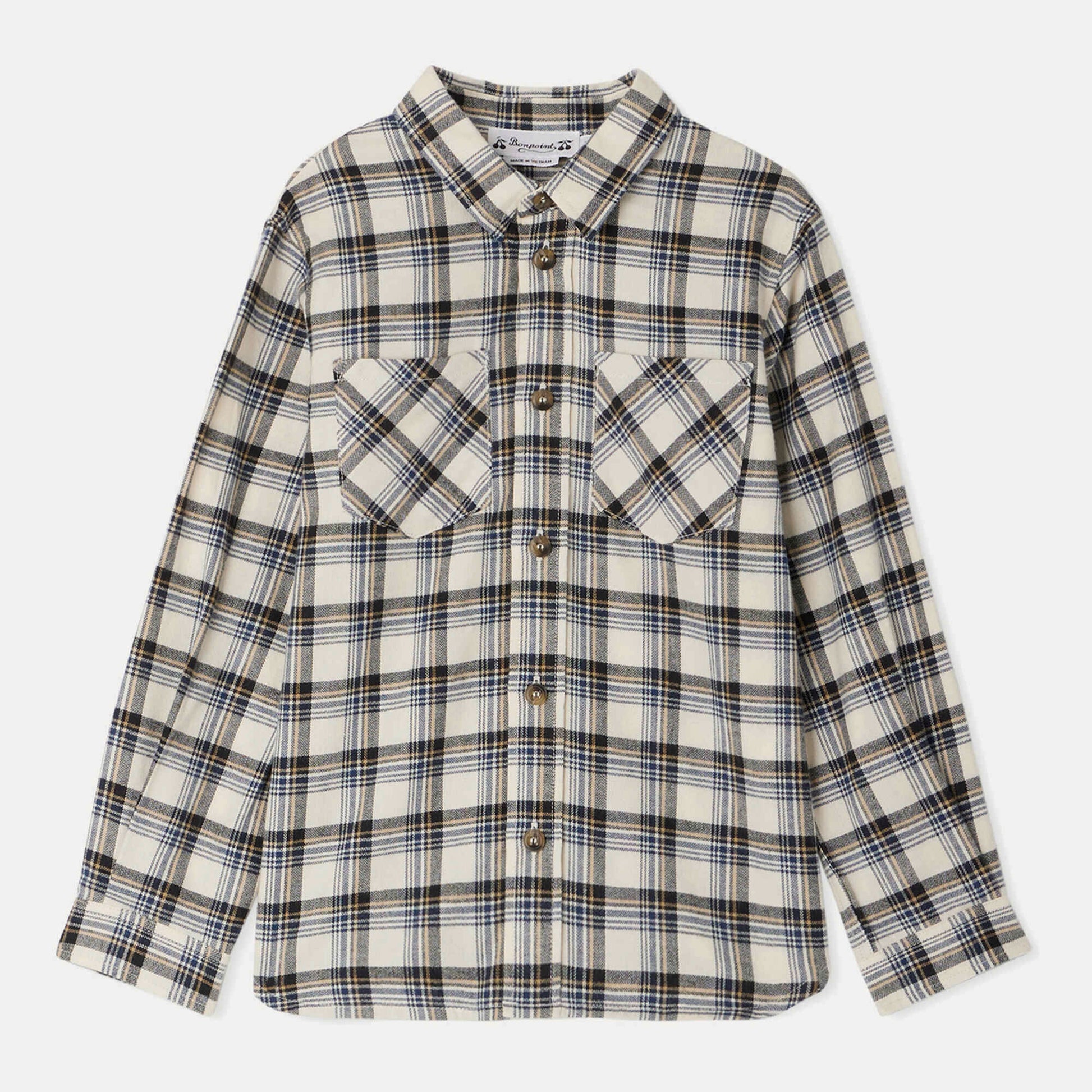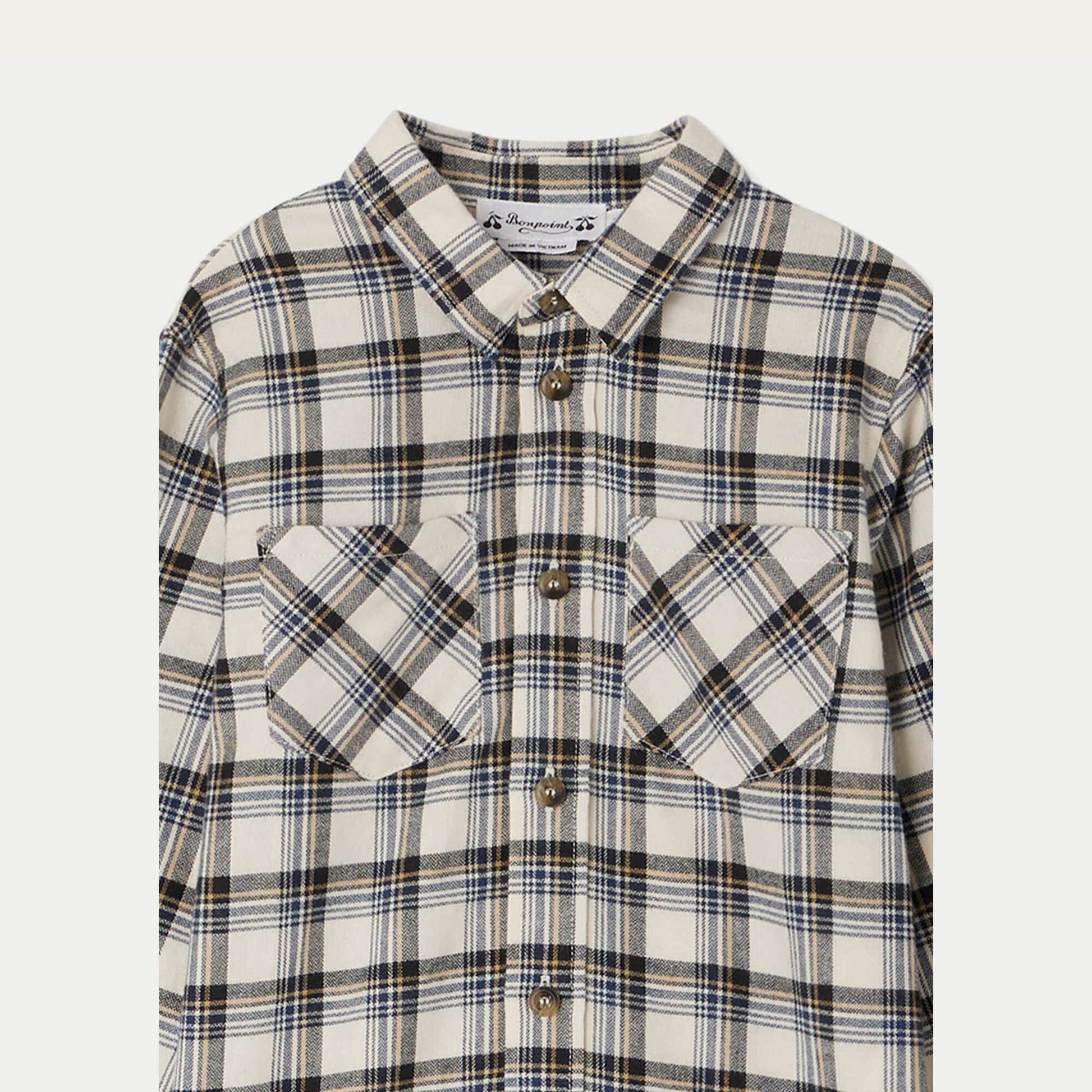 男童米色格子棉衬衫
