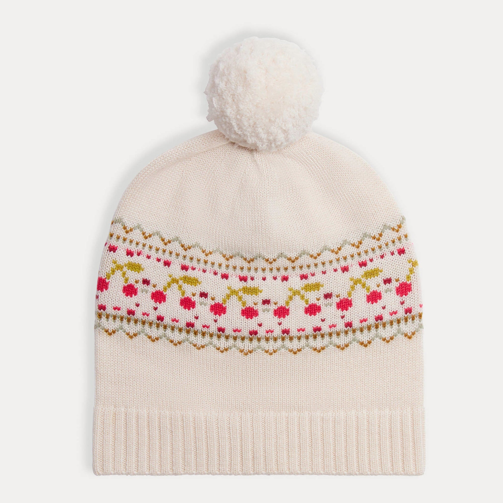 女童白色提花羊毛帽子