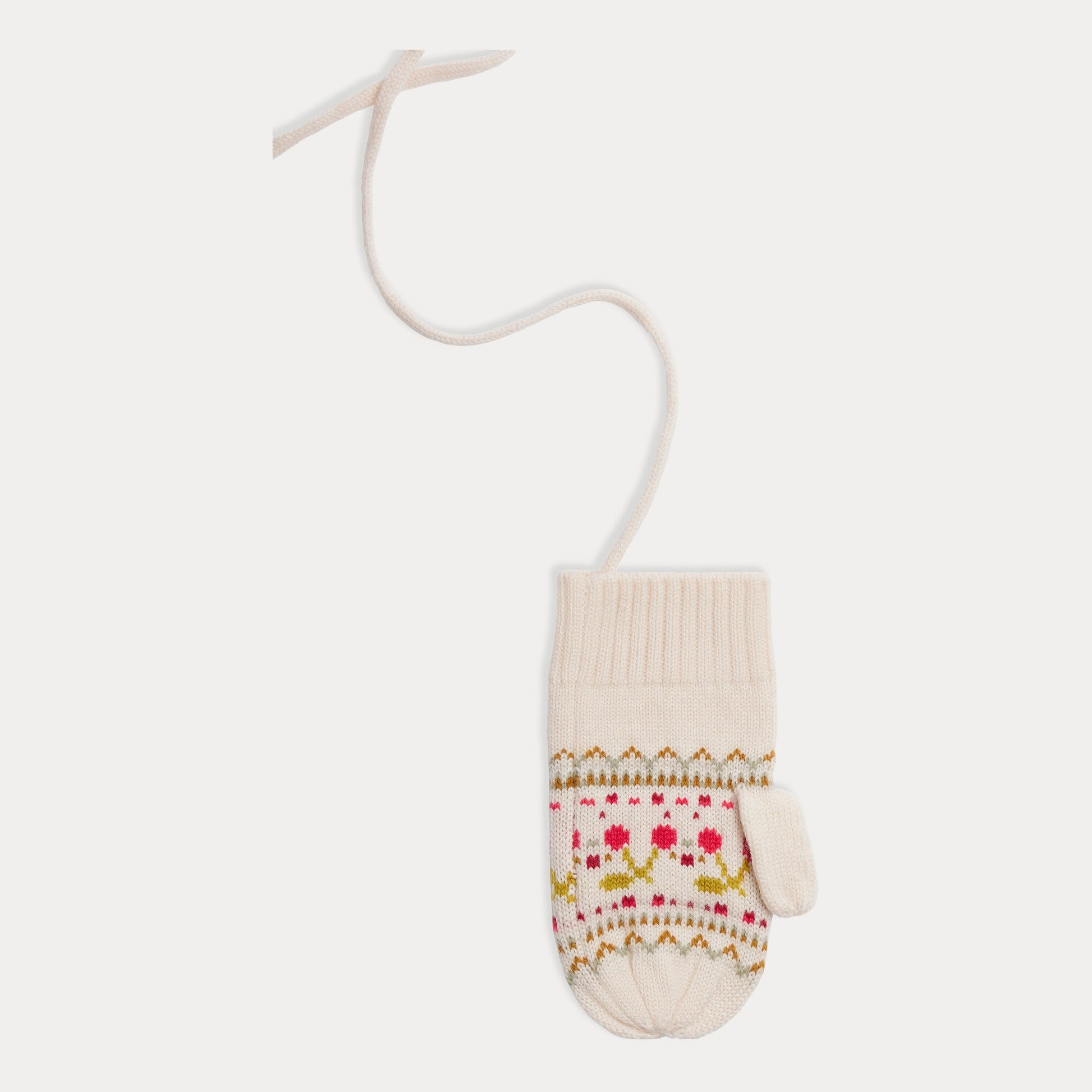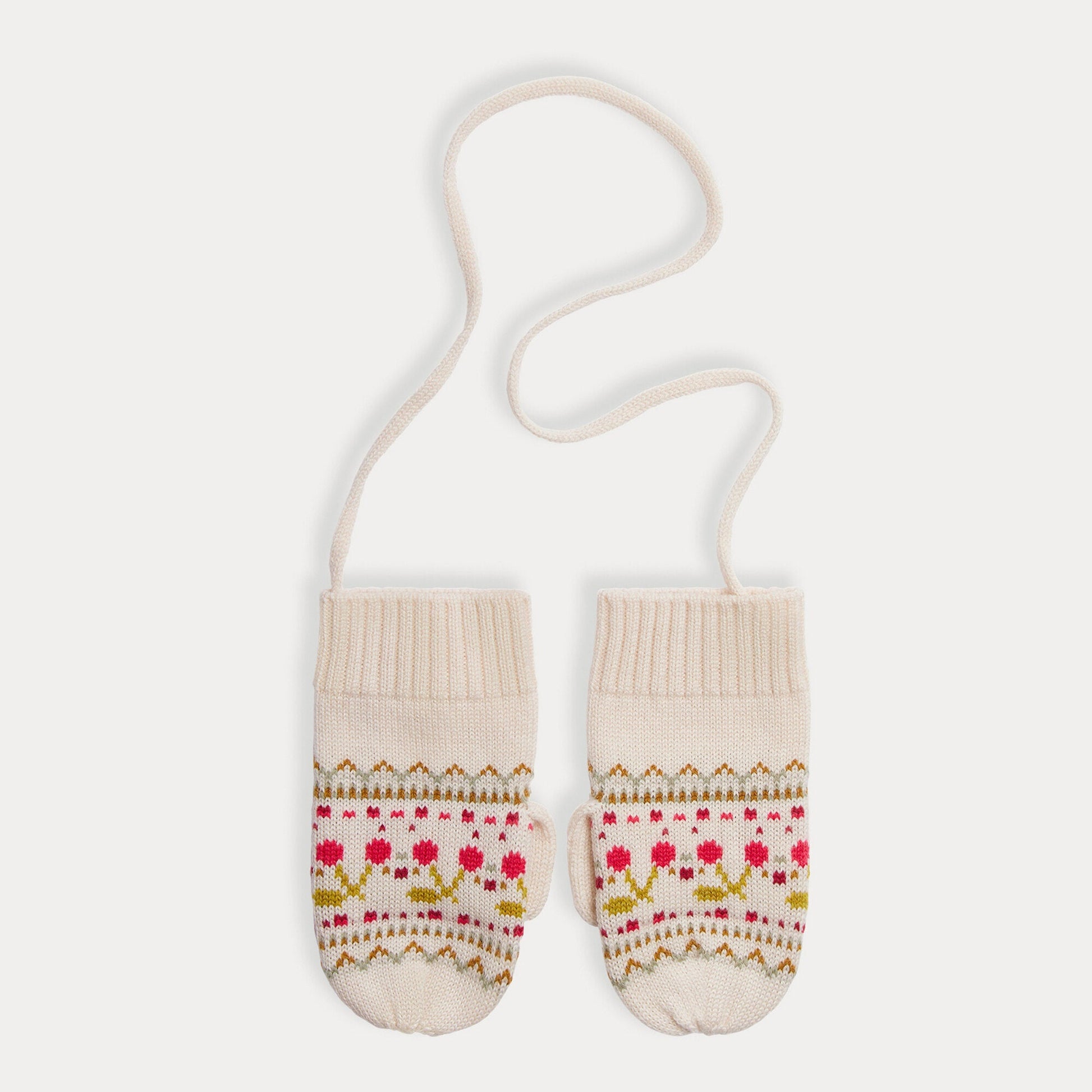 女童白色提花羊毛手套