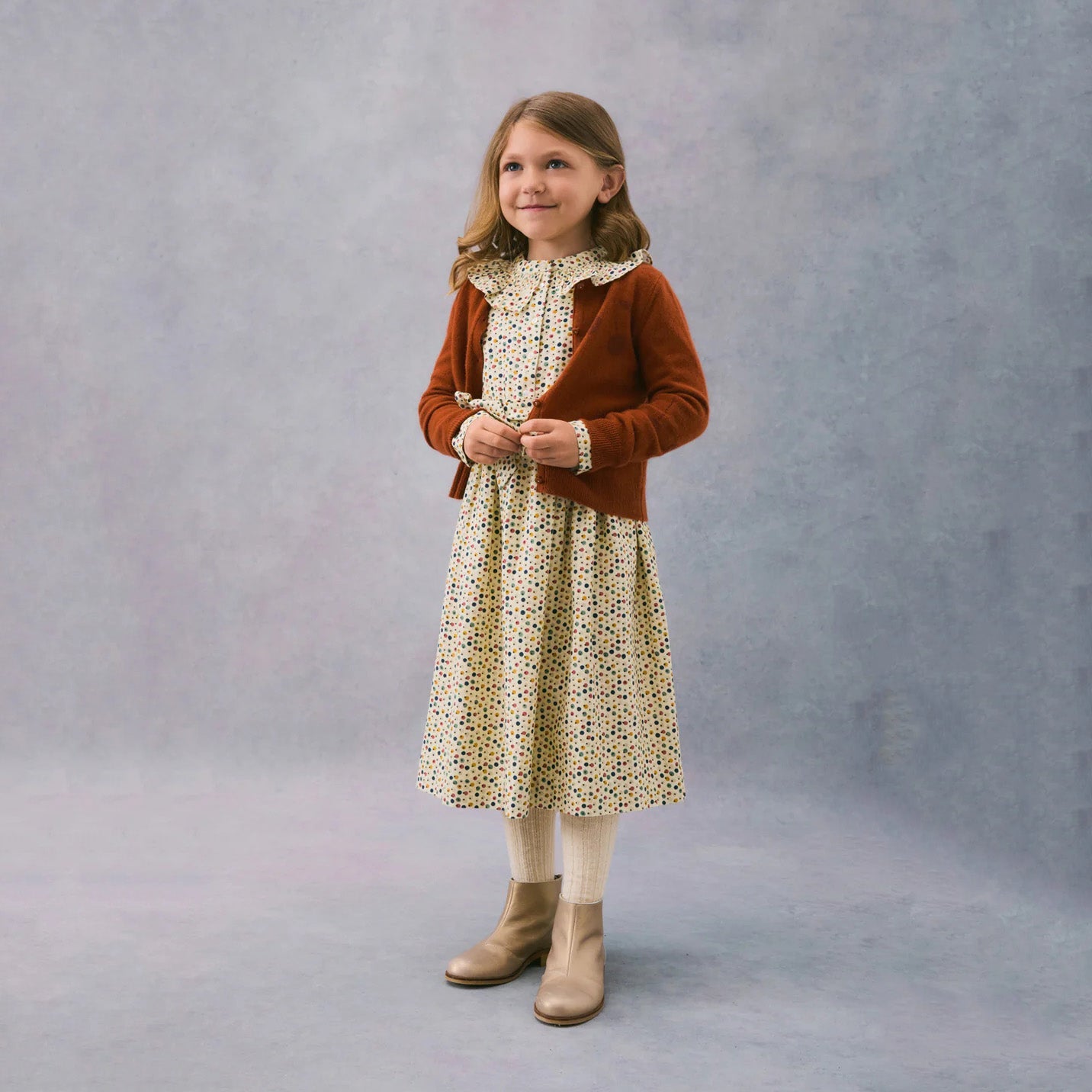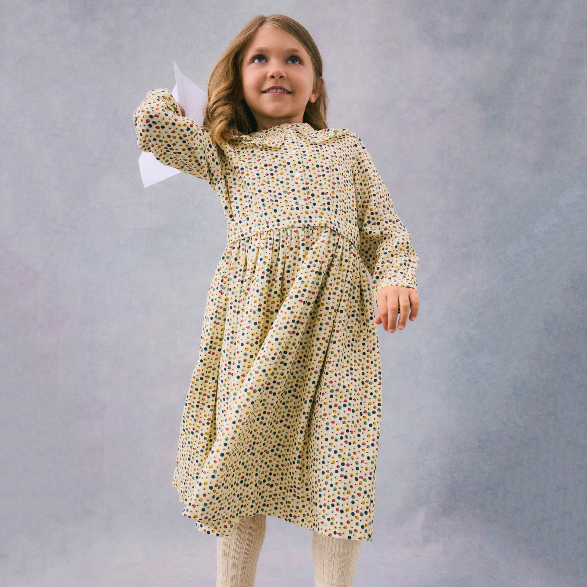 女童彩色圆点连衣裙