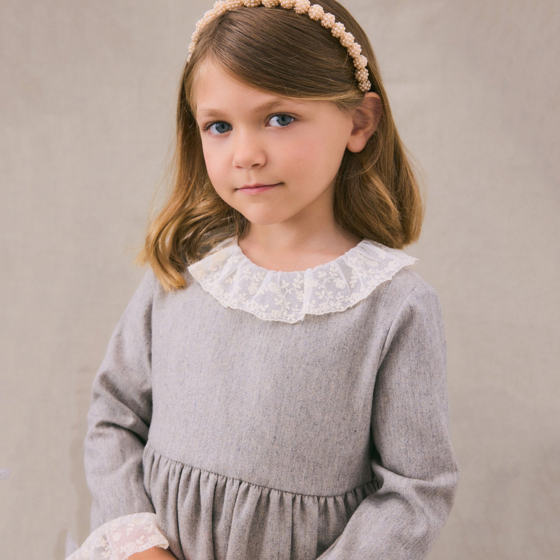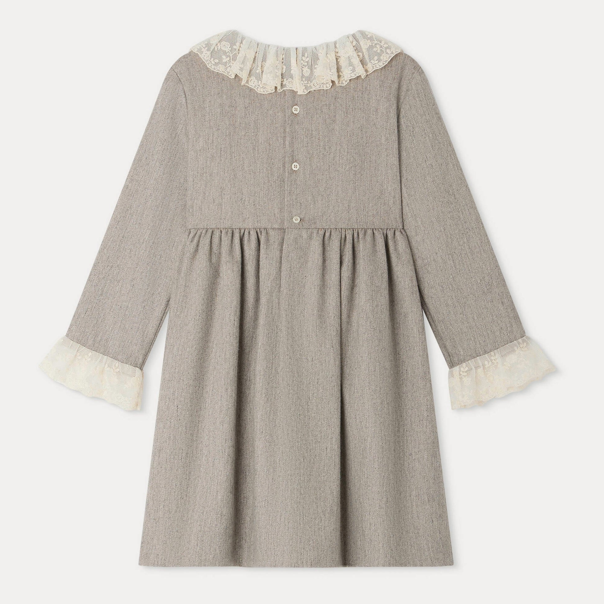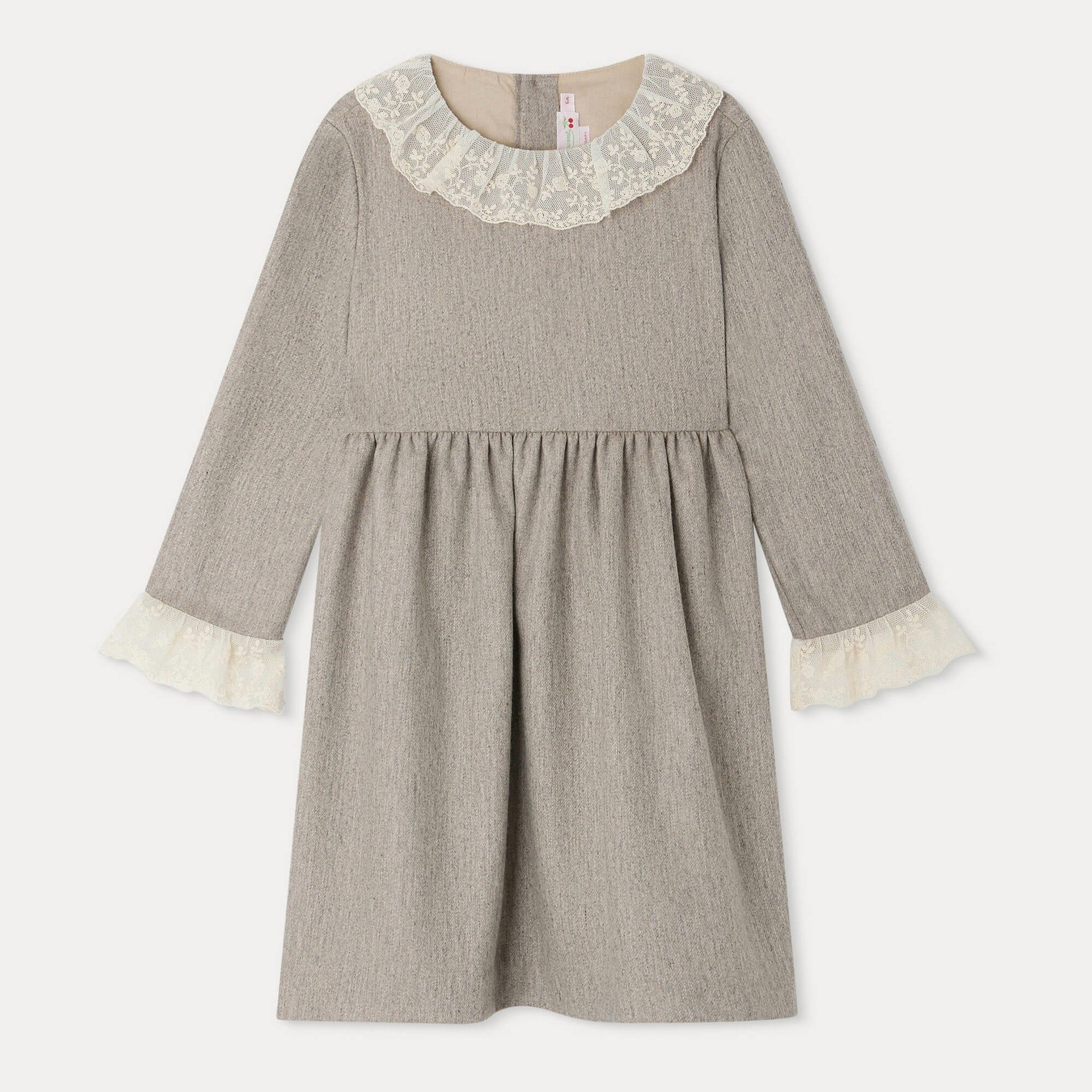 女童米色荷叶边羊毛连衣裙
