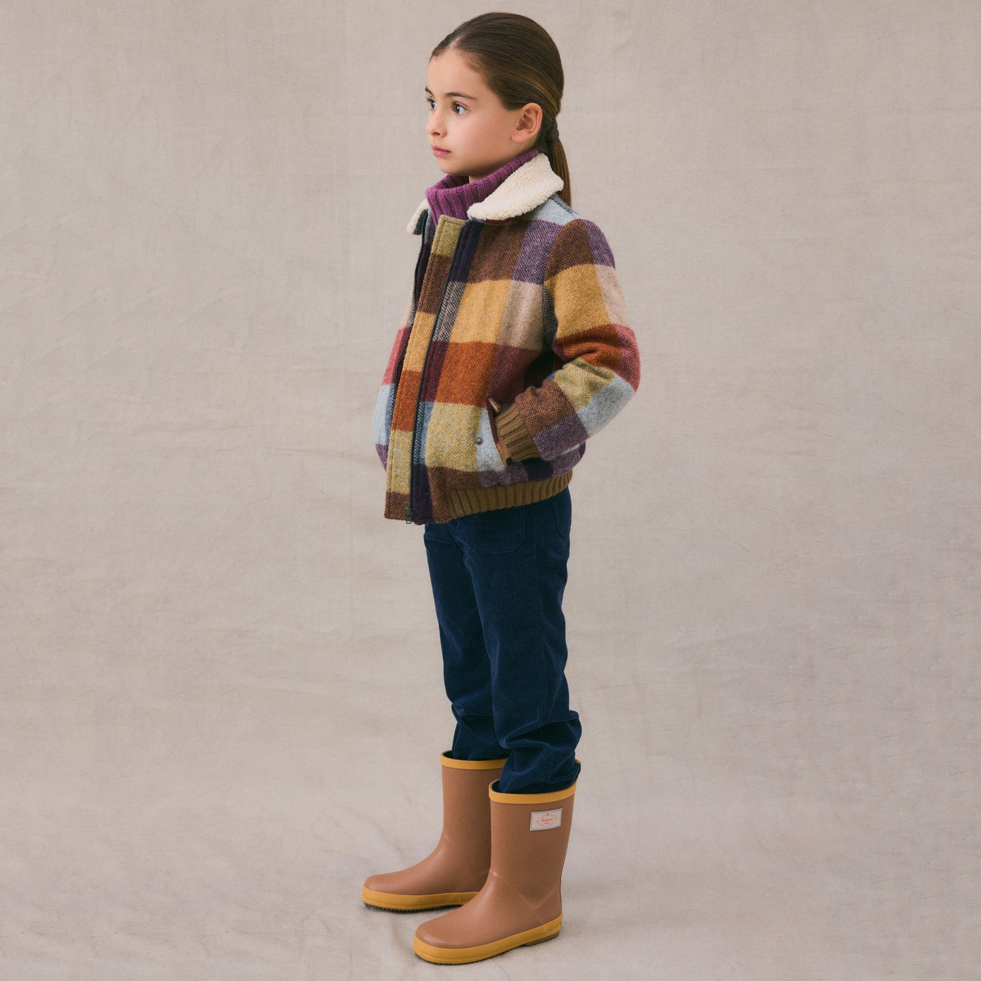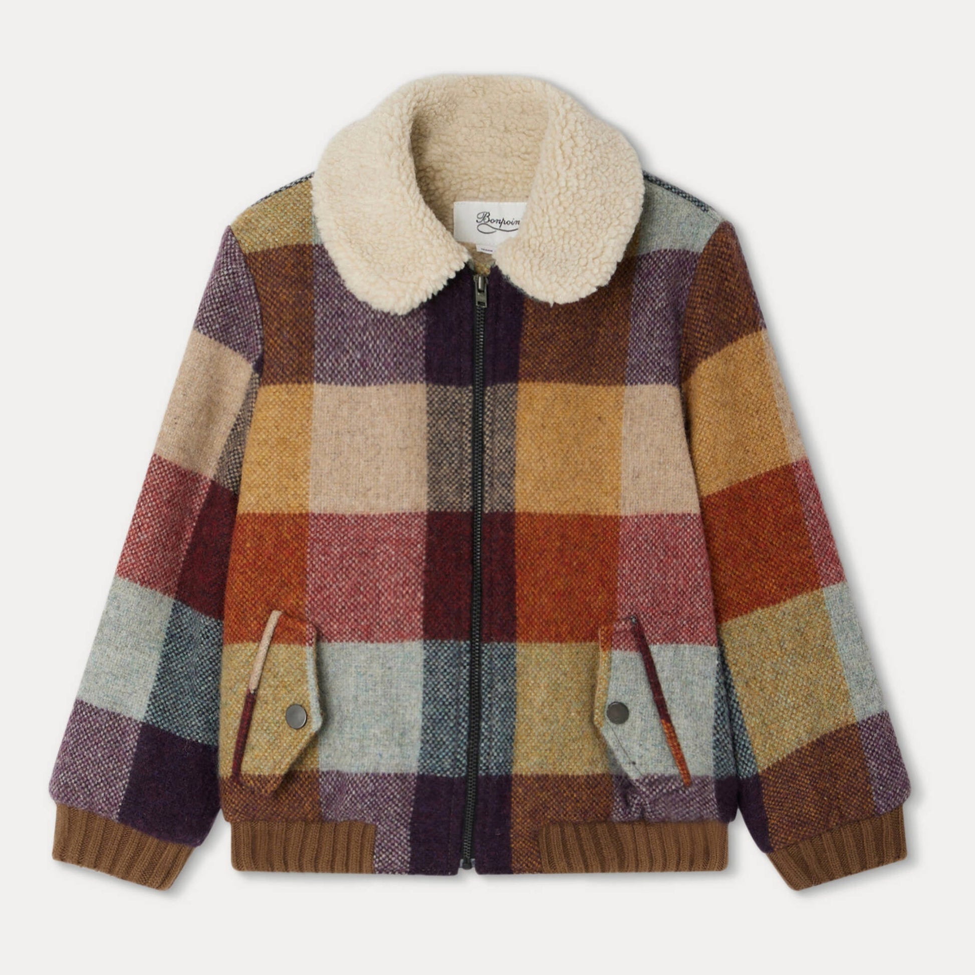 女童彩色格子羊毛夹克