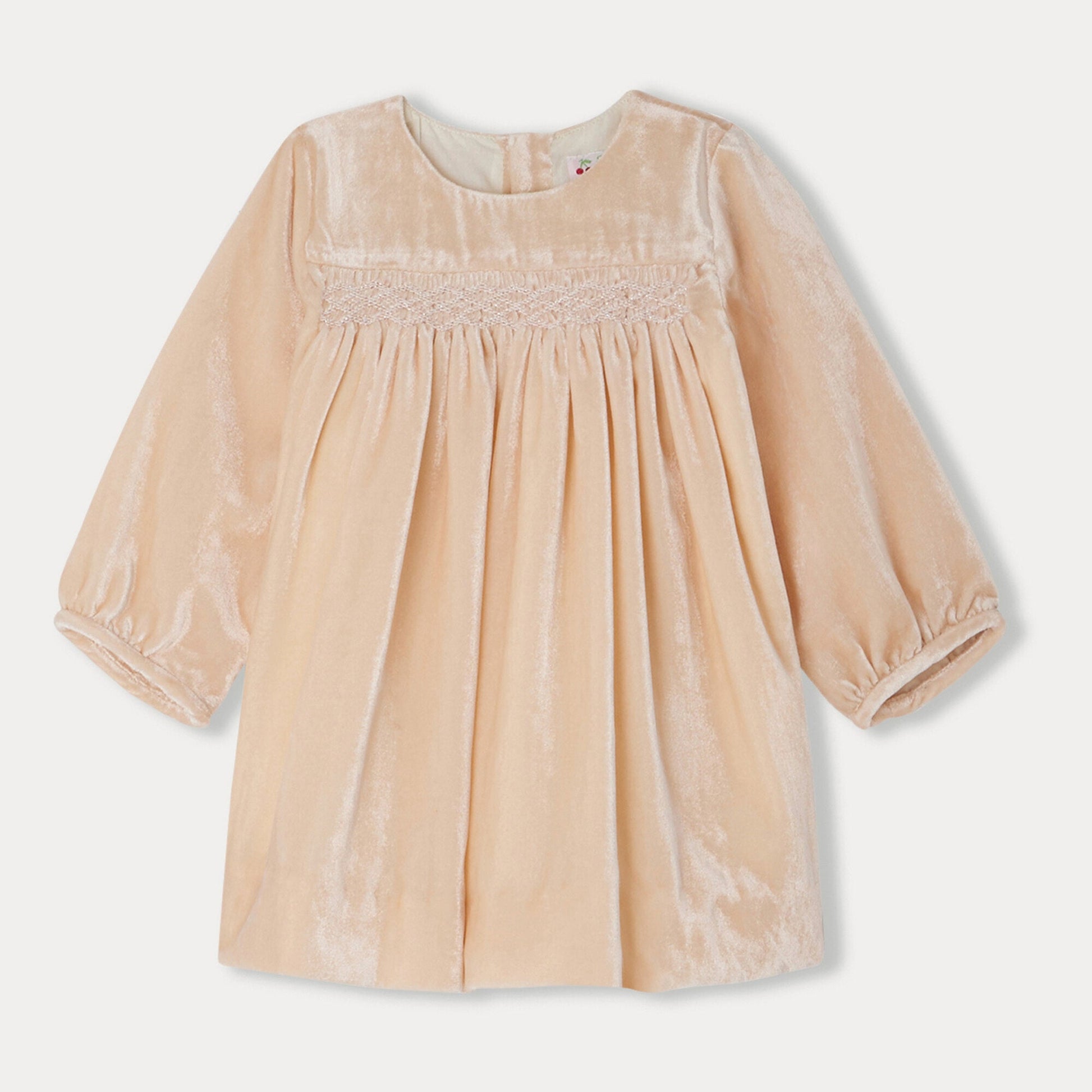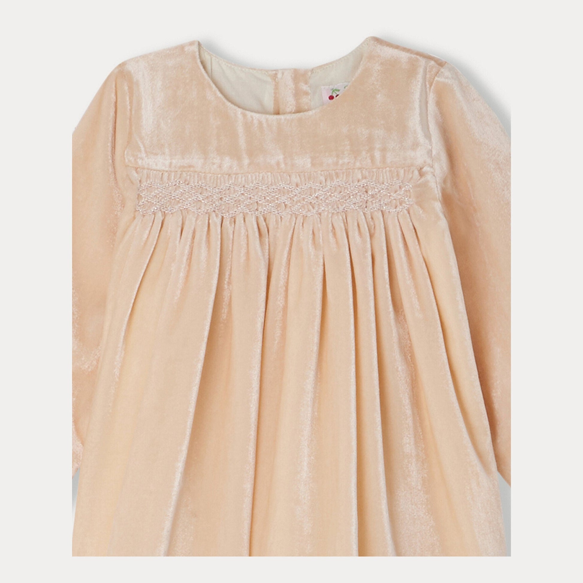 女婴玫瑰粉丝绒连衣裙
