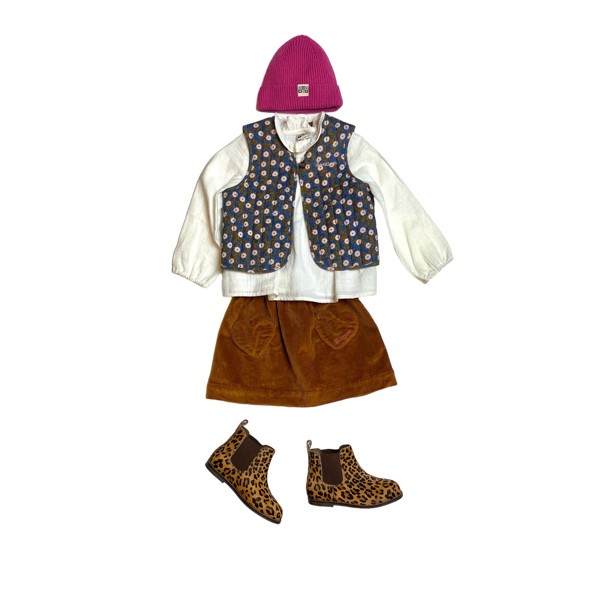 女童棕色灯芯绒短裙
