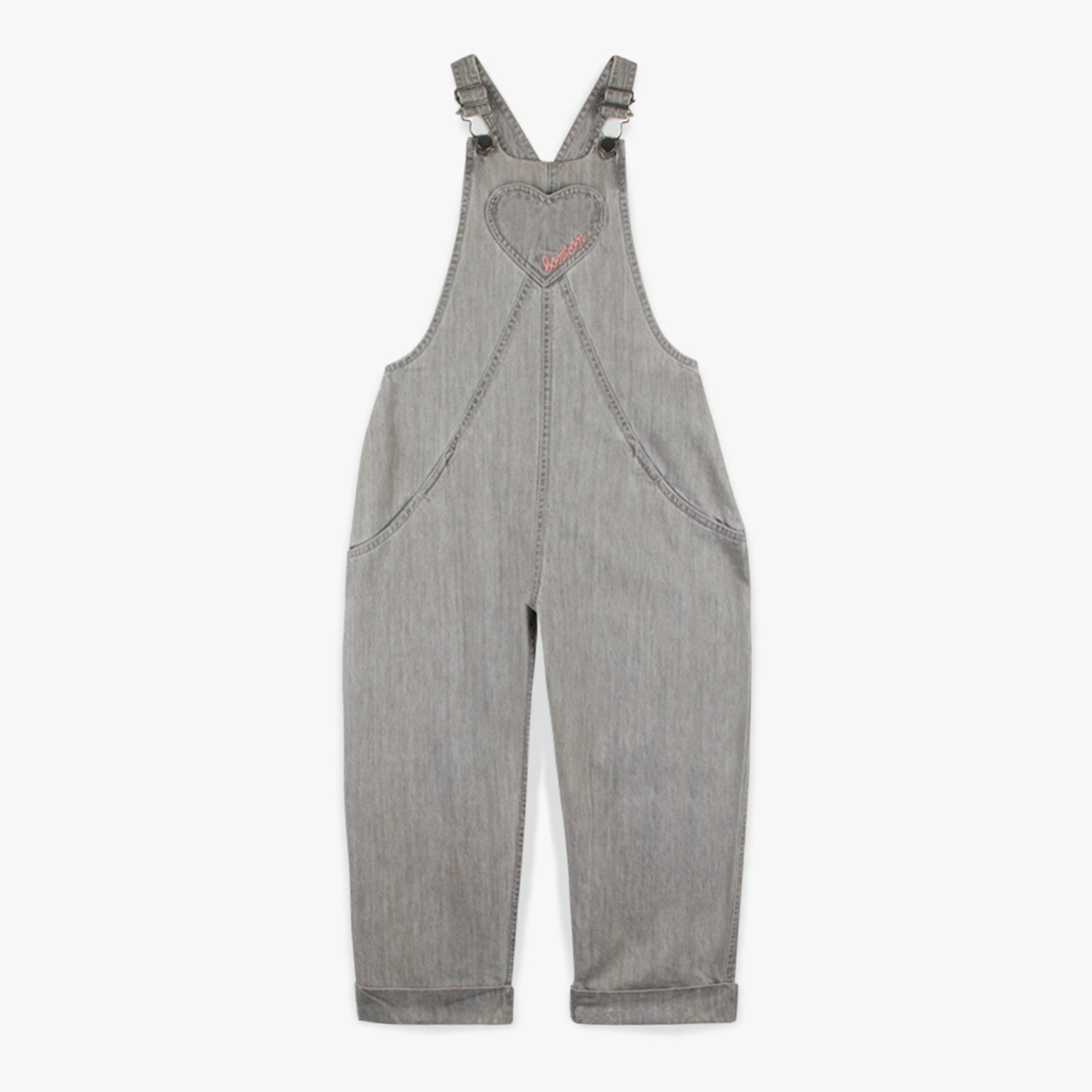 女童灰色牛仔背带裤
